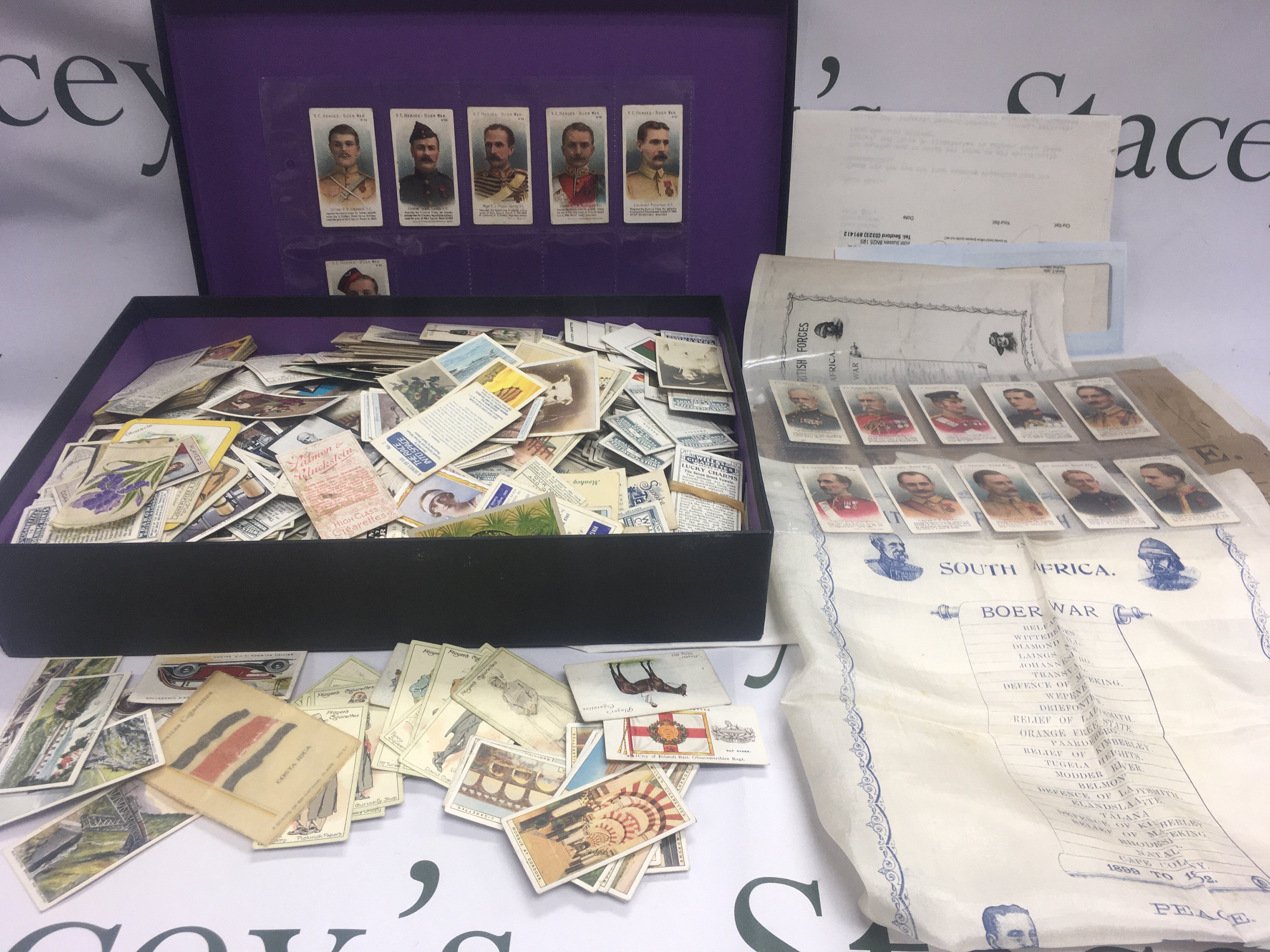 A collection of cigarette cards including Salmon & Gluckstein Boer War examples and other Boer War ephemera. Shipping category C.