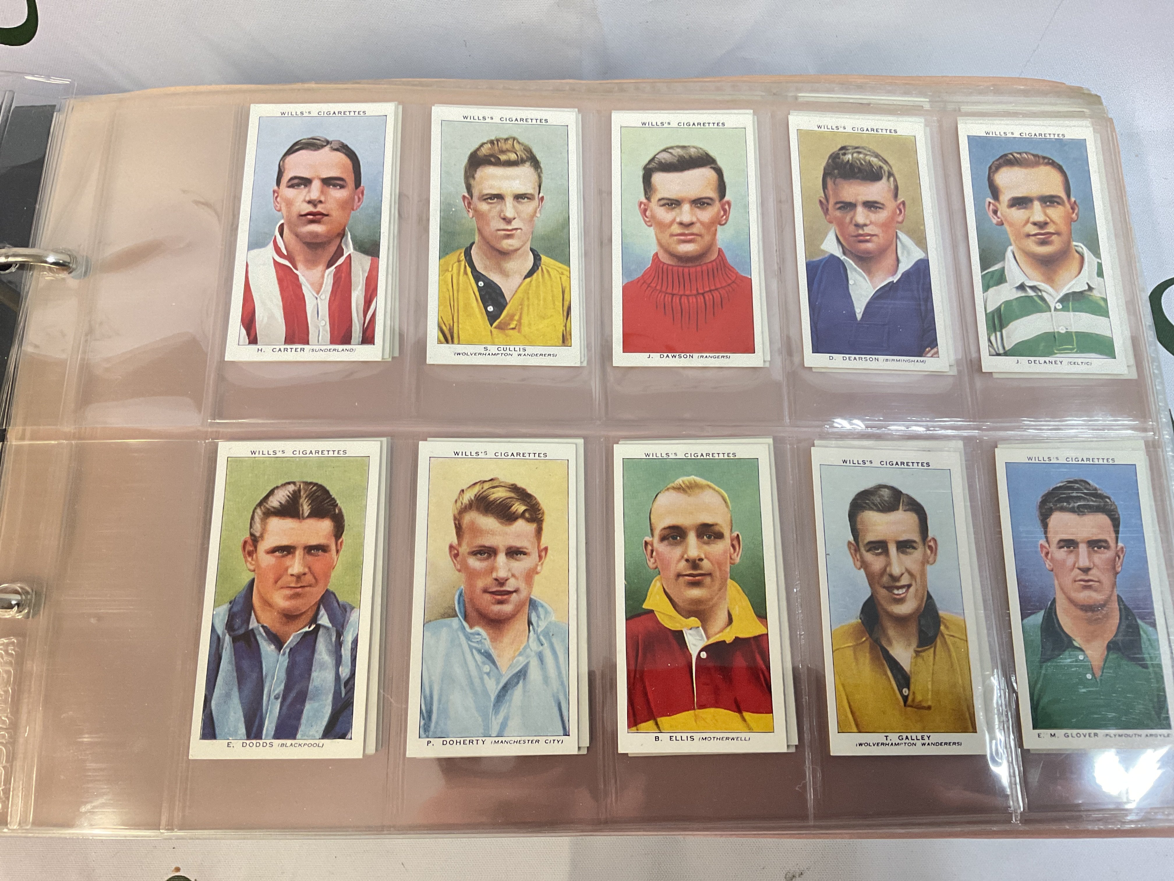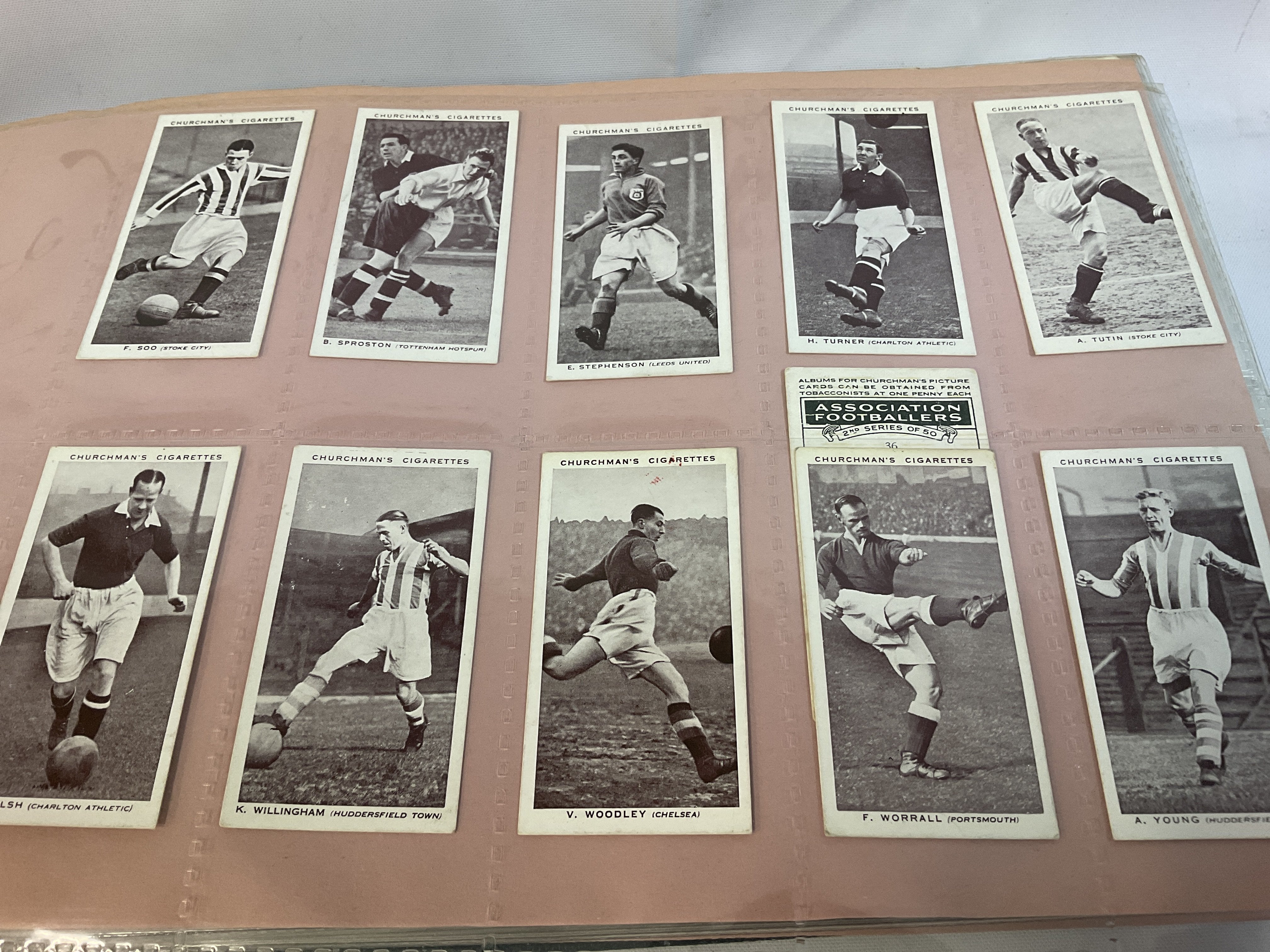 A collection of cigarette card albums including Wills football players, 1930s Churchmans football players , Copes cards, Ogdens etc. Postage category B