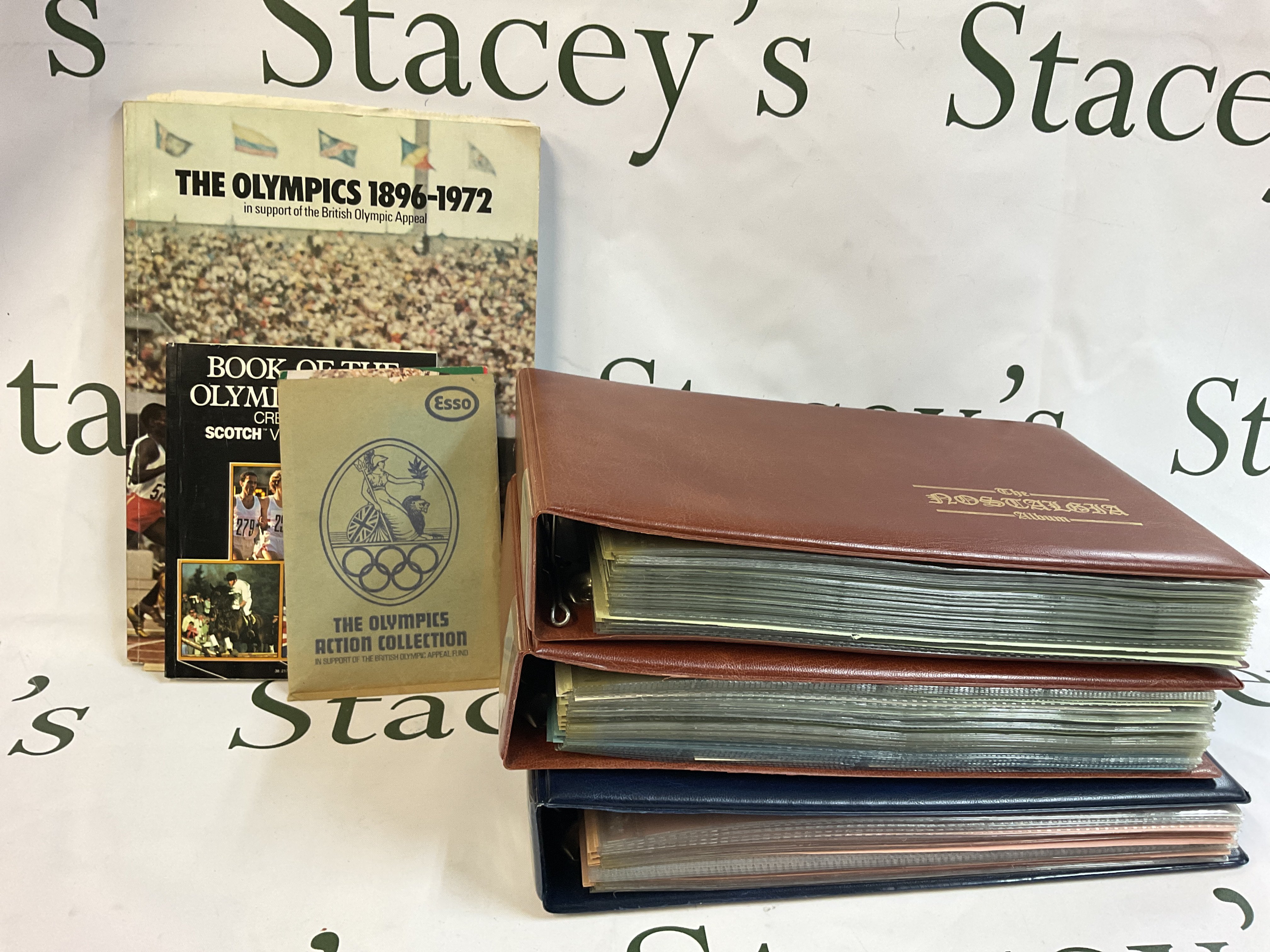 A collection of cigarette card albums including Gallaher, Players , Olympics 1896-1972 Esso book.