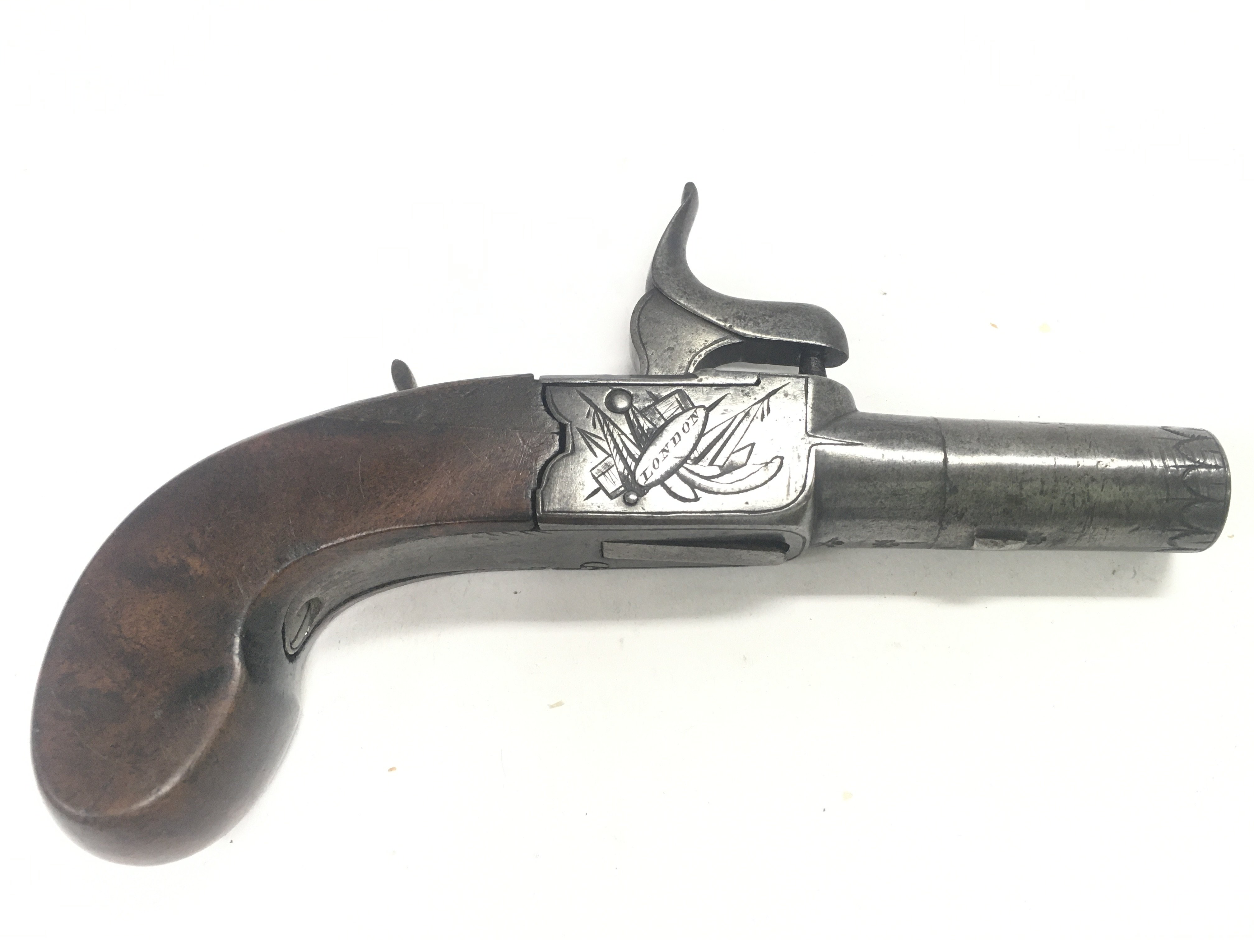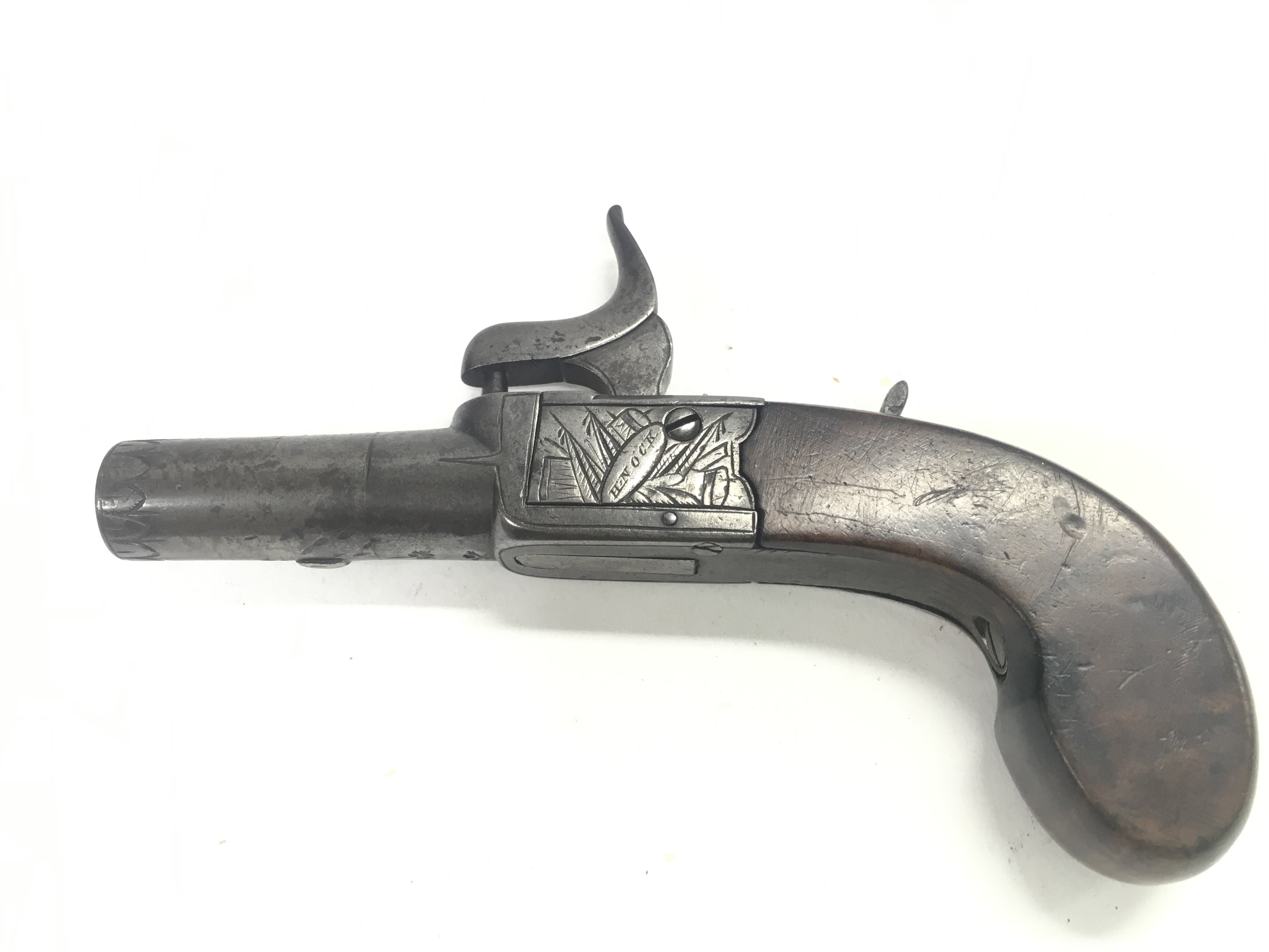 A percussion pocket pistol signed H.Nock, 14cm long. Postage category b