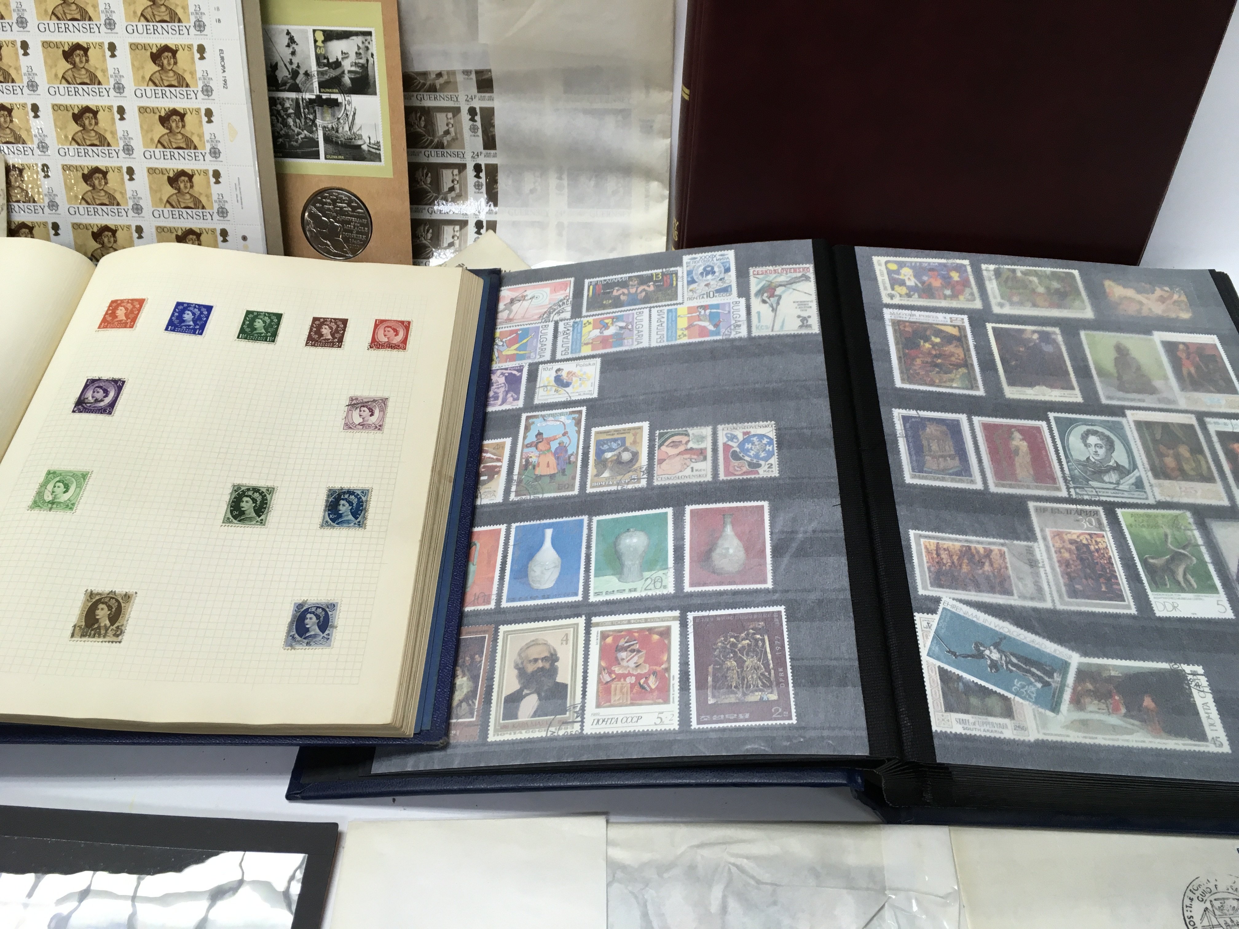 A large collection of stamp albums and loose stamps and stamp sheets. Postage C