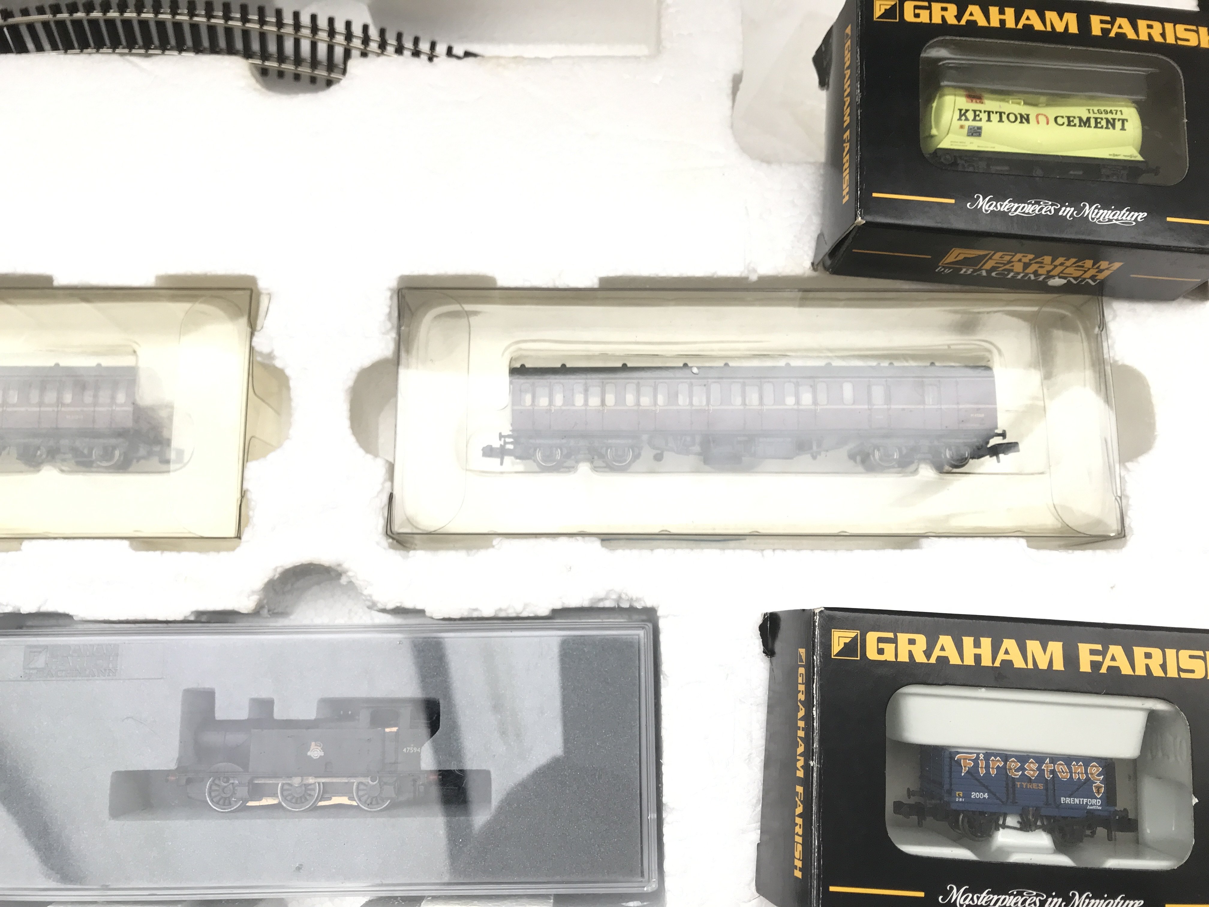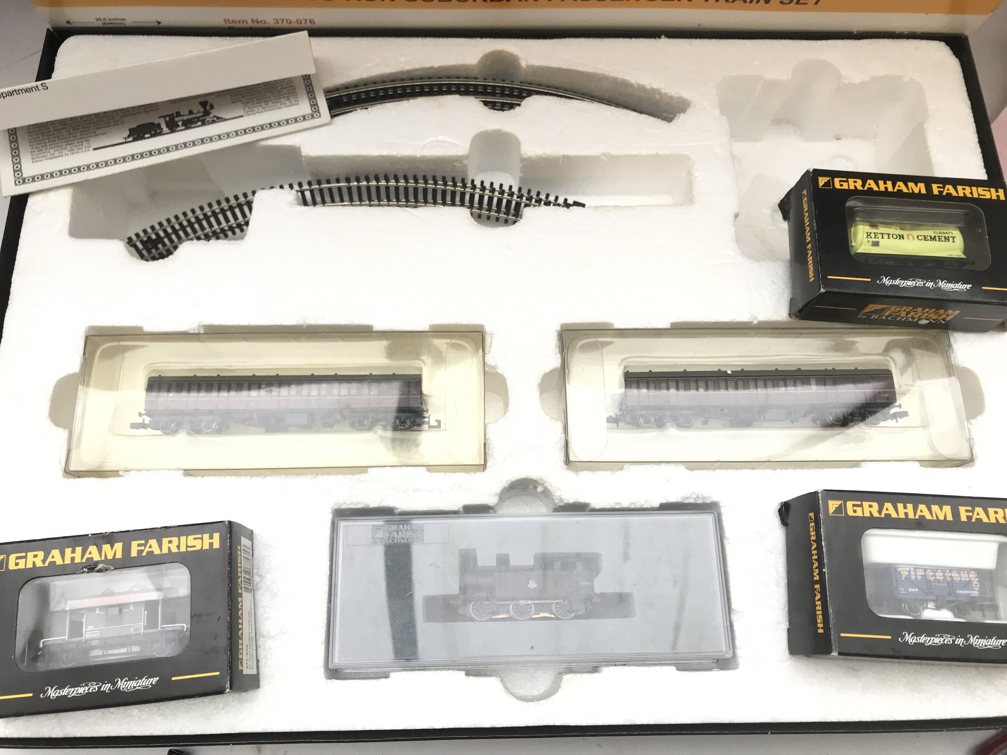 A Boxed Grahamfarish N Gauge Suburban Passenger Train Railway Et #370-076. Transformer and Controller Missing. Also 3 Boxed Wagons.