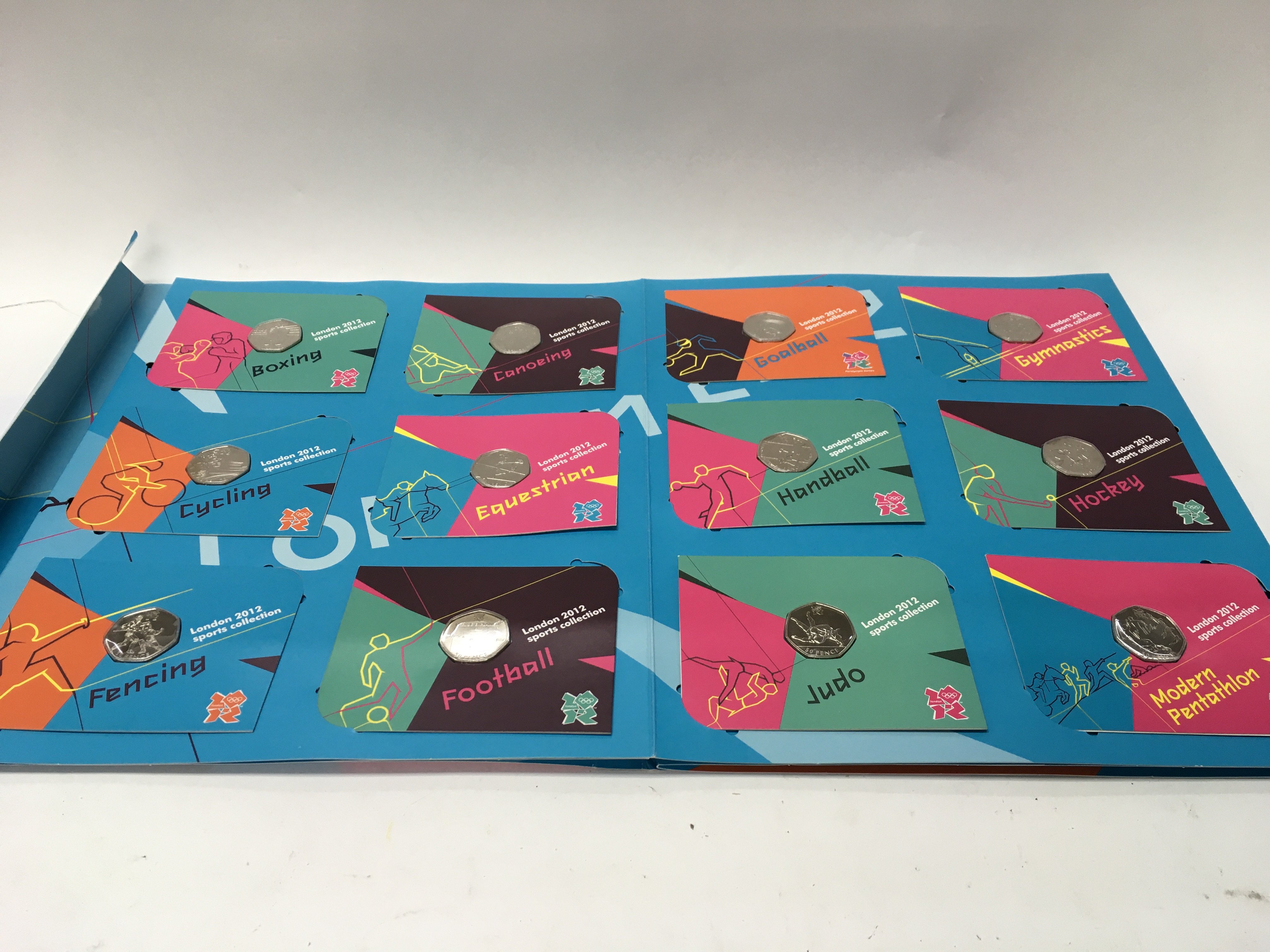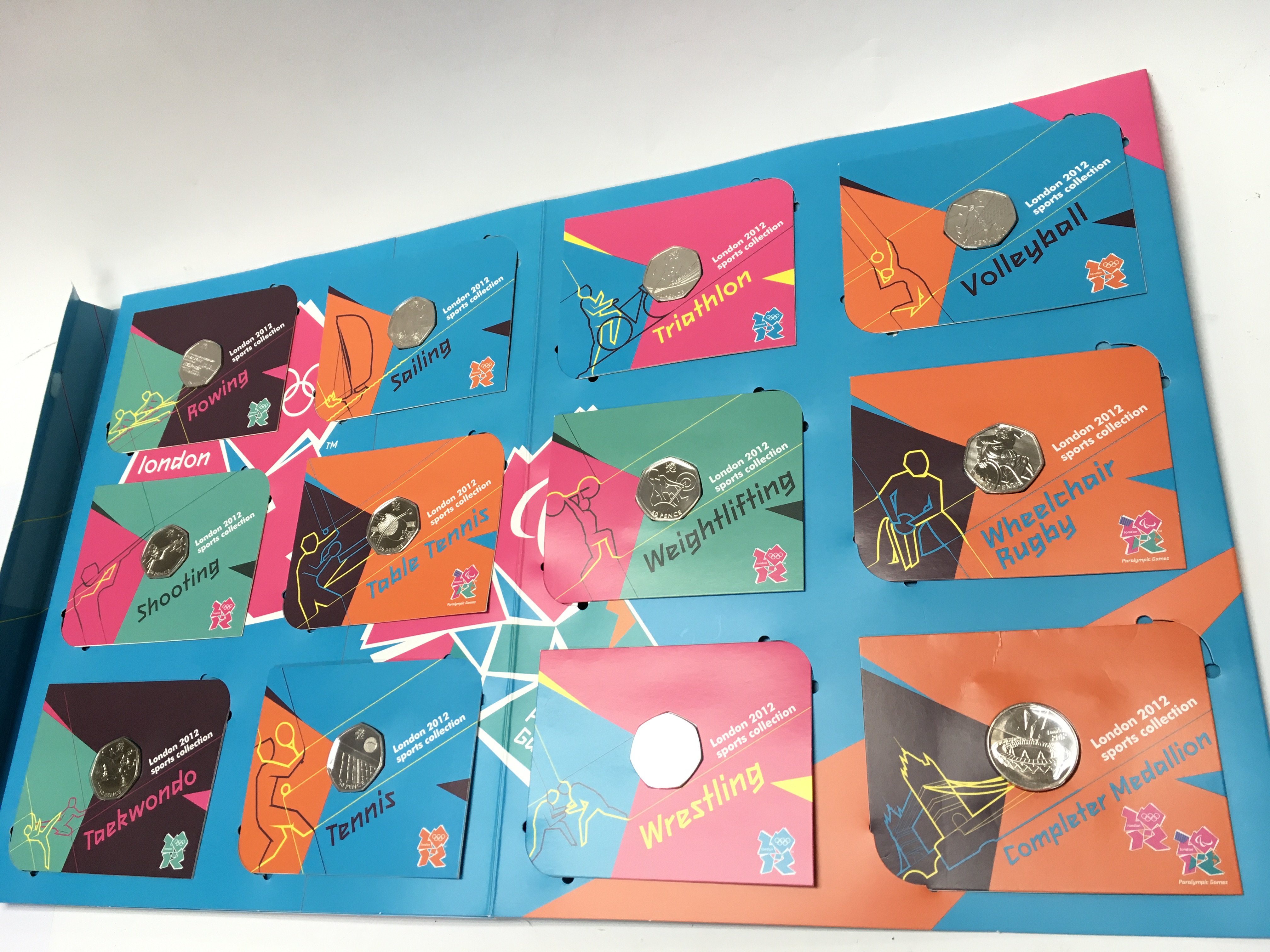 A complete london 2012 Olympic 50p collection including completer medal. Postage B