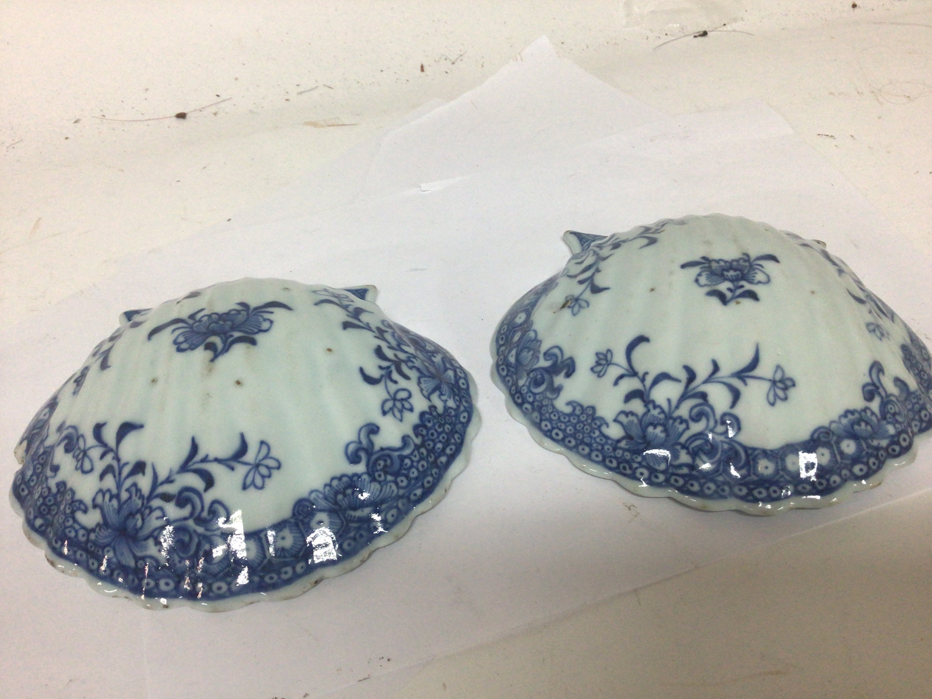 Two 19th century Chinese Export porcelain shell shaped dishes some damage. Diameter 15cm. NO RESERVE
