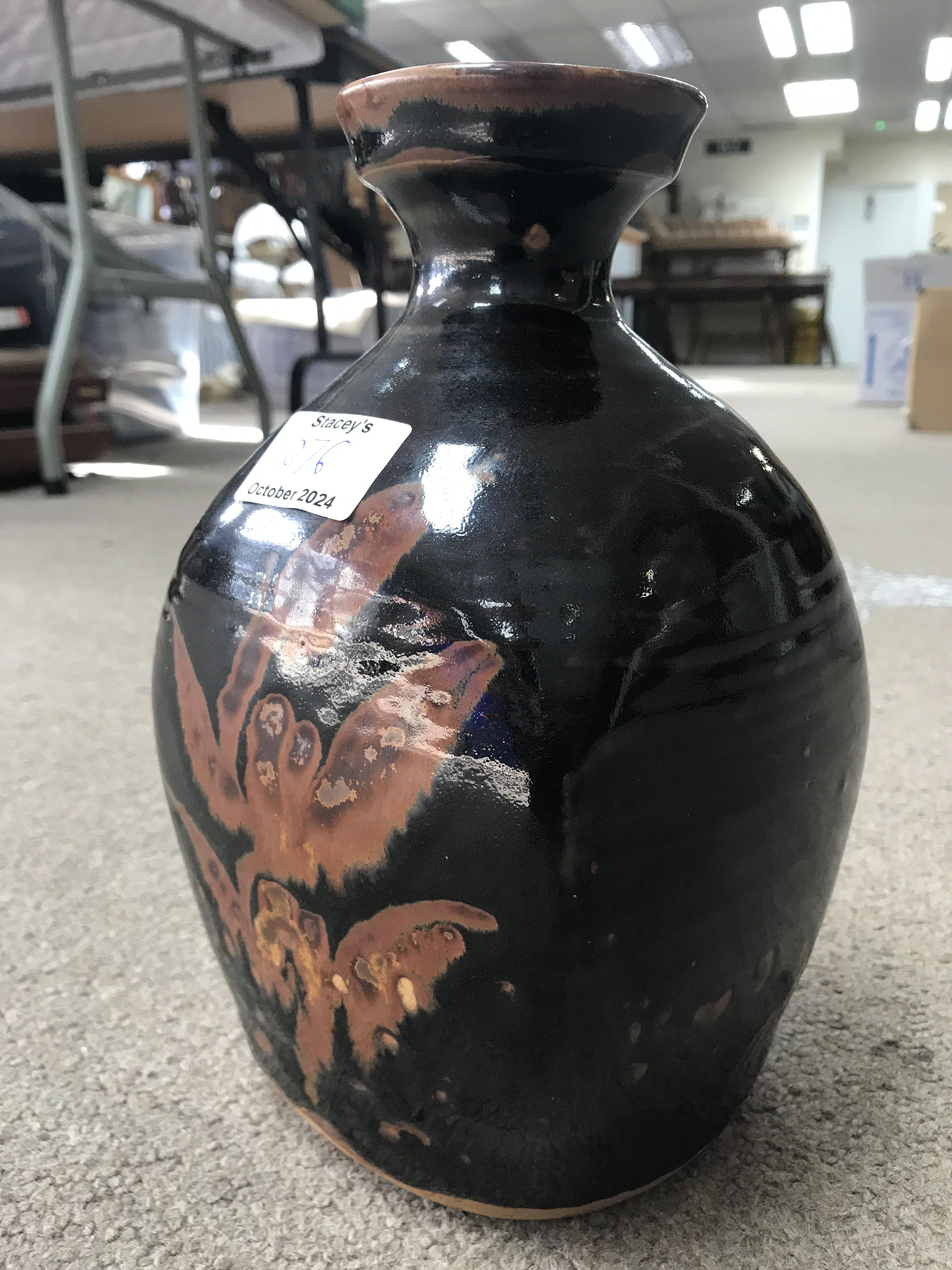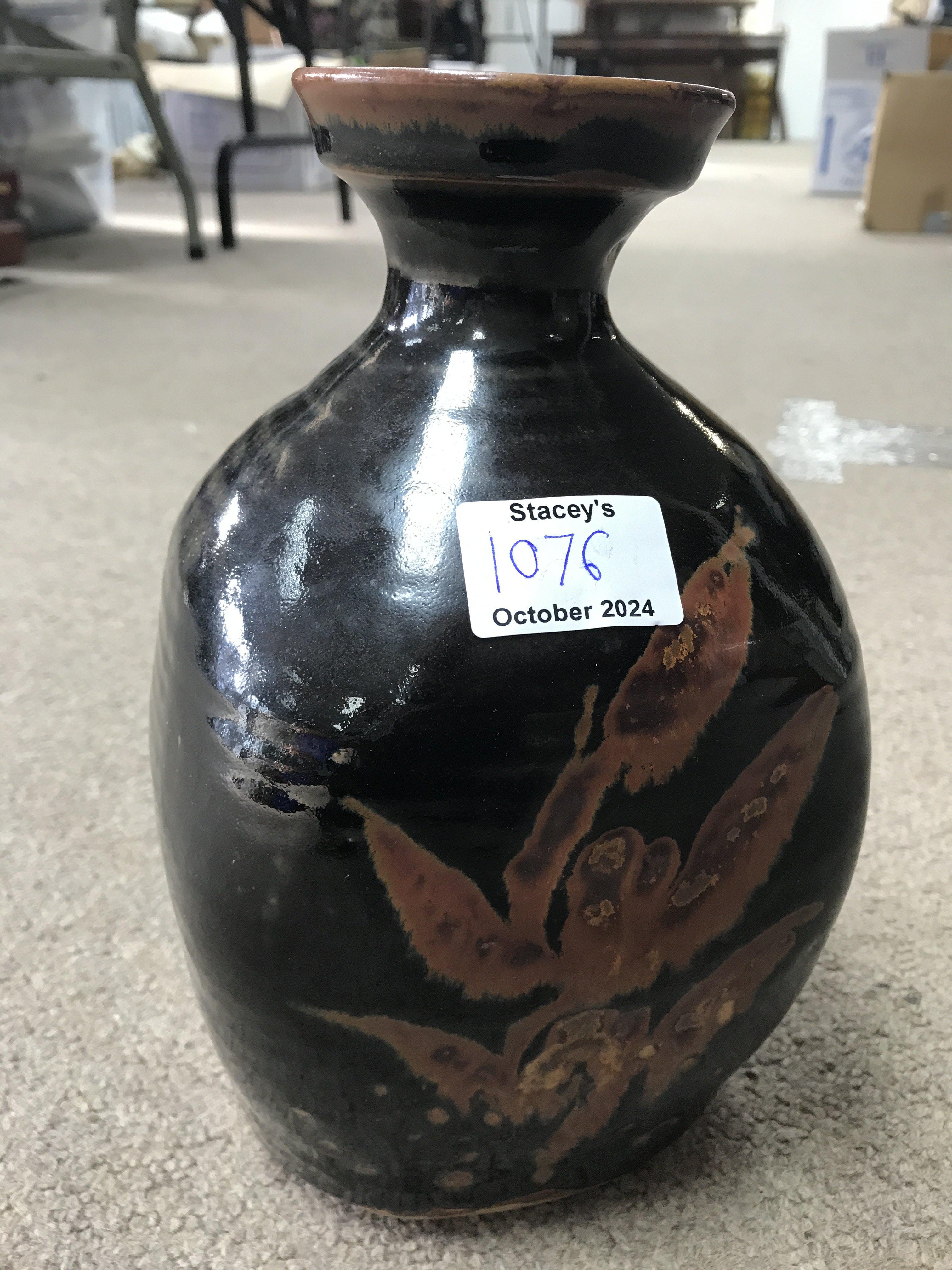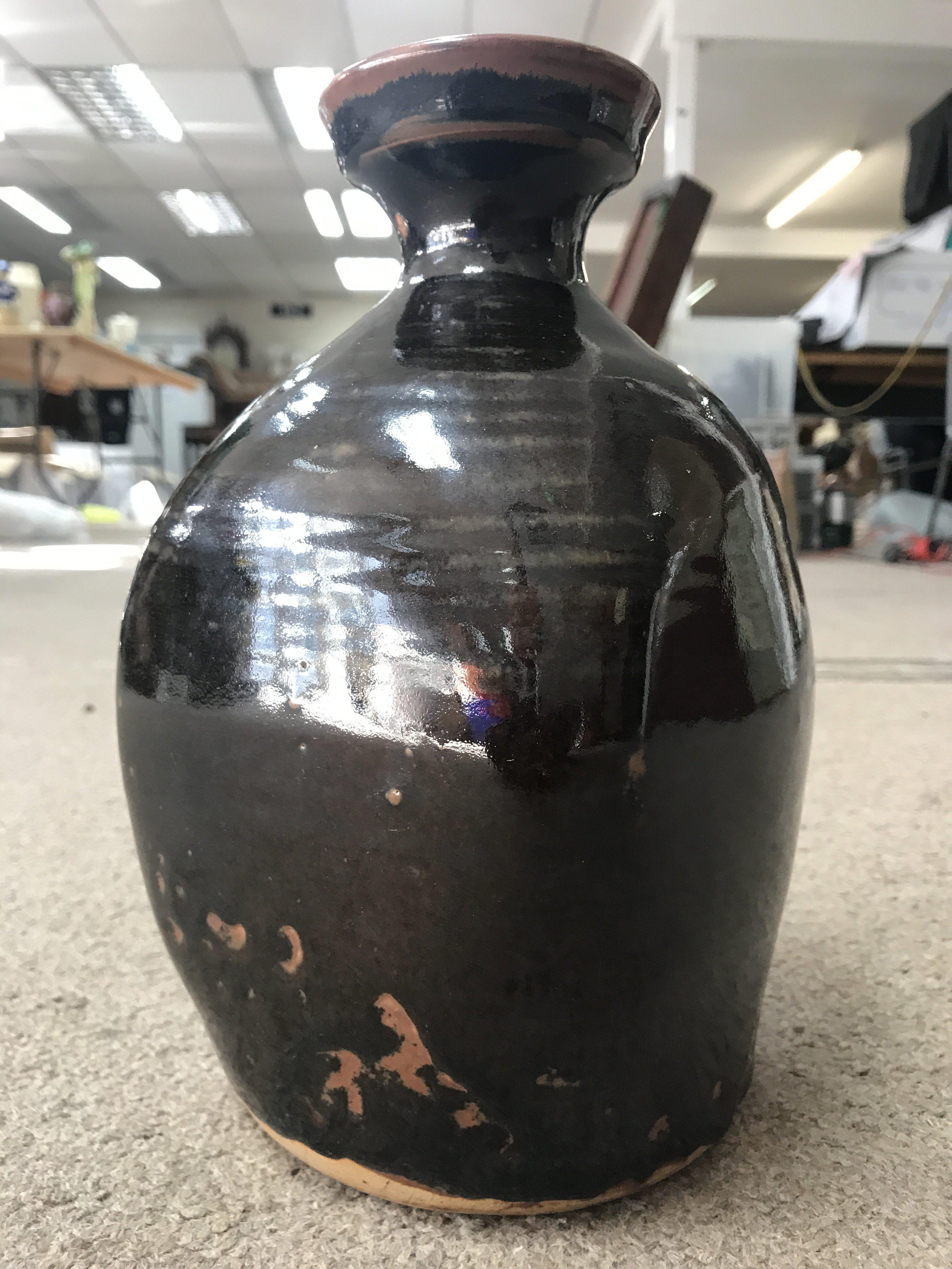 A David Leach stoneware brown glazed bottle vase. 25cm. NO RESERVE