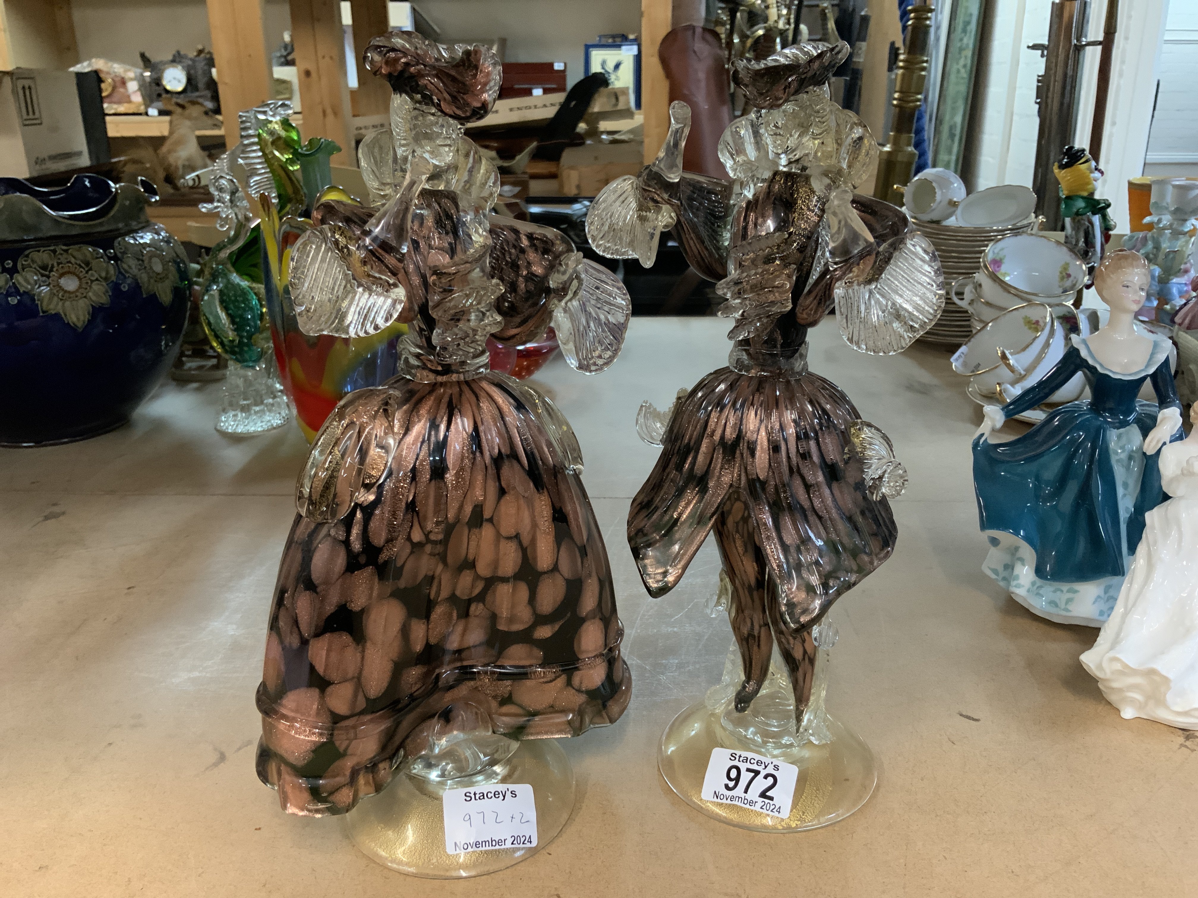 A pair of Murano glass male and female Venetian dancer figures. 31cm (D)