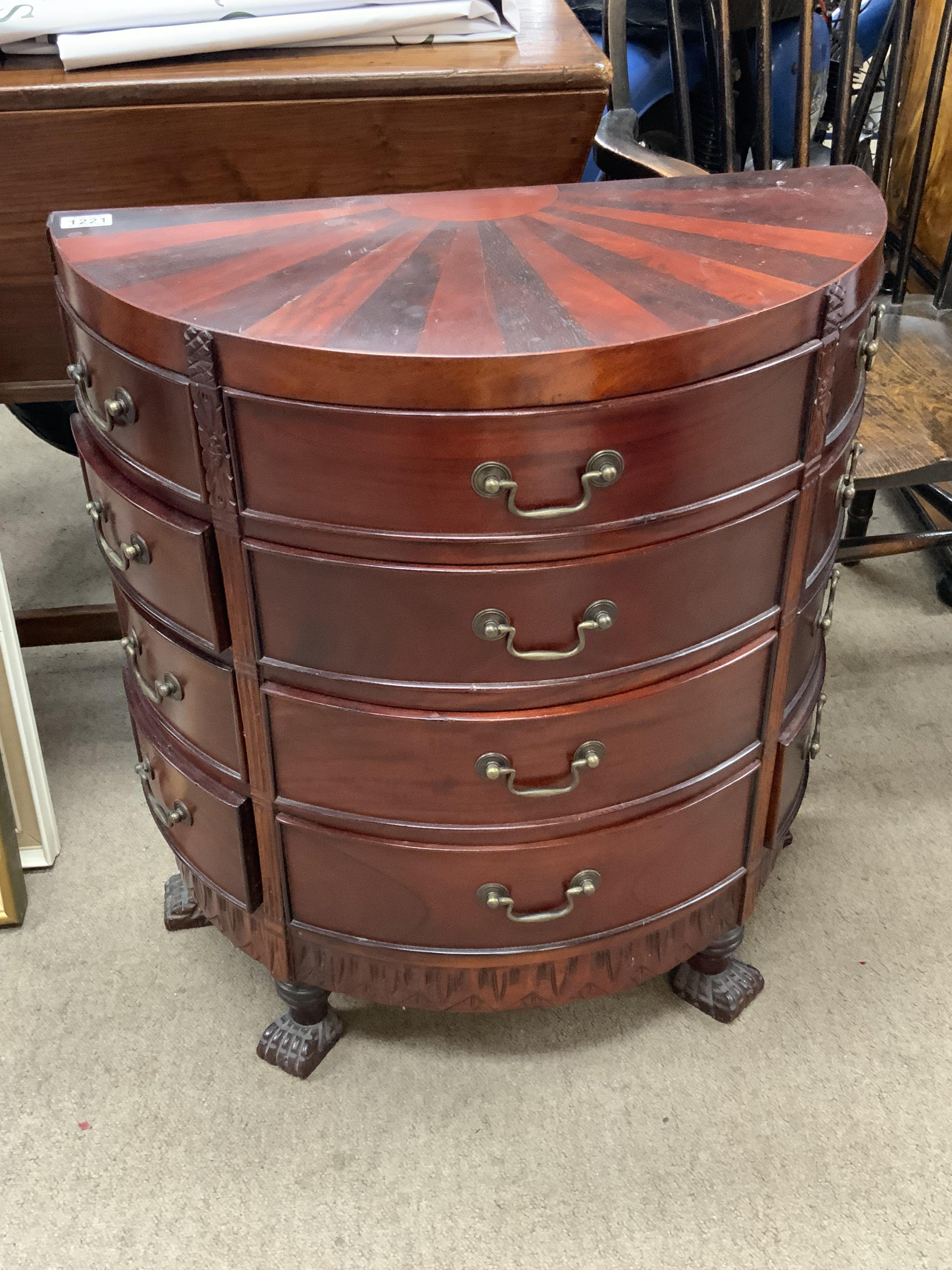 A reproduction half moon shaped chest of drawers. 76cm x 67cm x 33cm. NO RESERVE