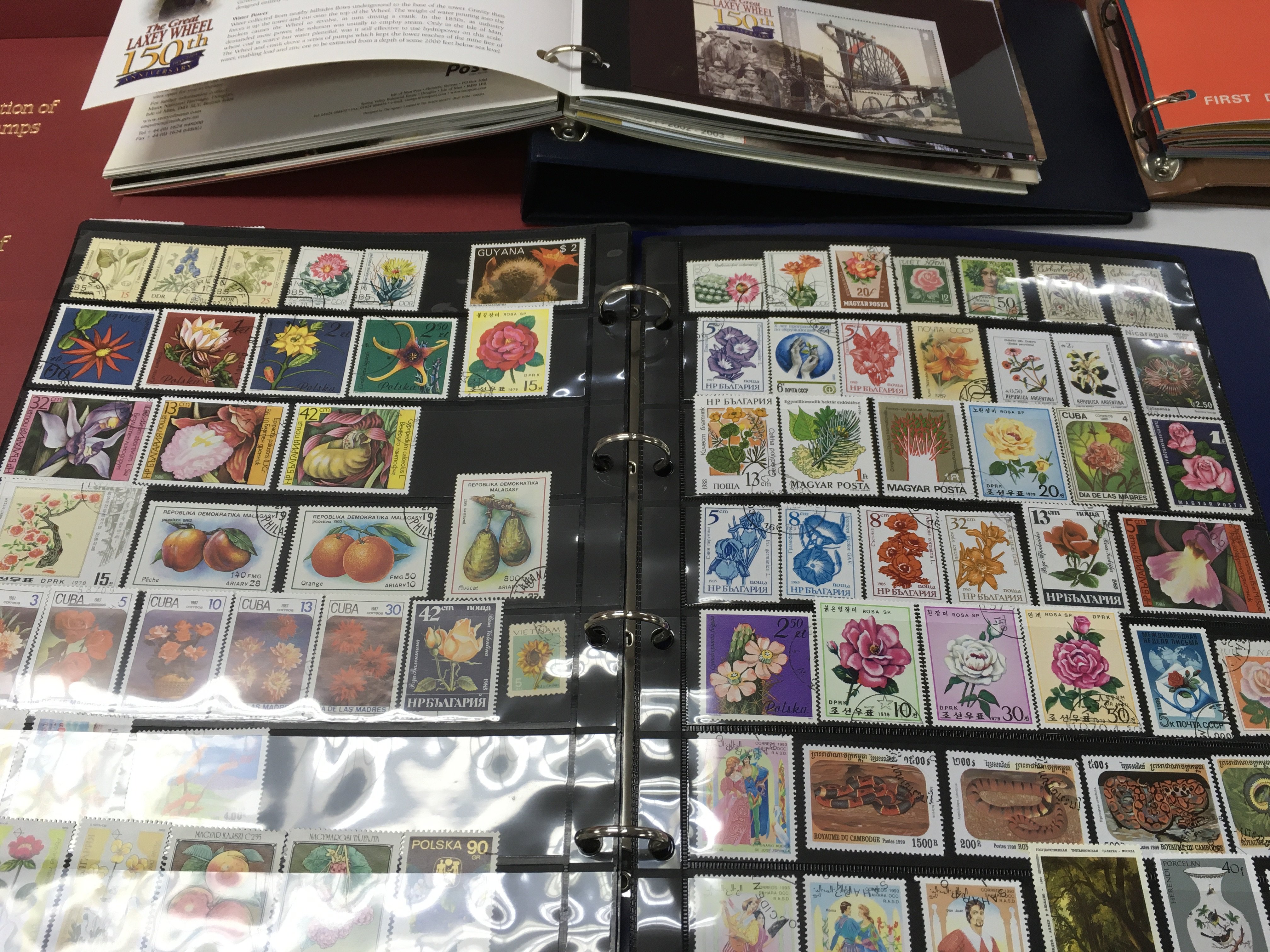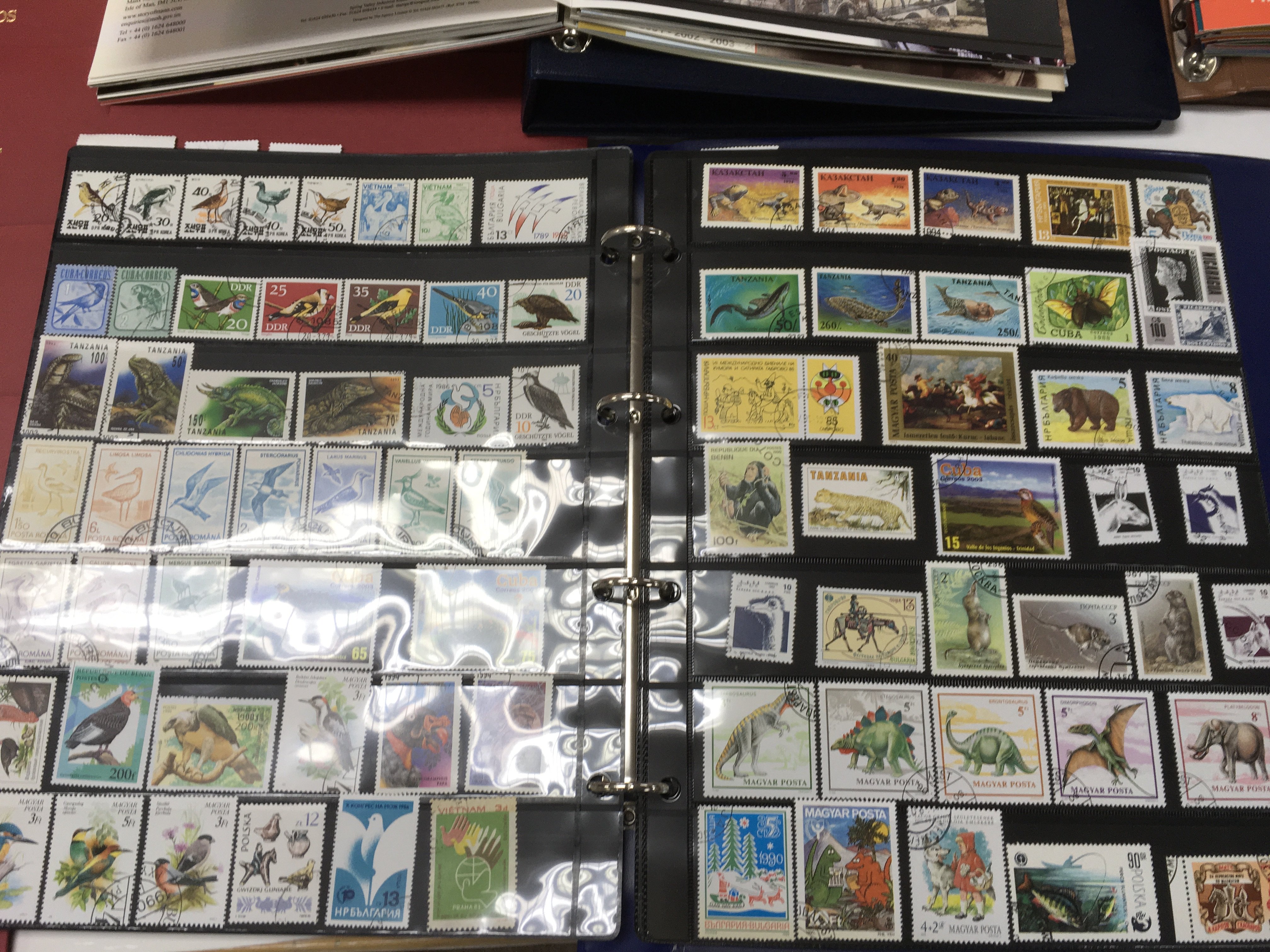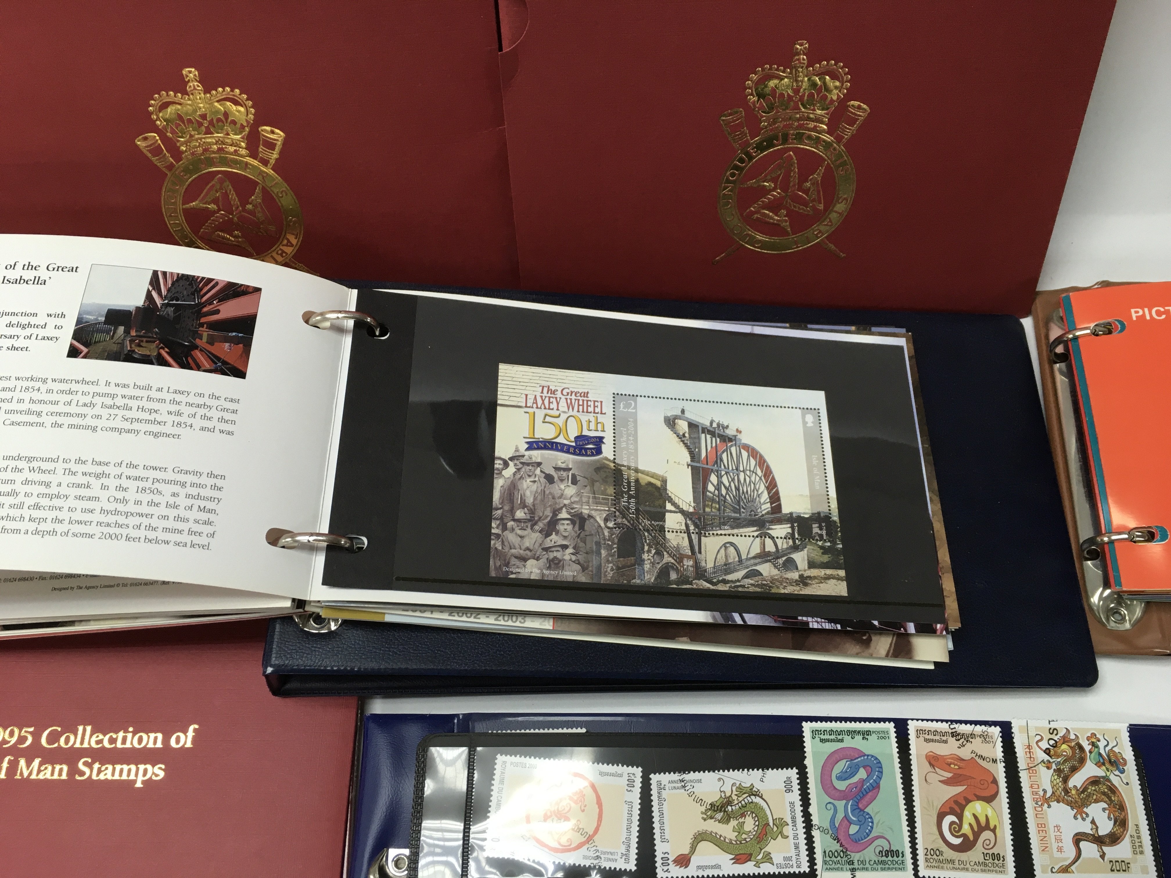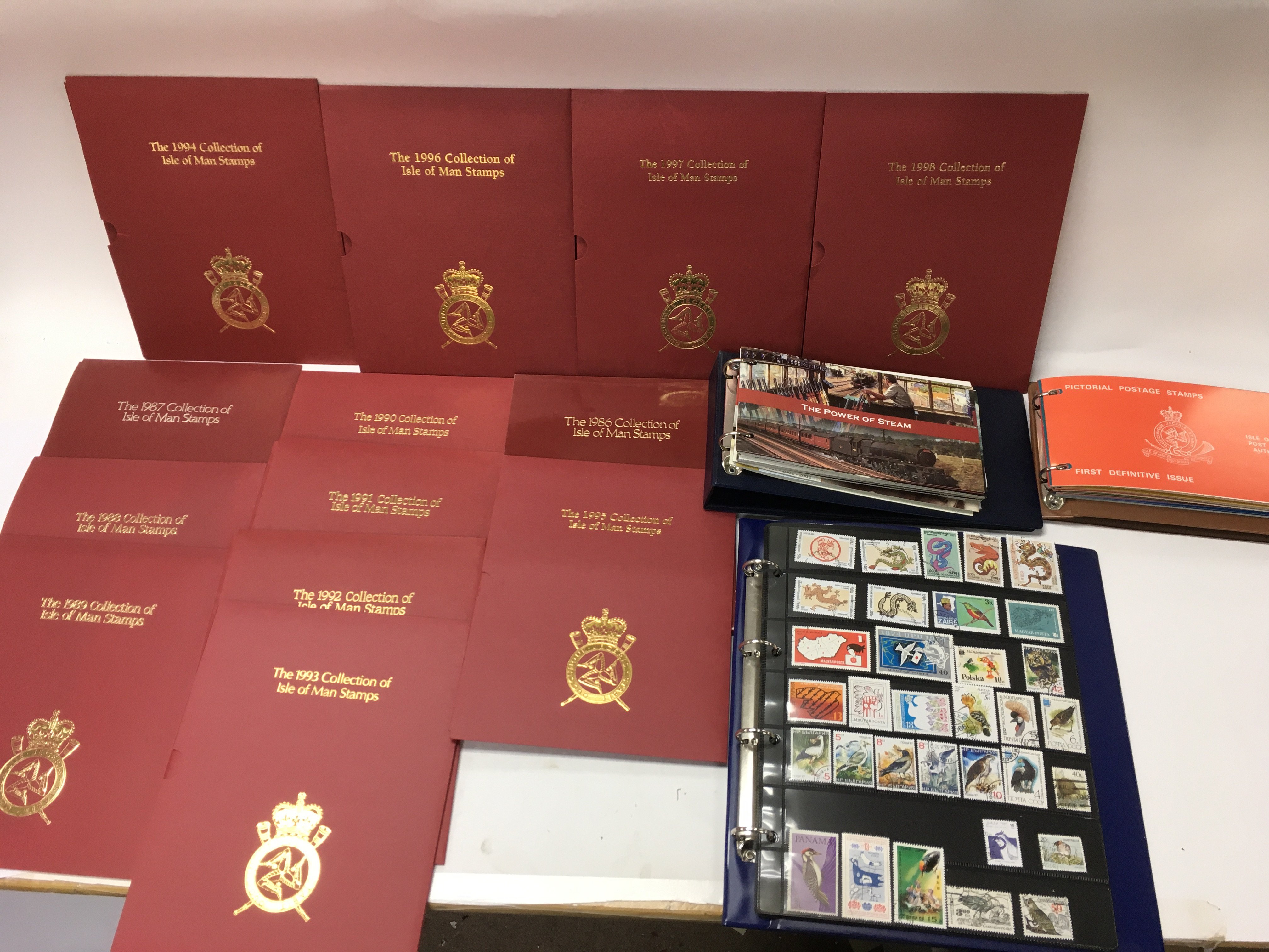 A collection of yearly isle of man stamp collection packs along with other presentation packs and loose world stamps. Postage B