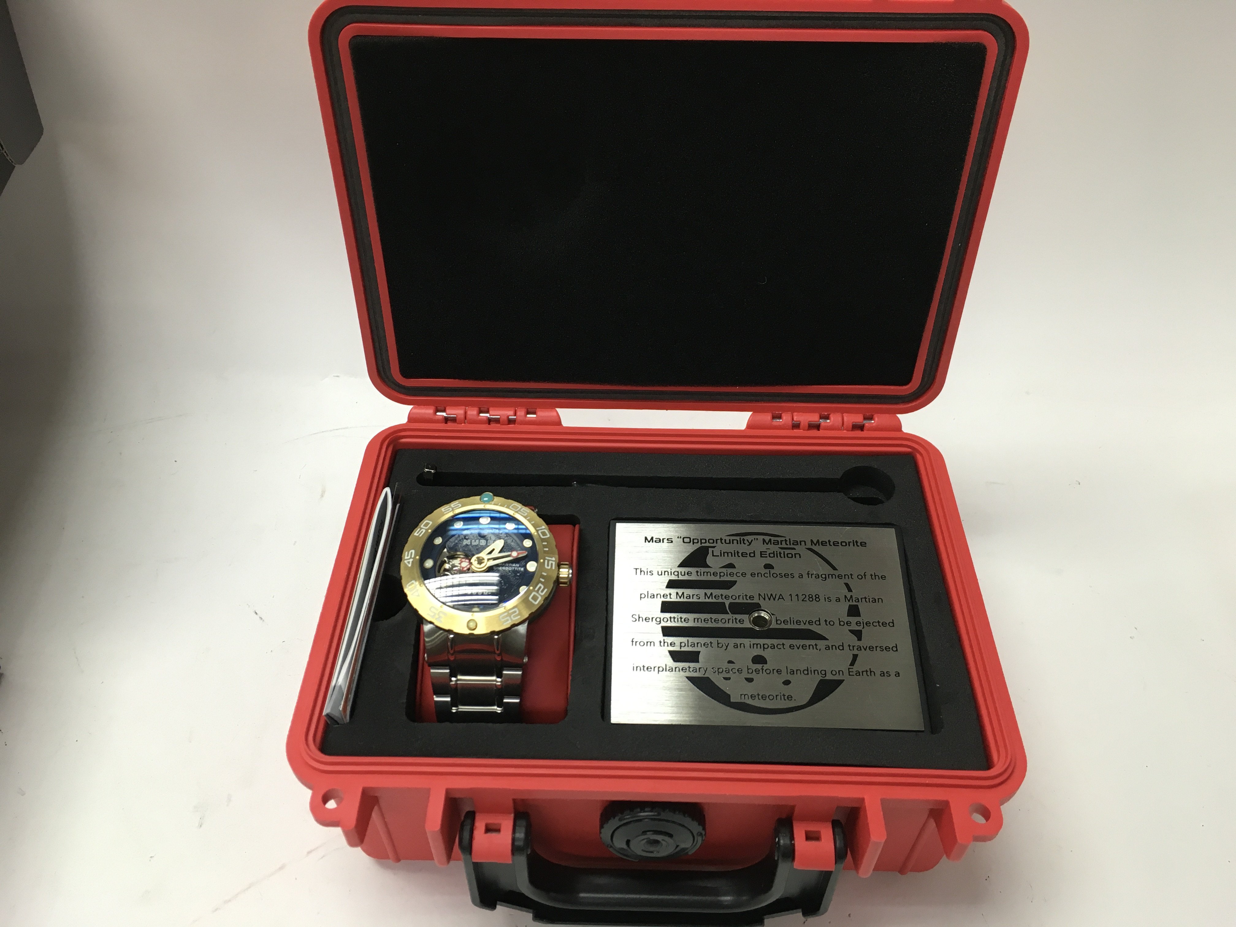 A Nubeo Mars opportunity martian meteorite ltd edition watch with all original paperwork and box. 48mm case. Seen working and in as new condition. Postage B