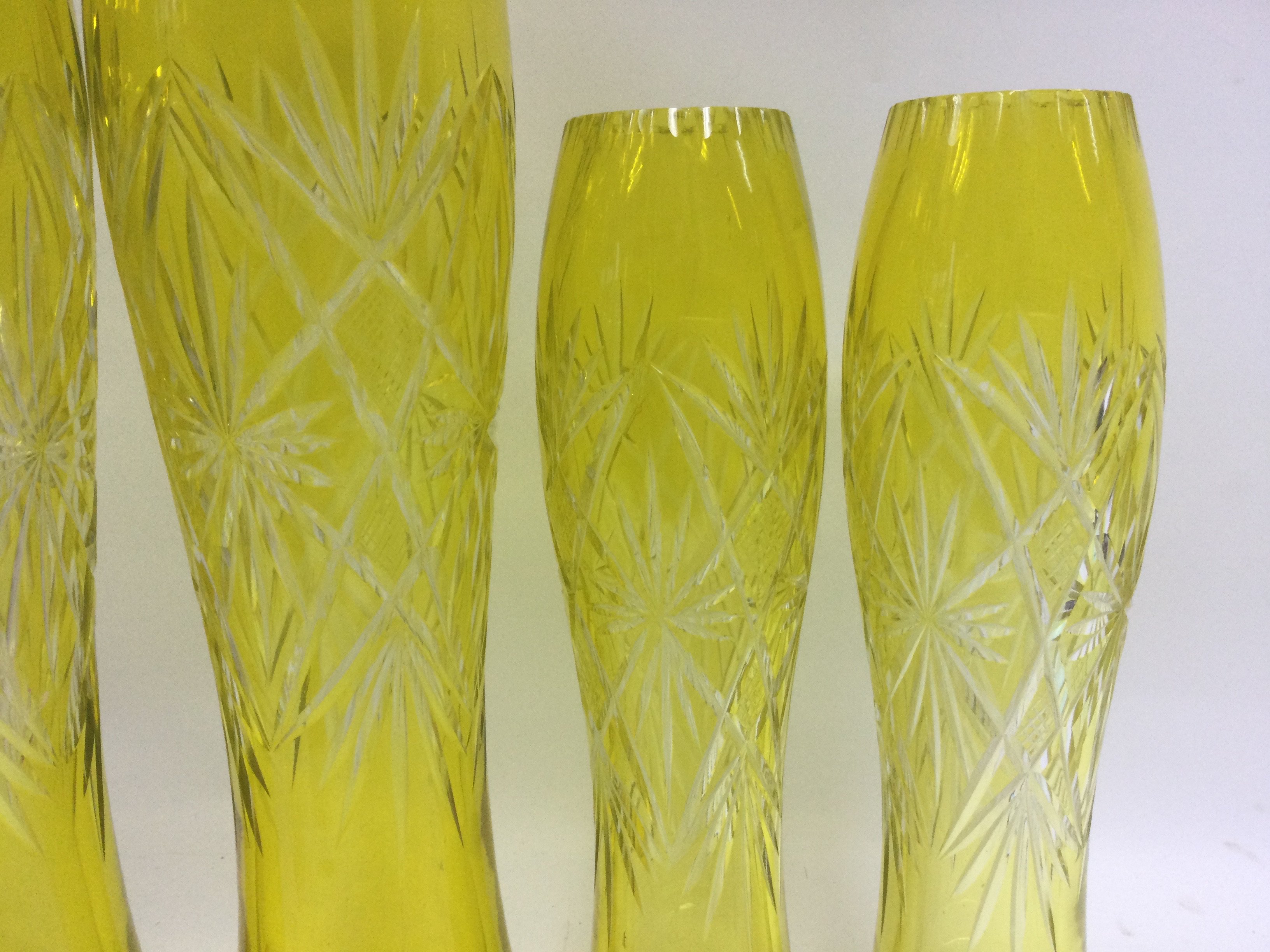Two pairs of yellow, cut glass bohemian vases . 36 cm 26 cm. NO RESERVE