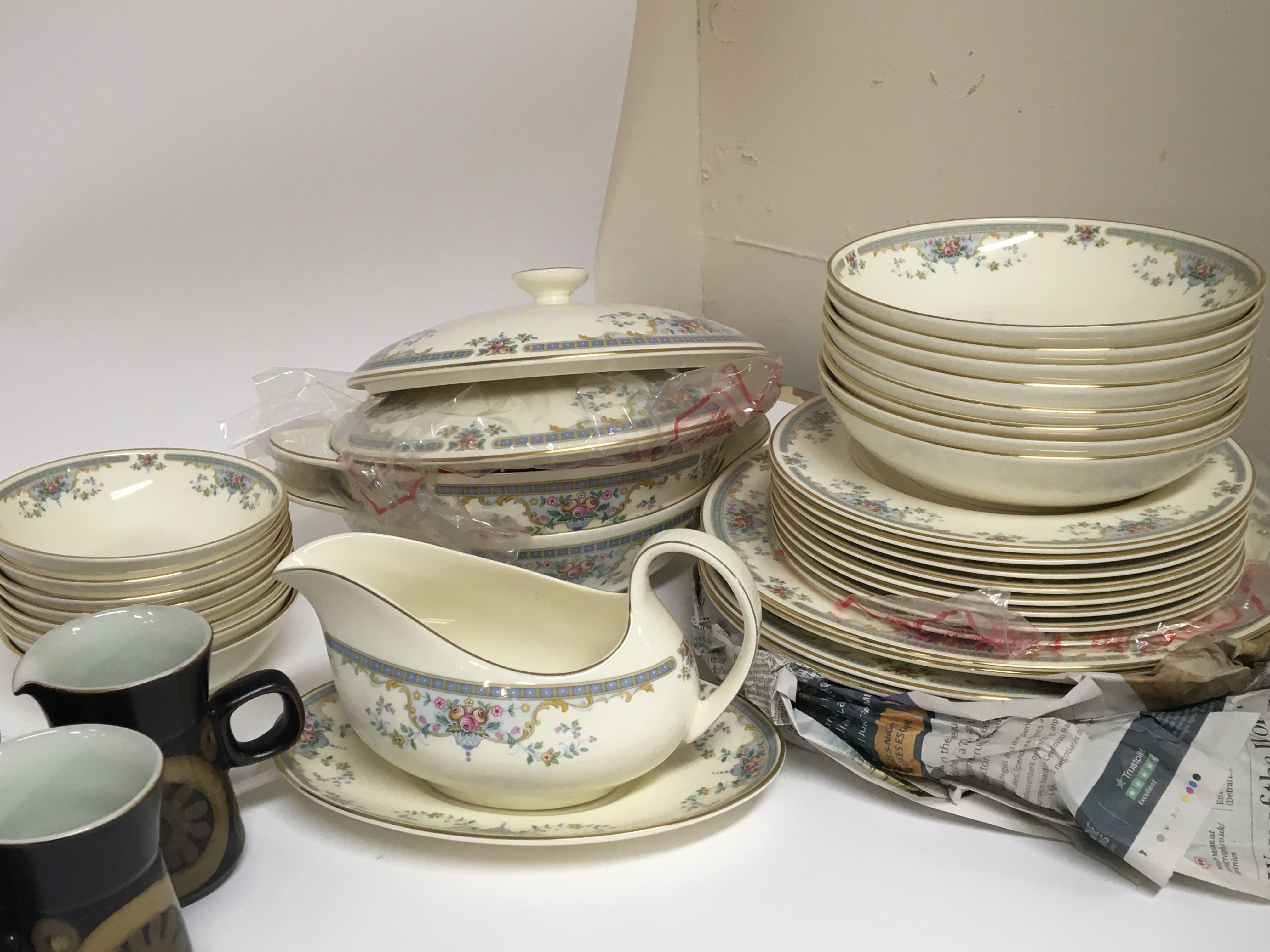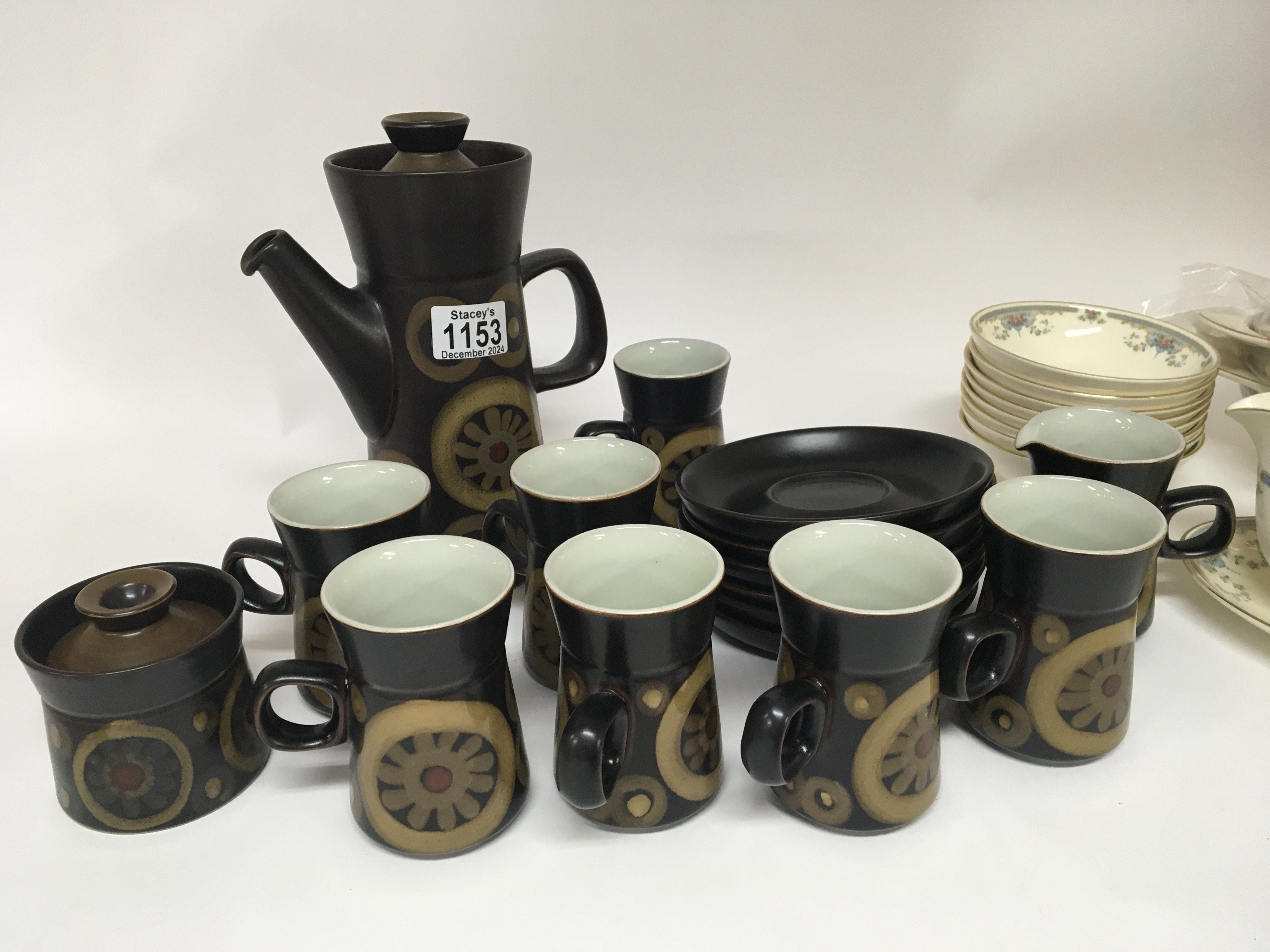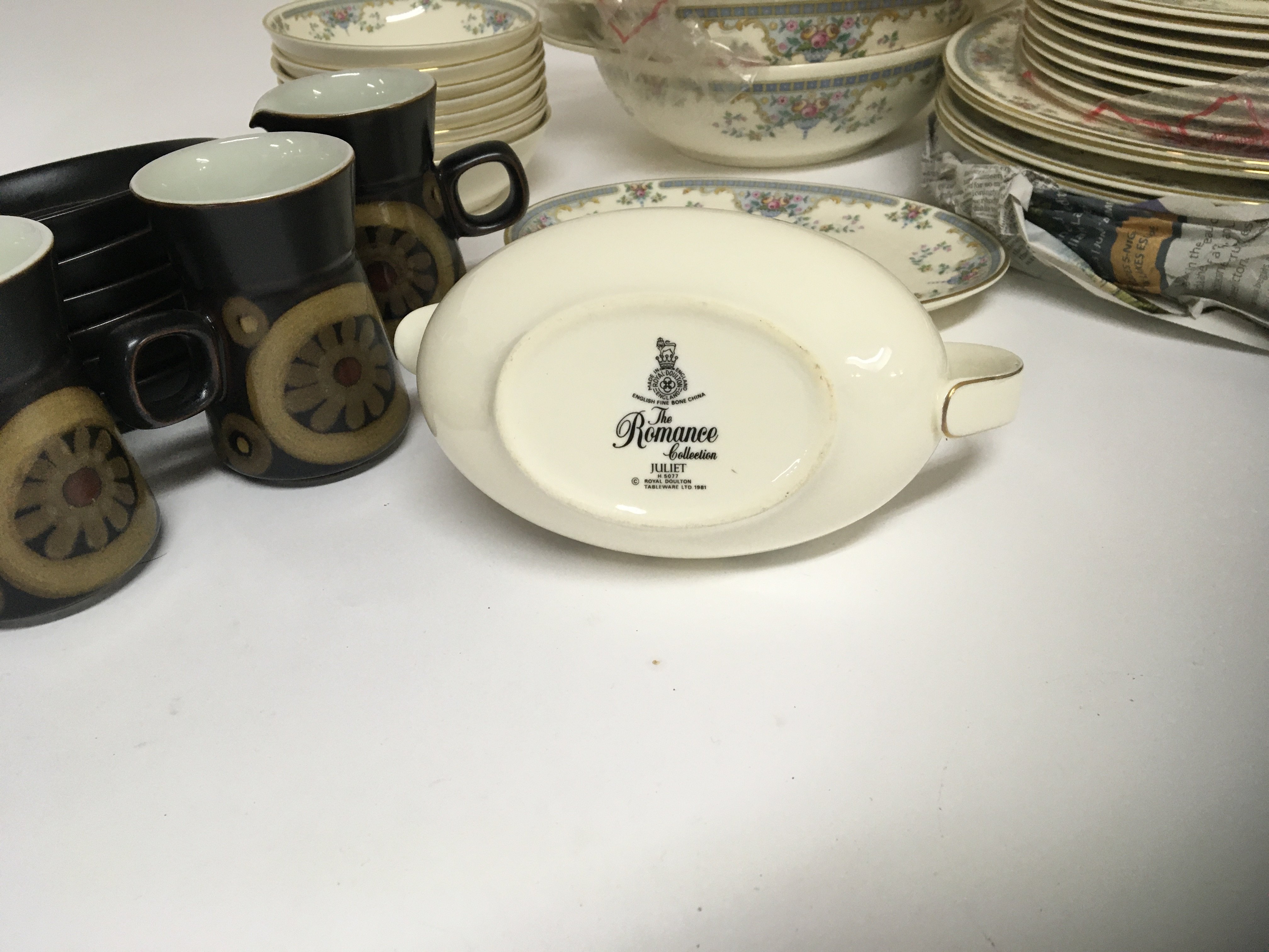 A Mid 20th Century design Denby coffee service and a Royal Doulton porcelain Romance Collection Juliet dinner service. No obvious damage and postage can be arranged via third party professional packers.