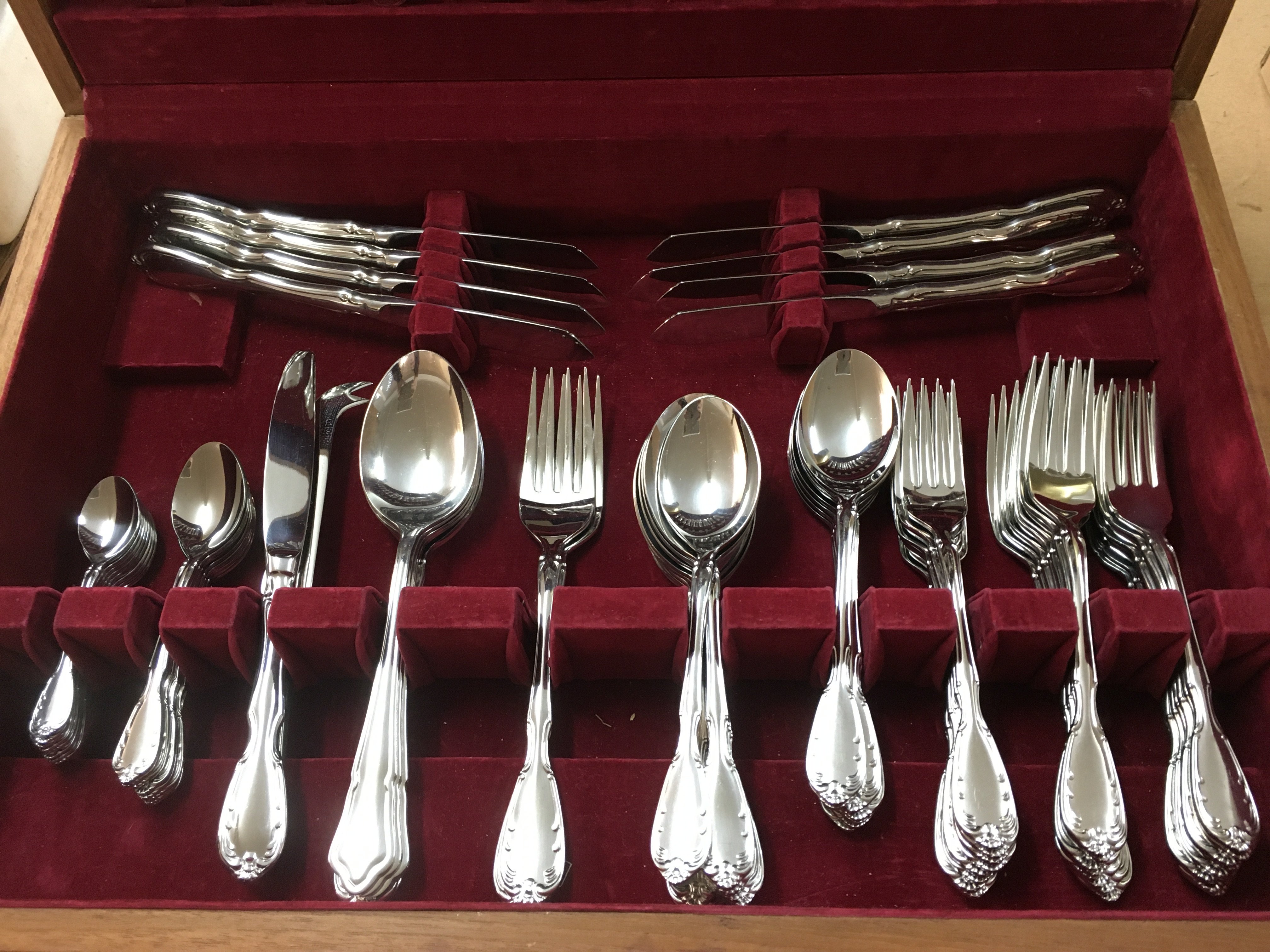 Canteen of Noritake Serenada stainless silver cutlery including knives, forks and spoons. Postage category C
