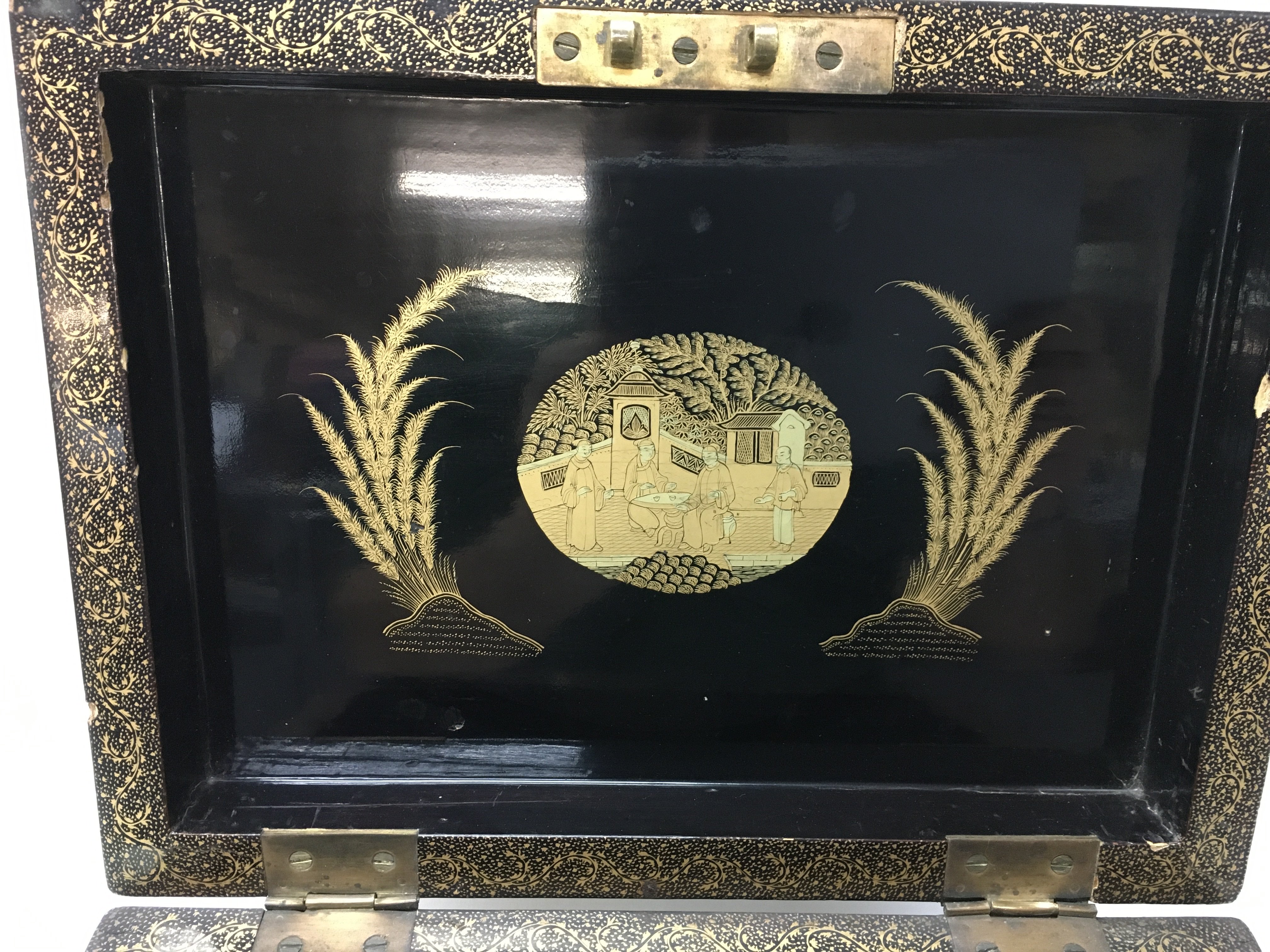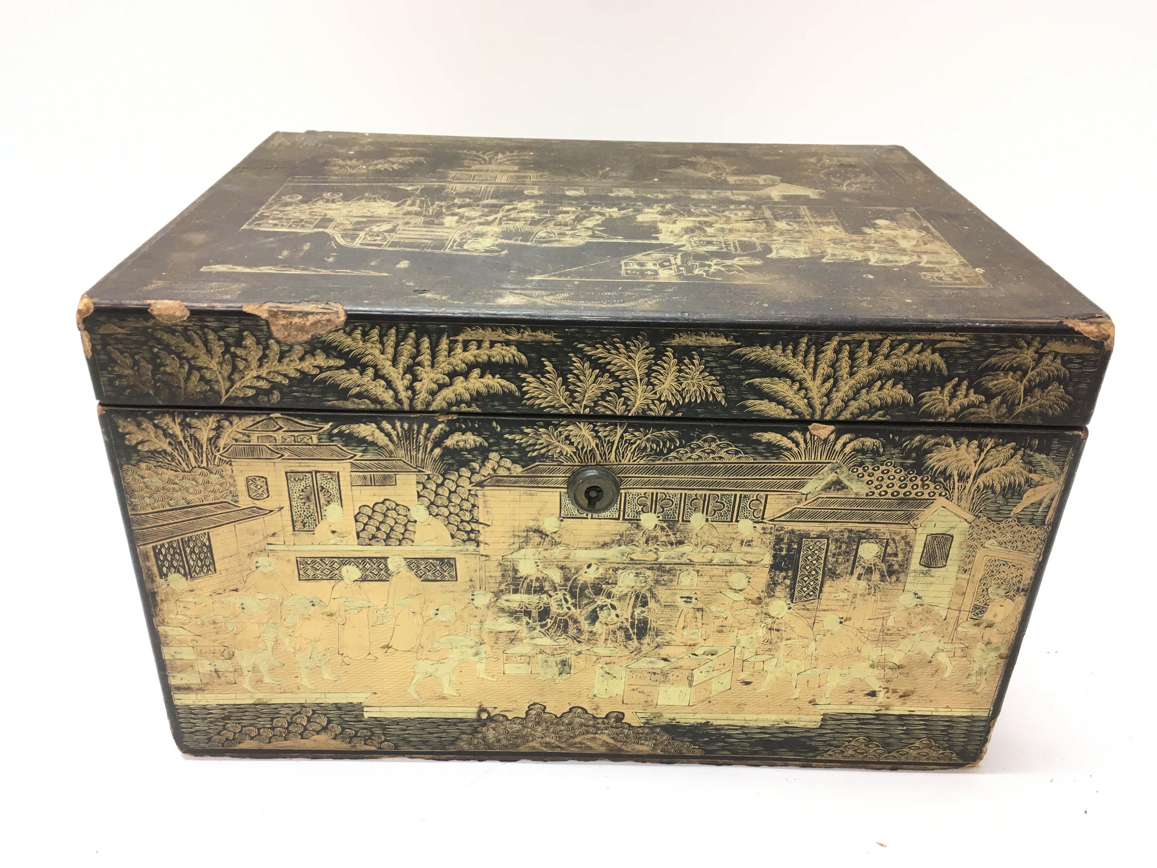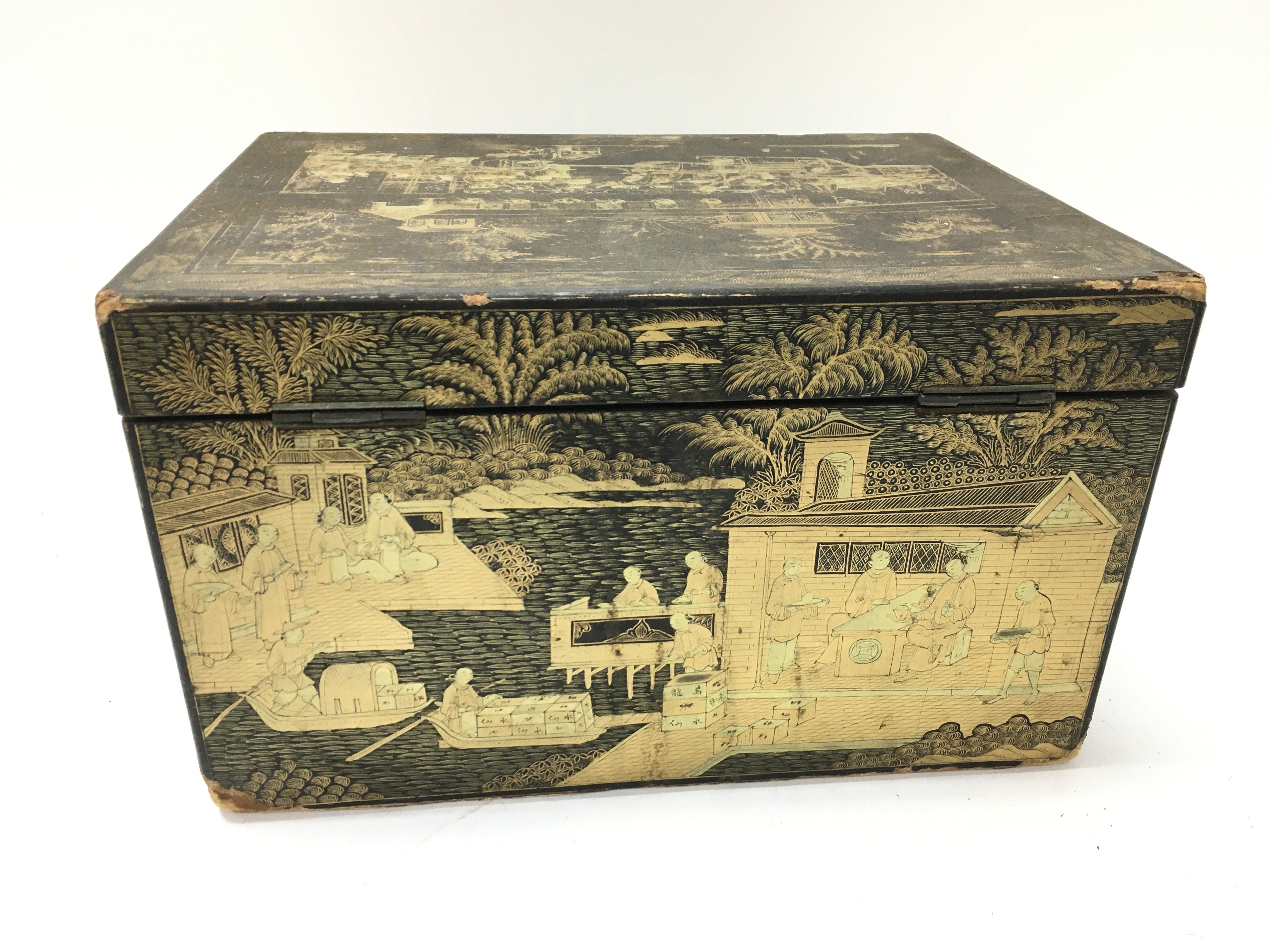 A 19th century Chinese lacquer box. 28cm wide 21deep and 17cm tall.