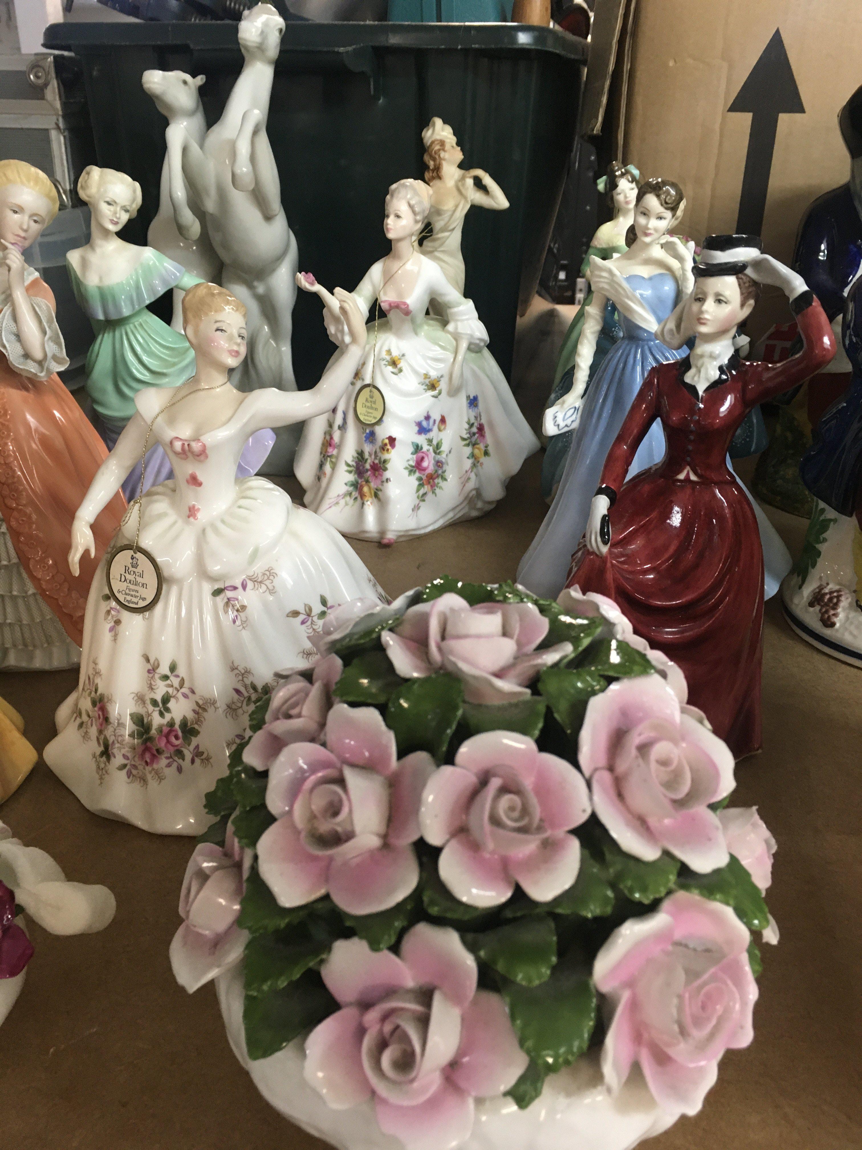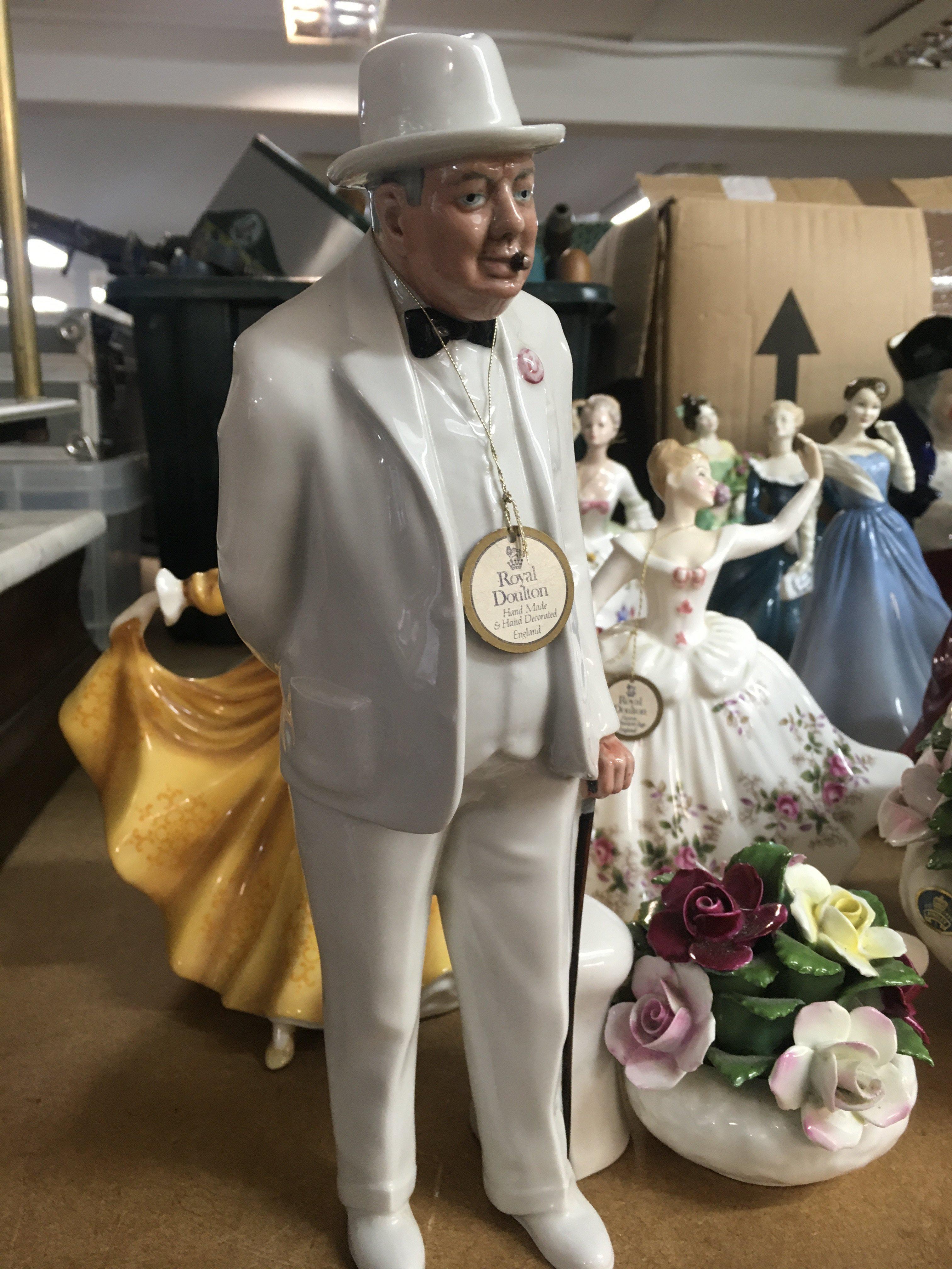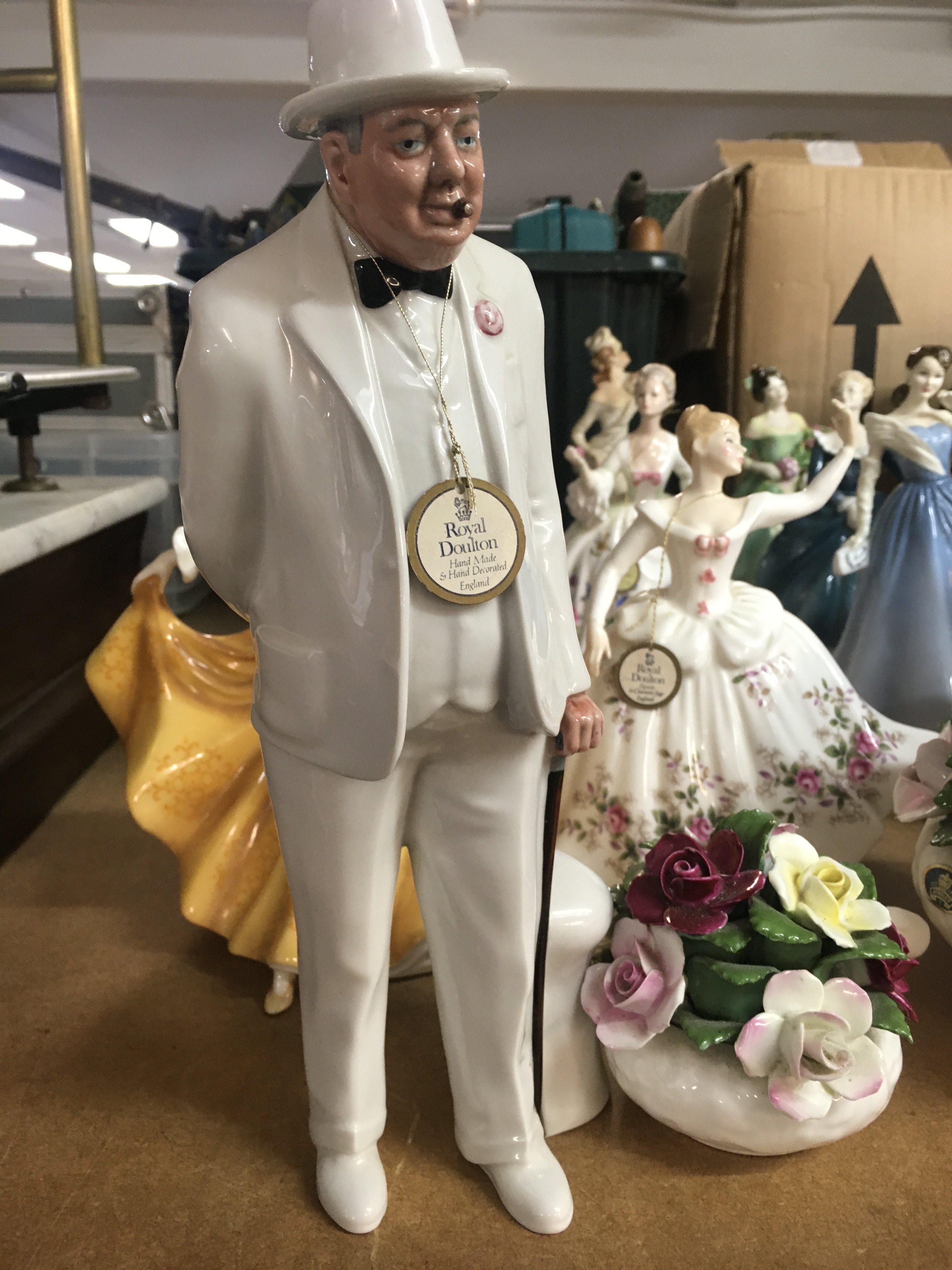 A Collection of Doulton and other figurines including sir Winston Churchill.