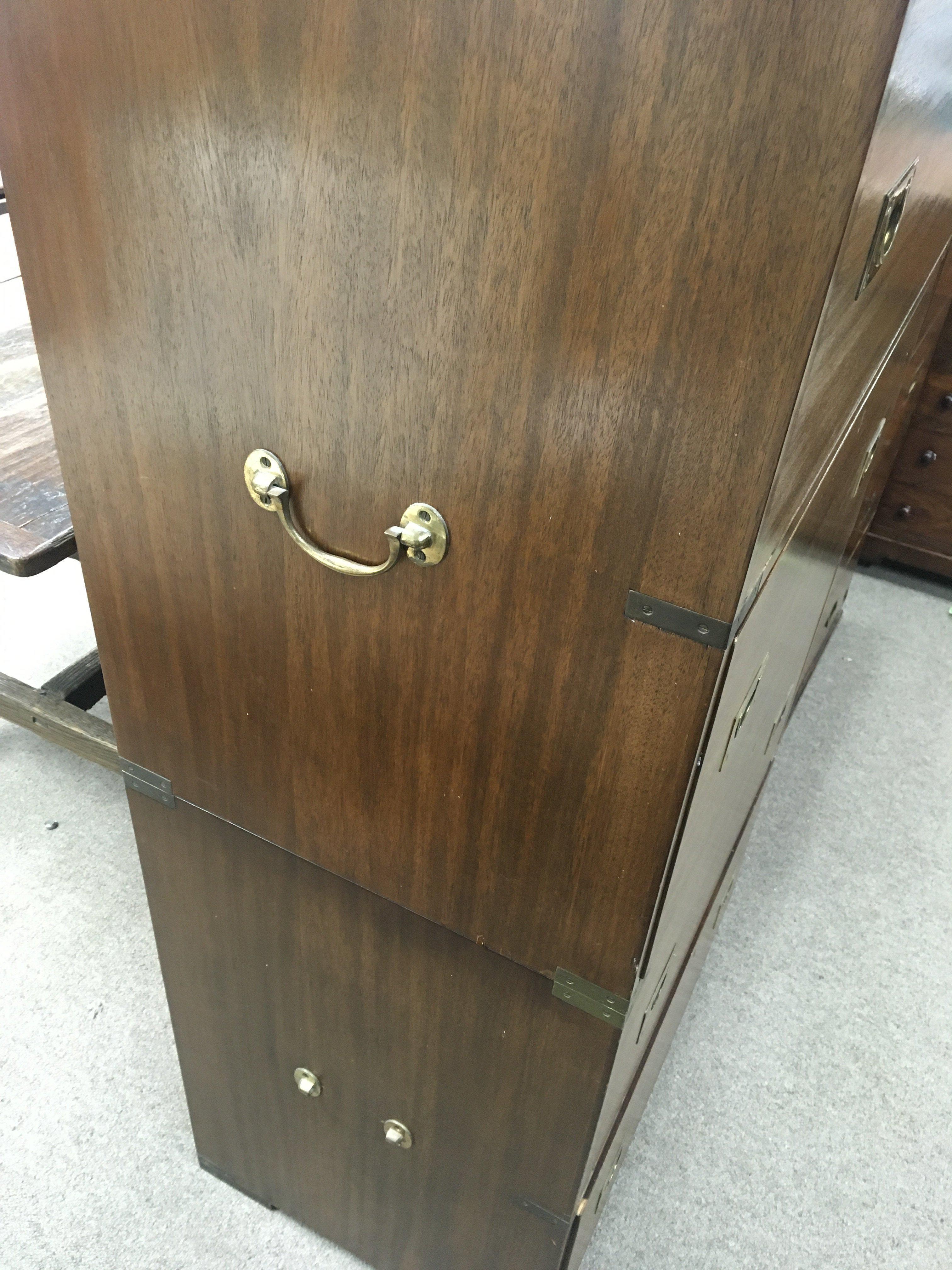 A campaign style brass bound chest of drawers fitted with four drawers