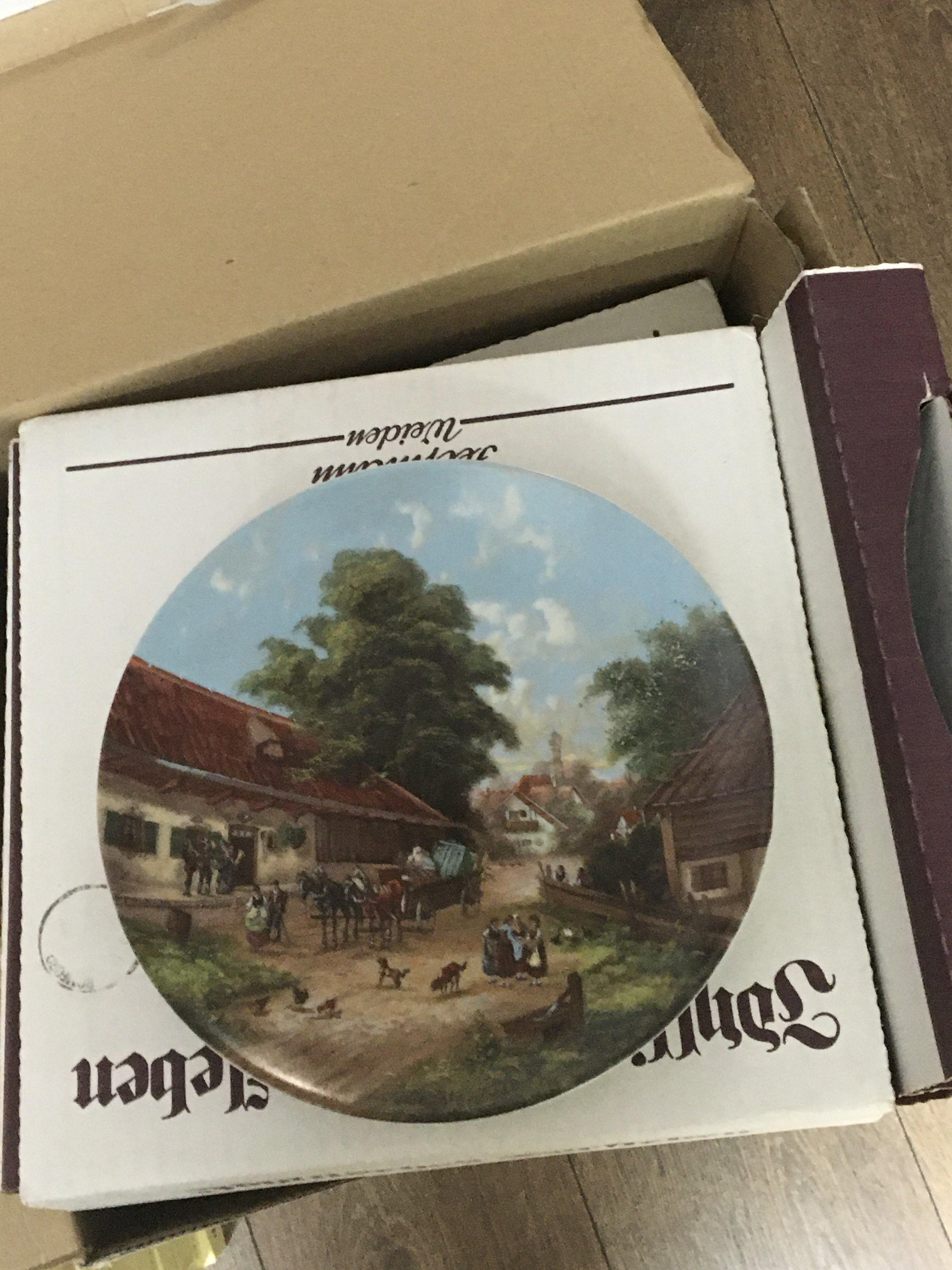 A large quantity of collectors ceramic plates in six boxes mixed makers and Subjects all boxed. No obvious damage. NO RESERVE