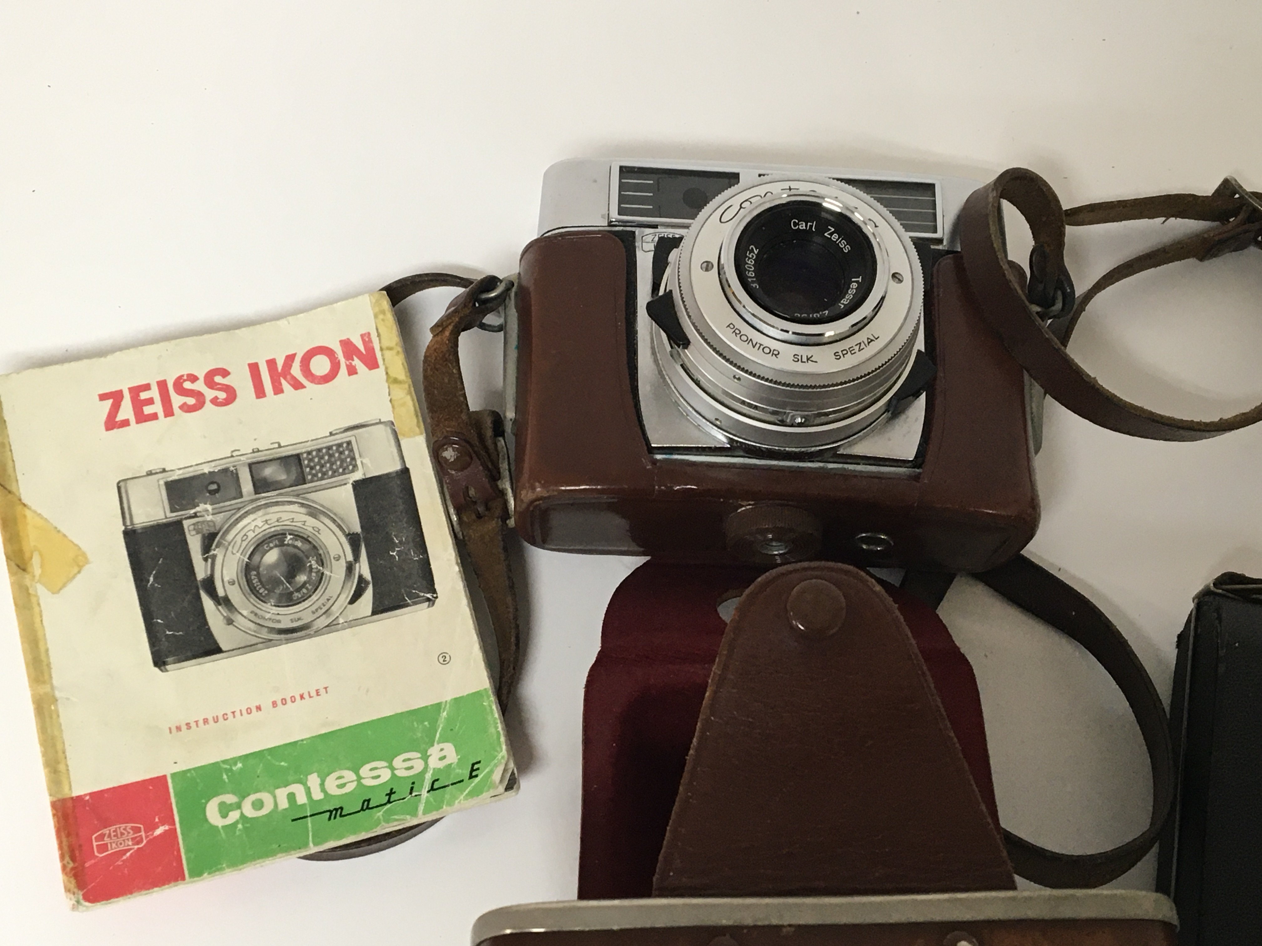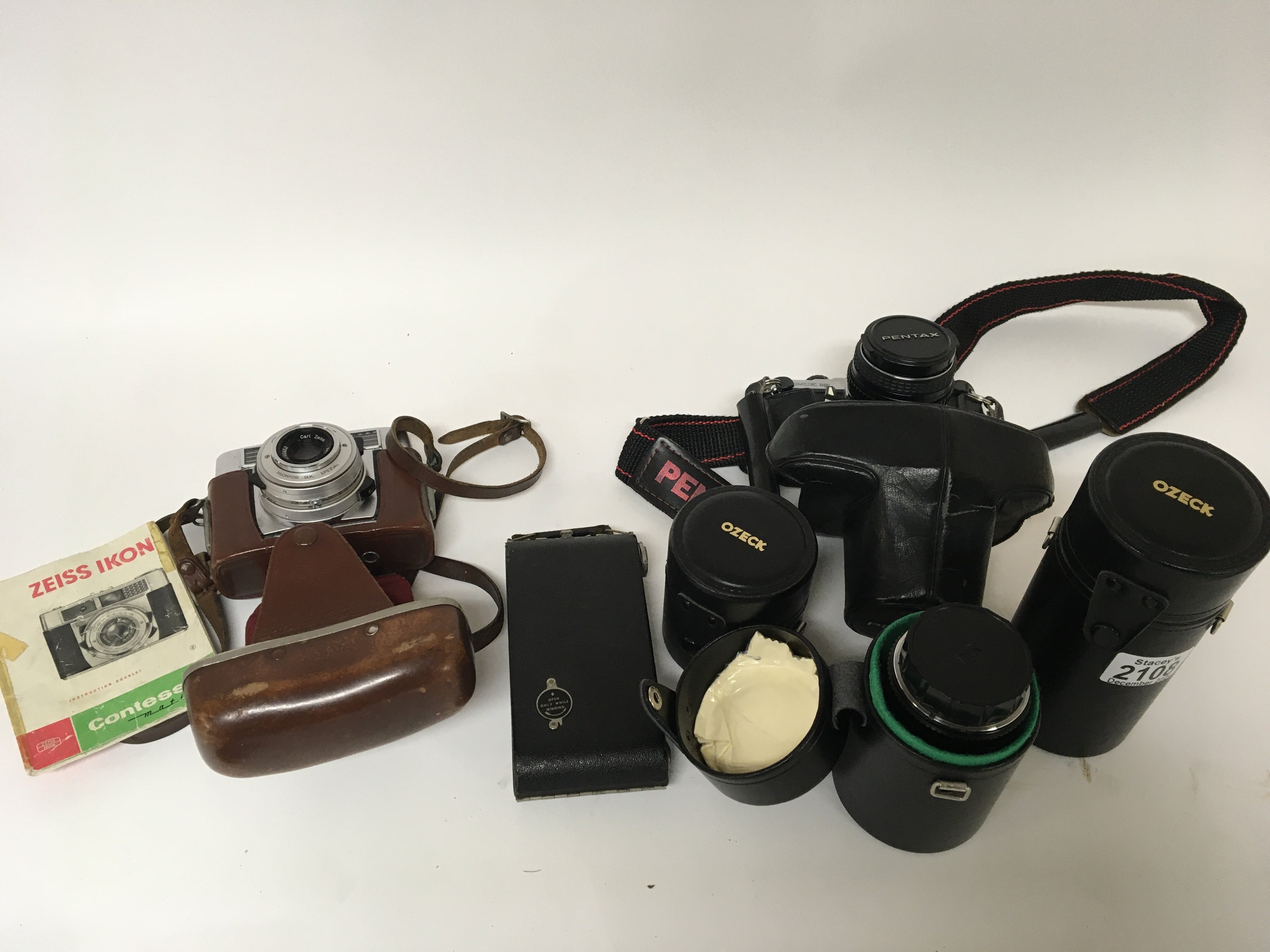 A Zeiss Ikon Contessa Camera three Ozeck telescopic lens a Pentax Camera and one other.