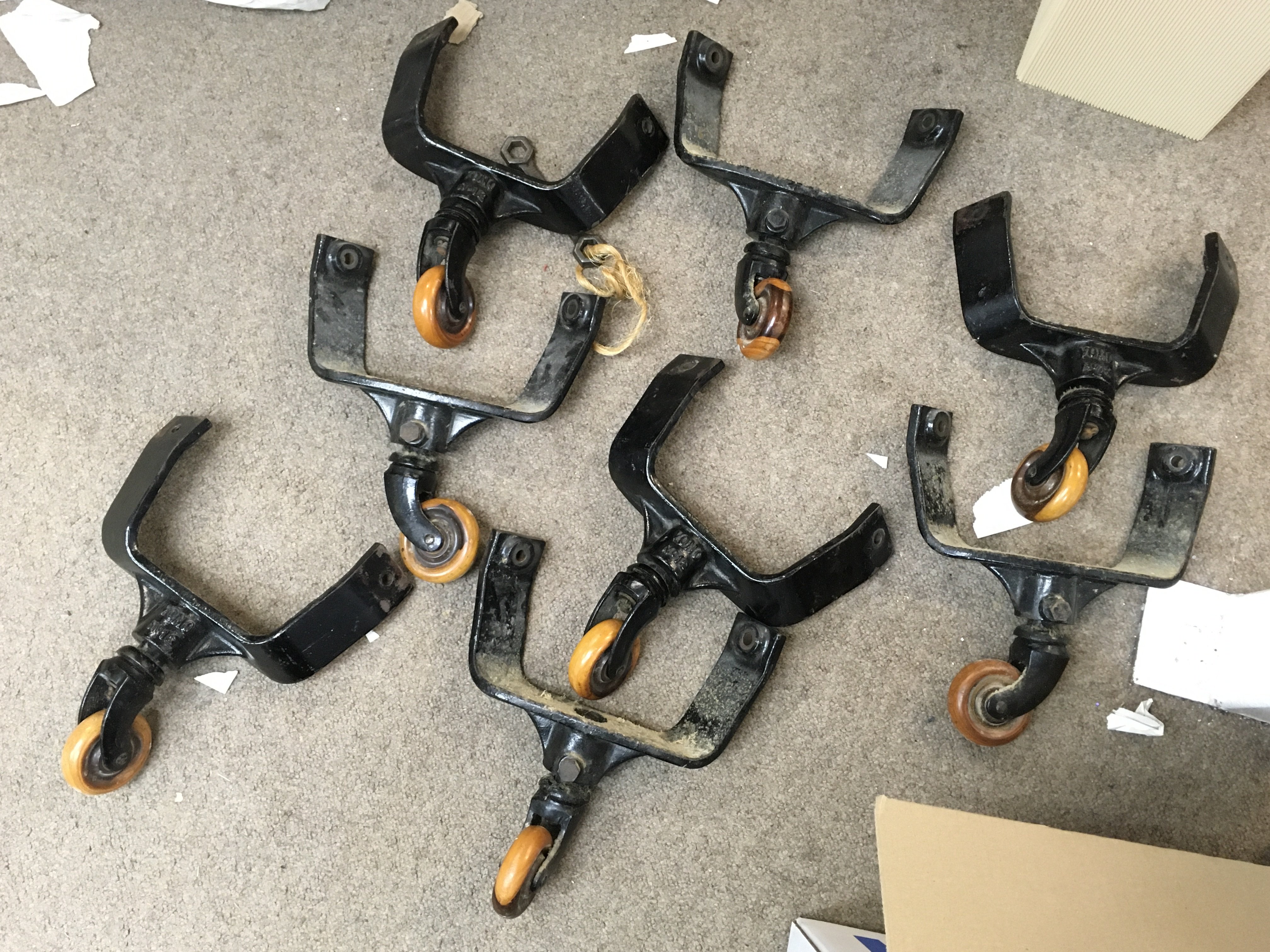 A Collection of cast iron olive wood bed casters. This lot cannot be posted. NO RESERVE