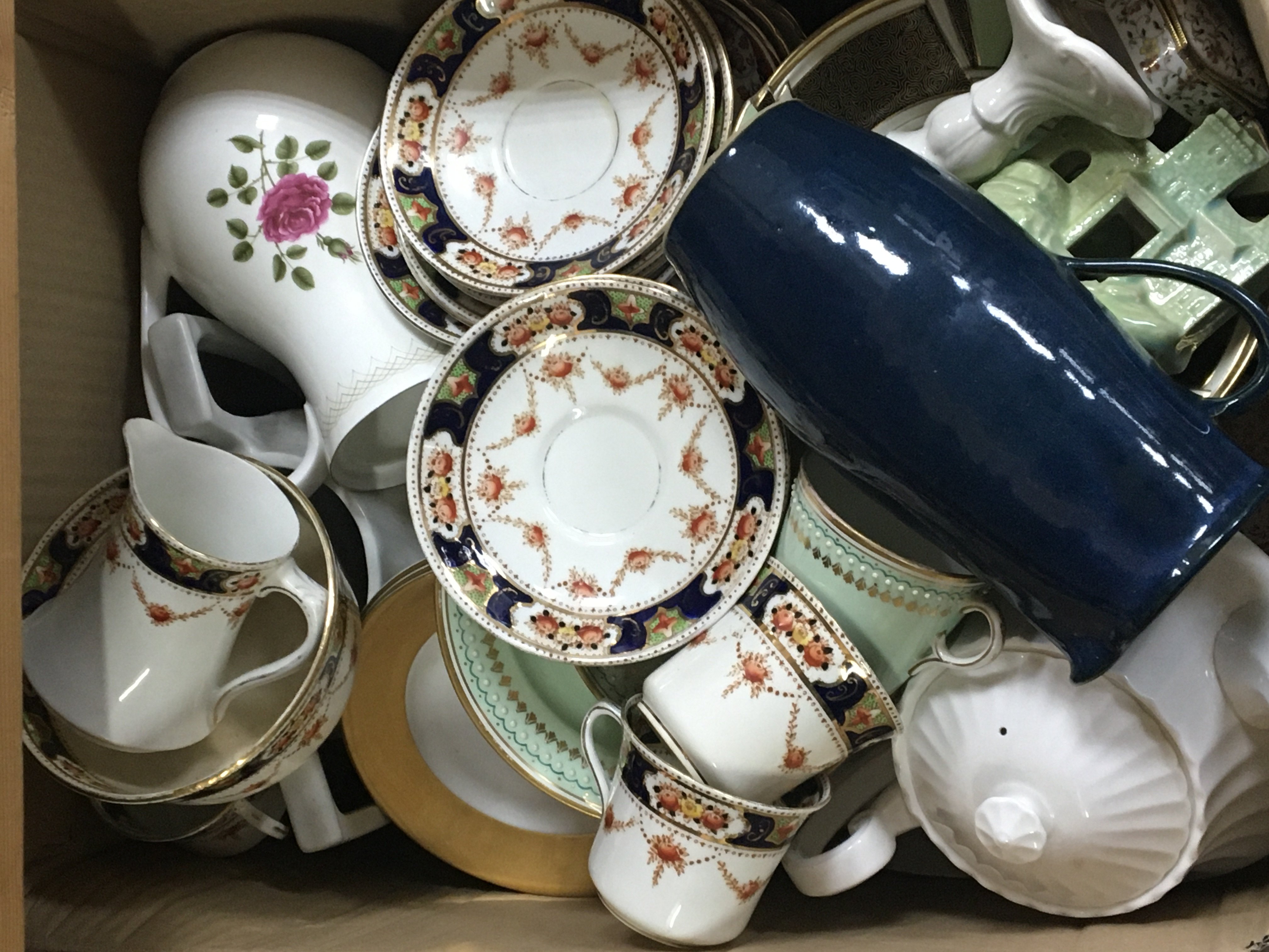 A box containing decorative Victorian and later cups and saucers and other ceramics. NO RESERVE
