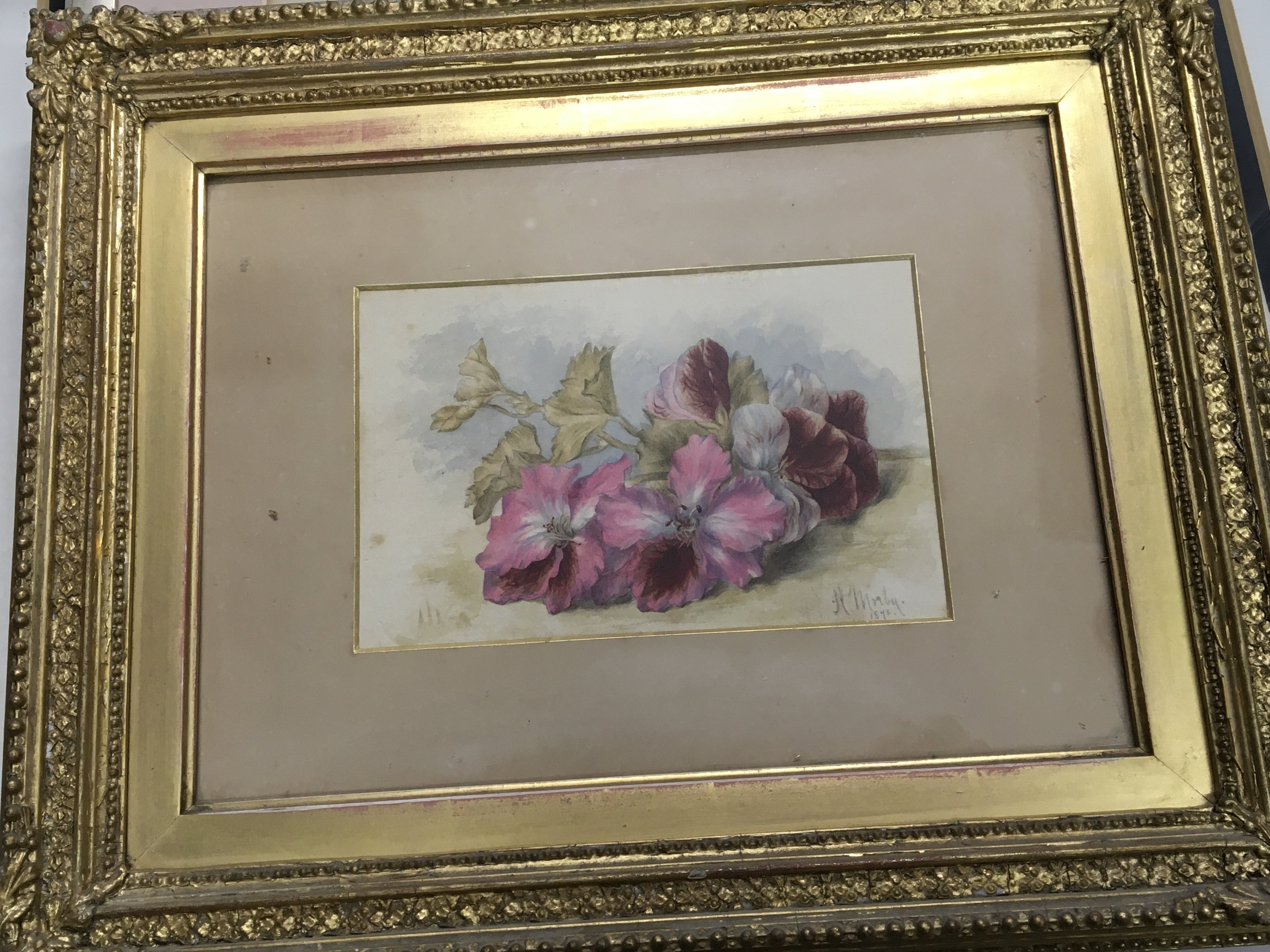 A framed Antique map of Somerset Shire by Rob Morden and two framed late 19th century watercolour study of flowers and a rural scene with a figure in a shallow river (3). NO RESERVE