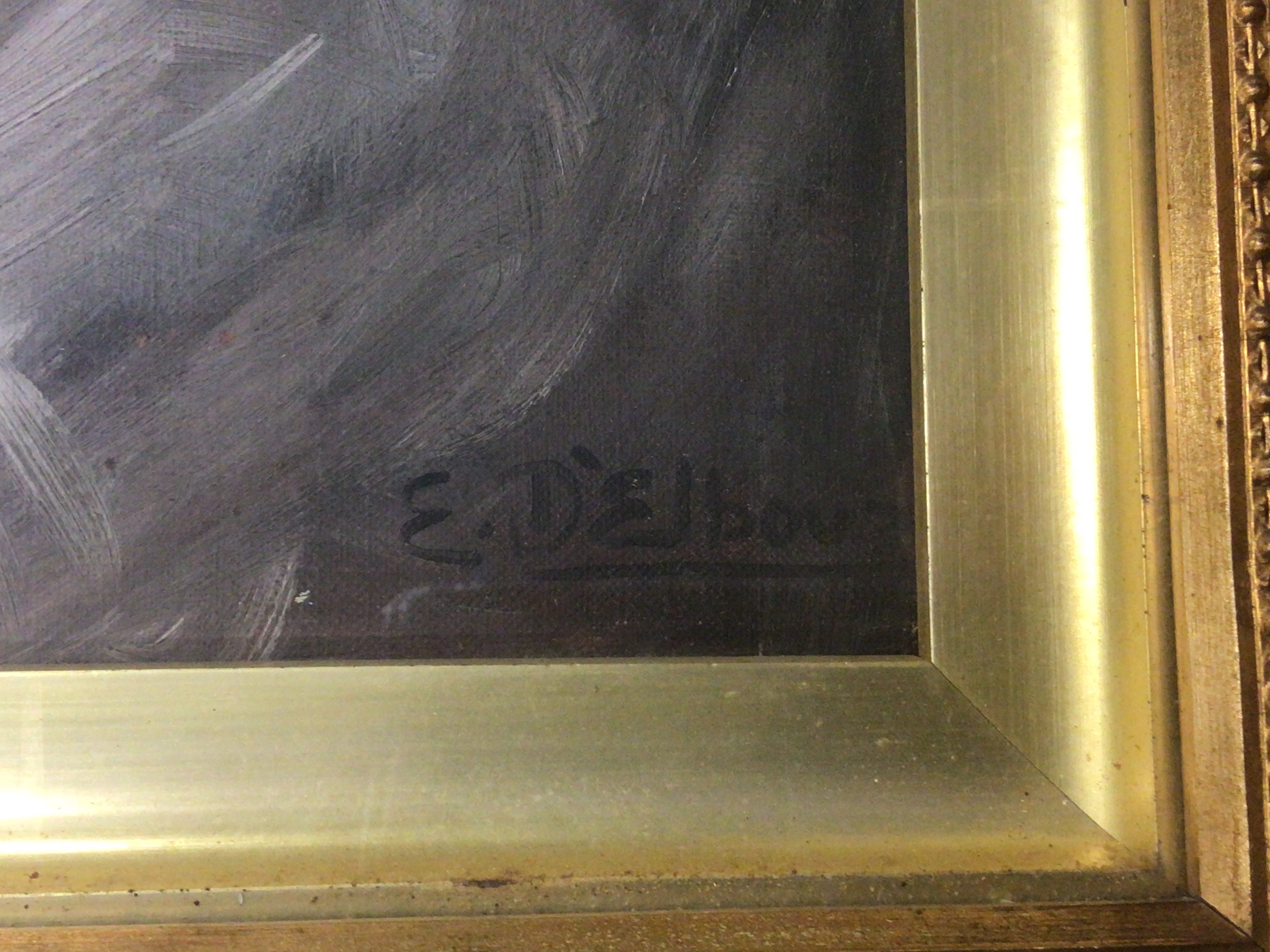 A gilt framed oil painting on canvas Portrait of a young Victorian girl signed E De Labourne. 66x58cm. NO RESERVE
