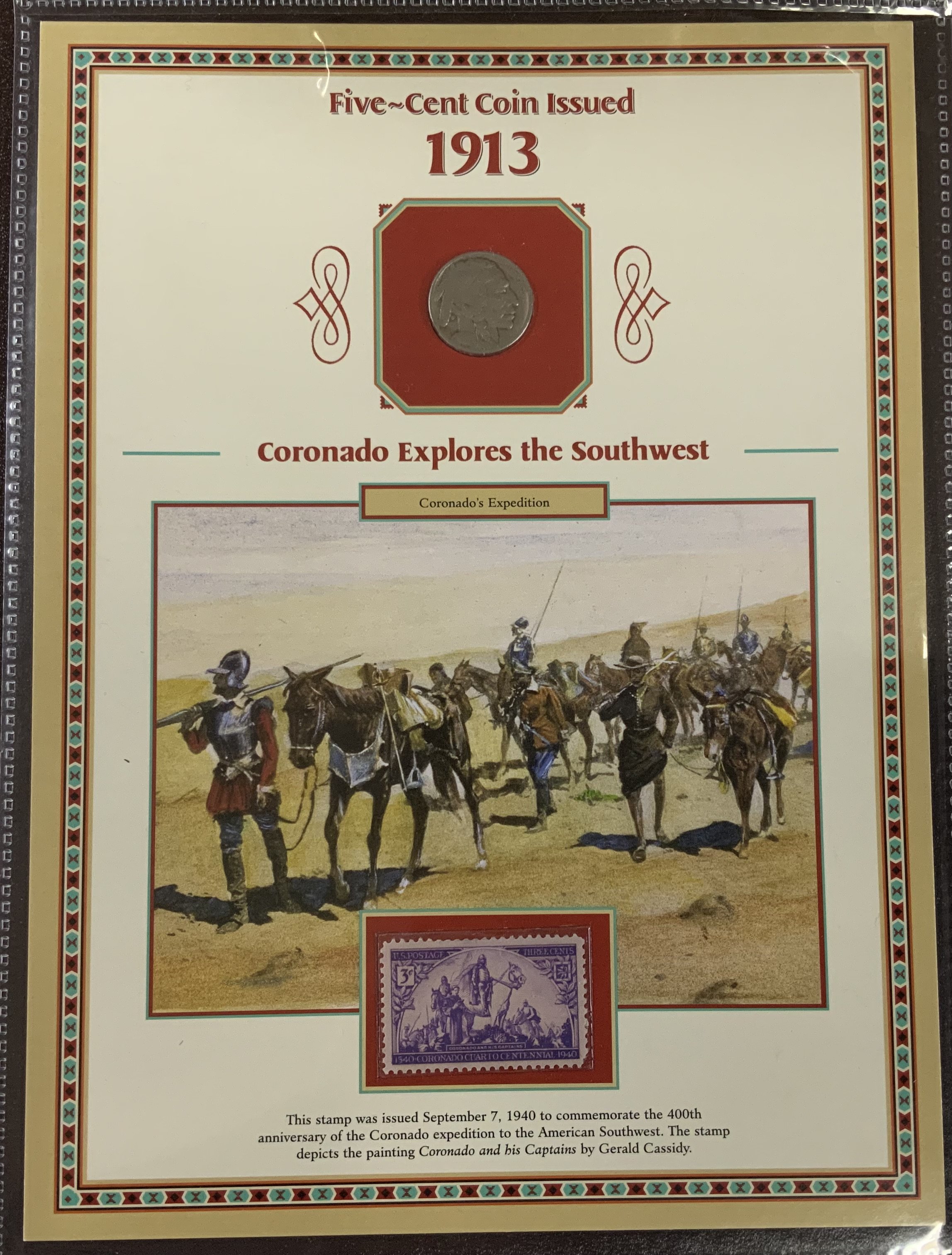 20 years of buffalo nickels combined with US commemorative stamps and artwork honouring the American west, PCS stamps and coins (B)