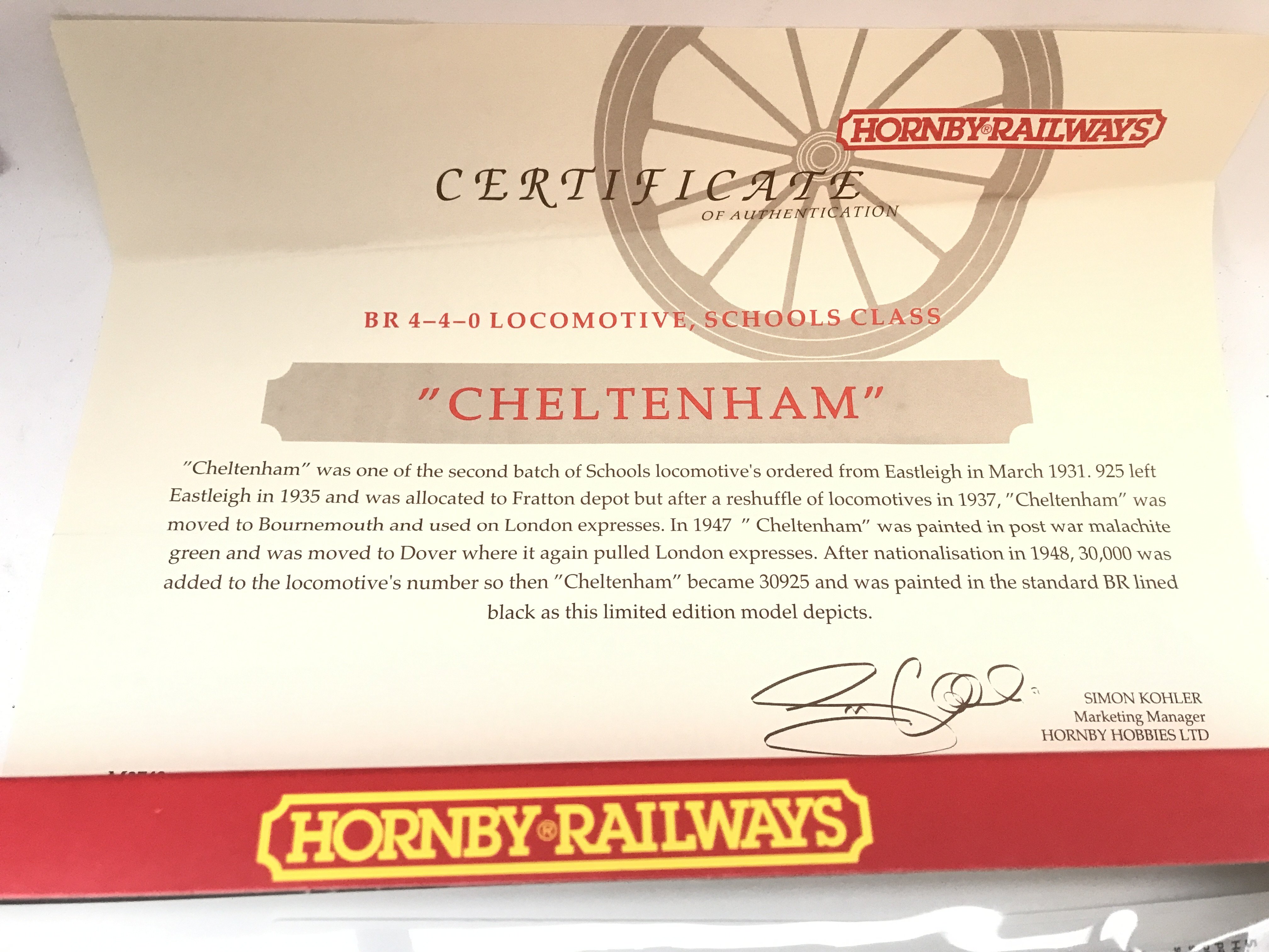 A Boxed Hornby 00 Gauge Locomotive A BR Schools Class Cheltenham #R.2039.