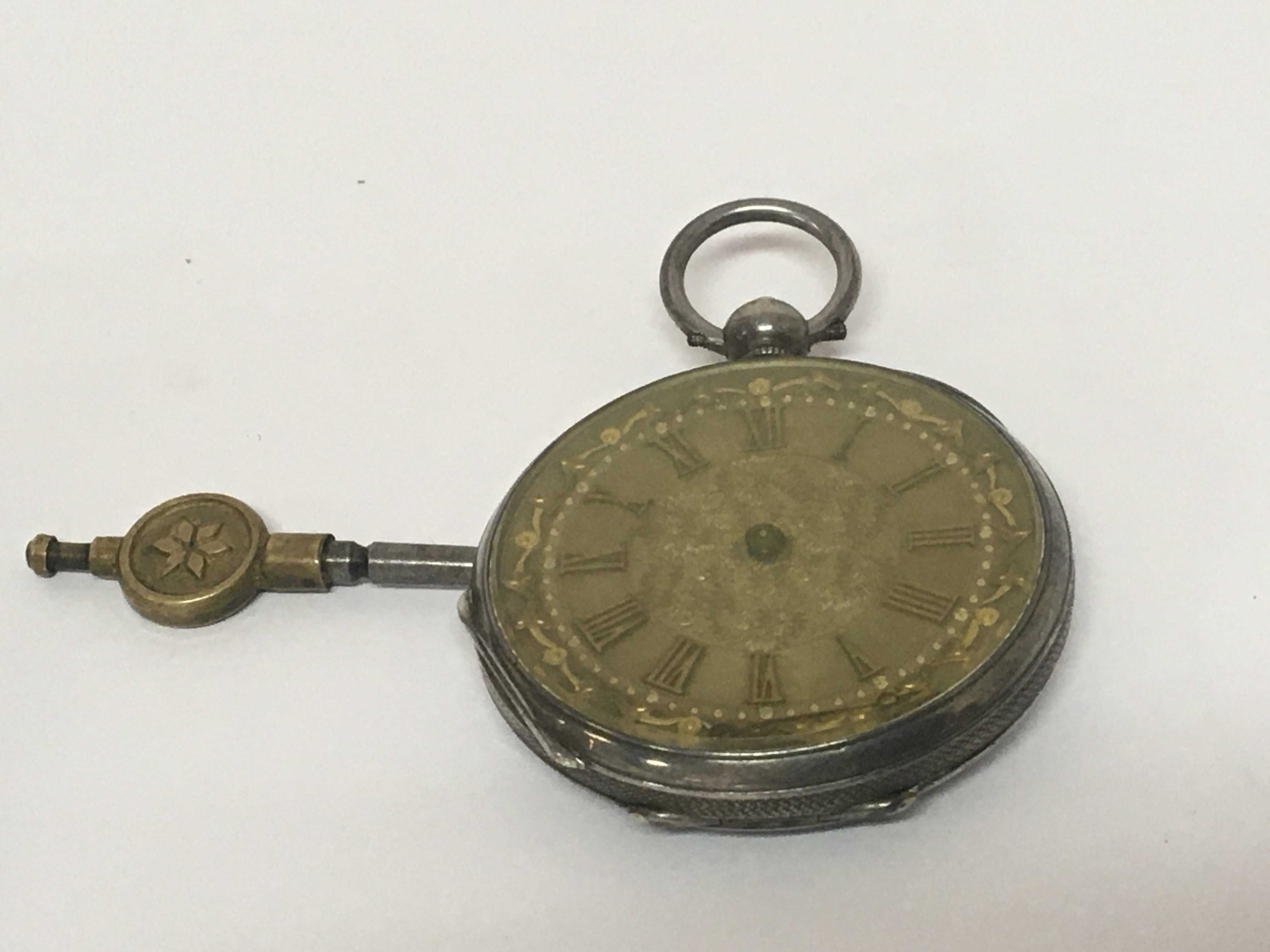 A silver cased key wind pocket watch with a key for restoration. NO RESERVE