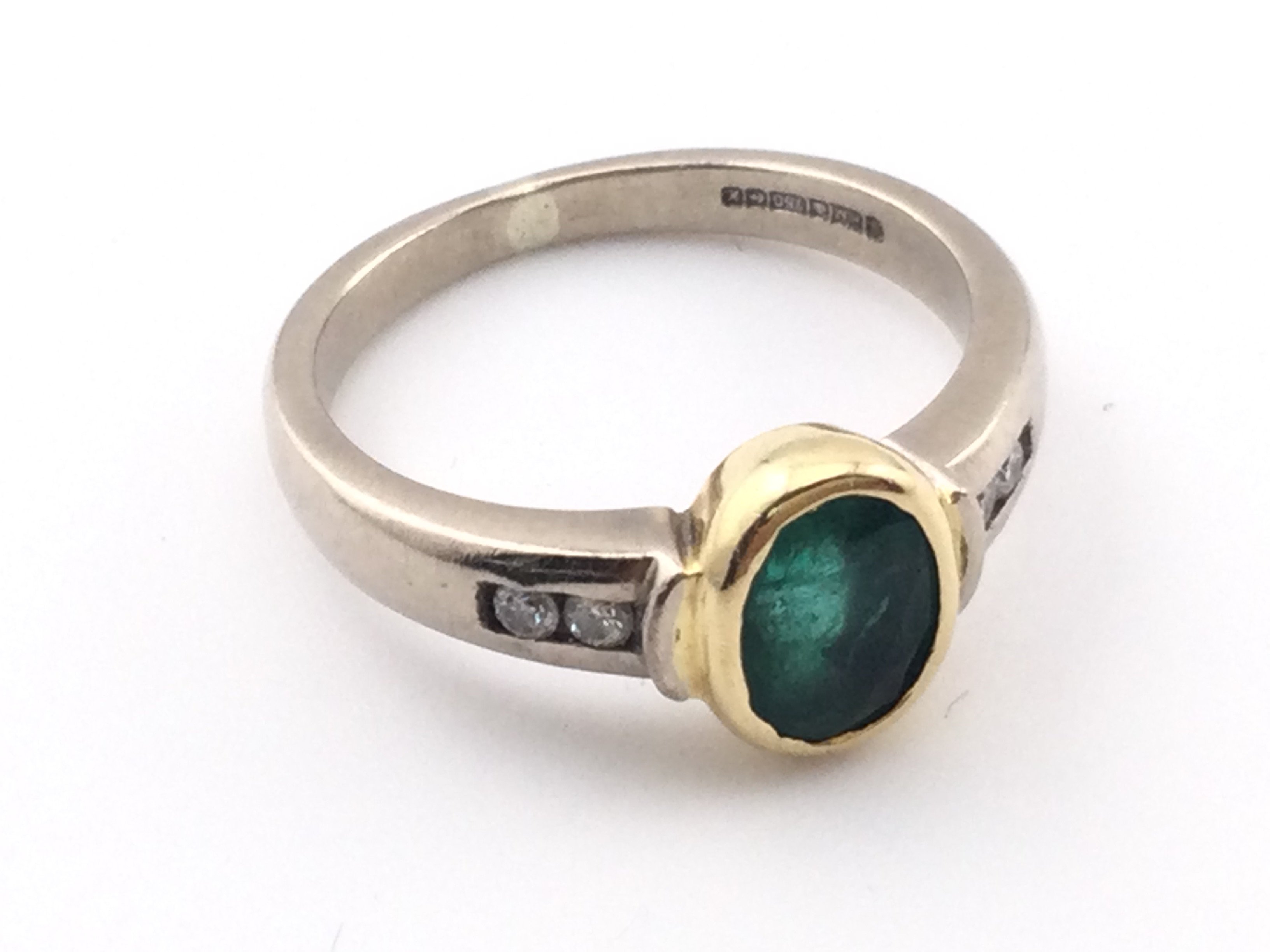 An 18k ring set with central emerald. Size N and 5.53gPostage A