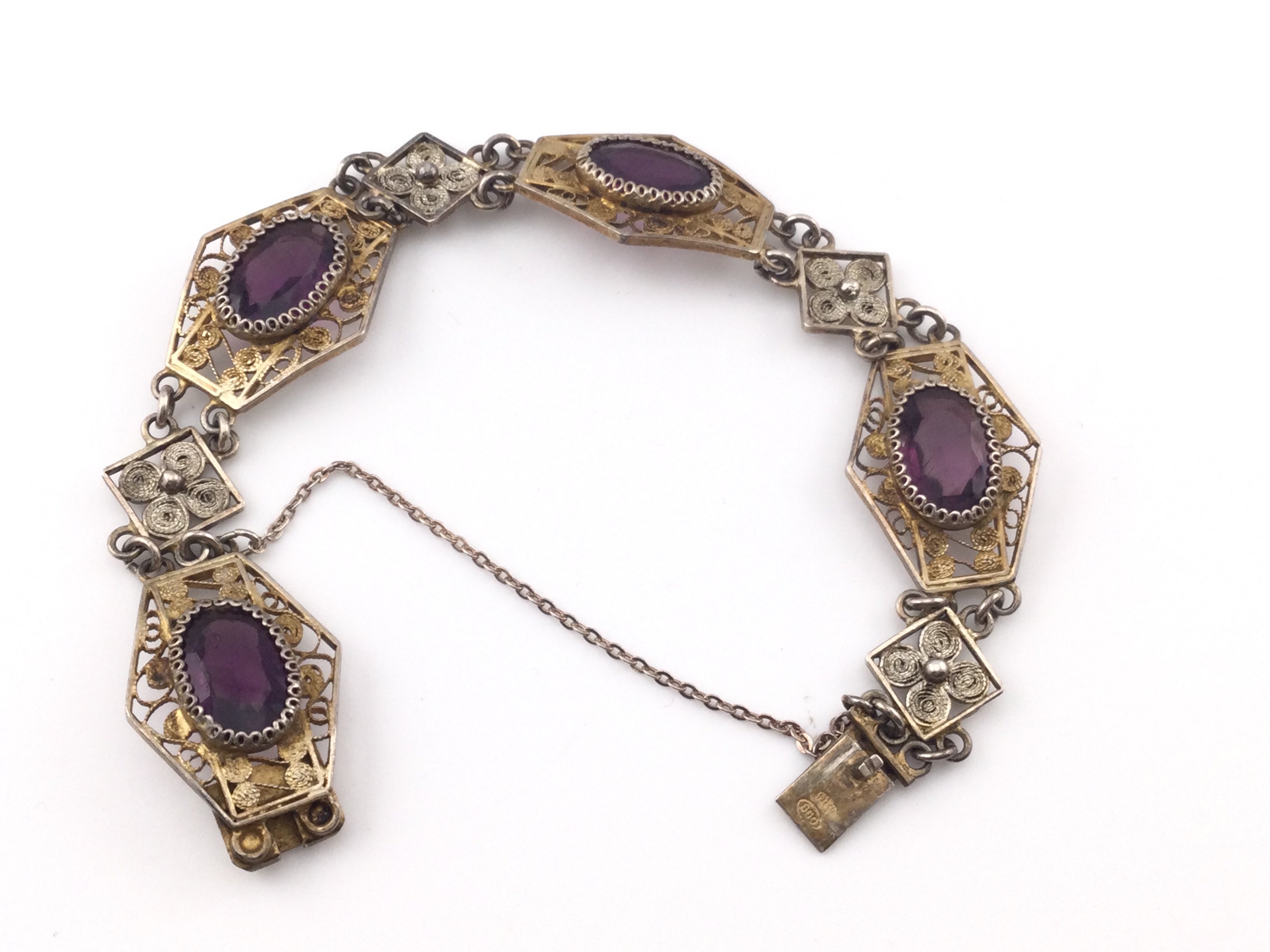 An Edwardian style silver bracelet set with purple stones. Postage A. NO RESERVE