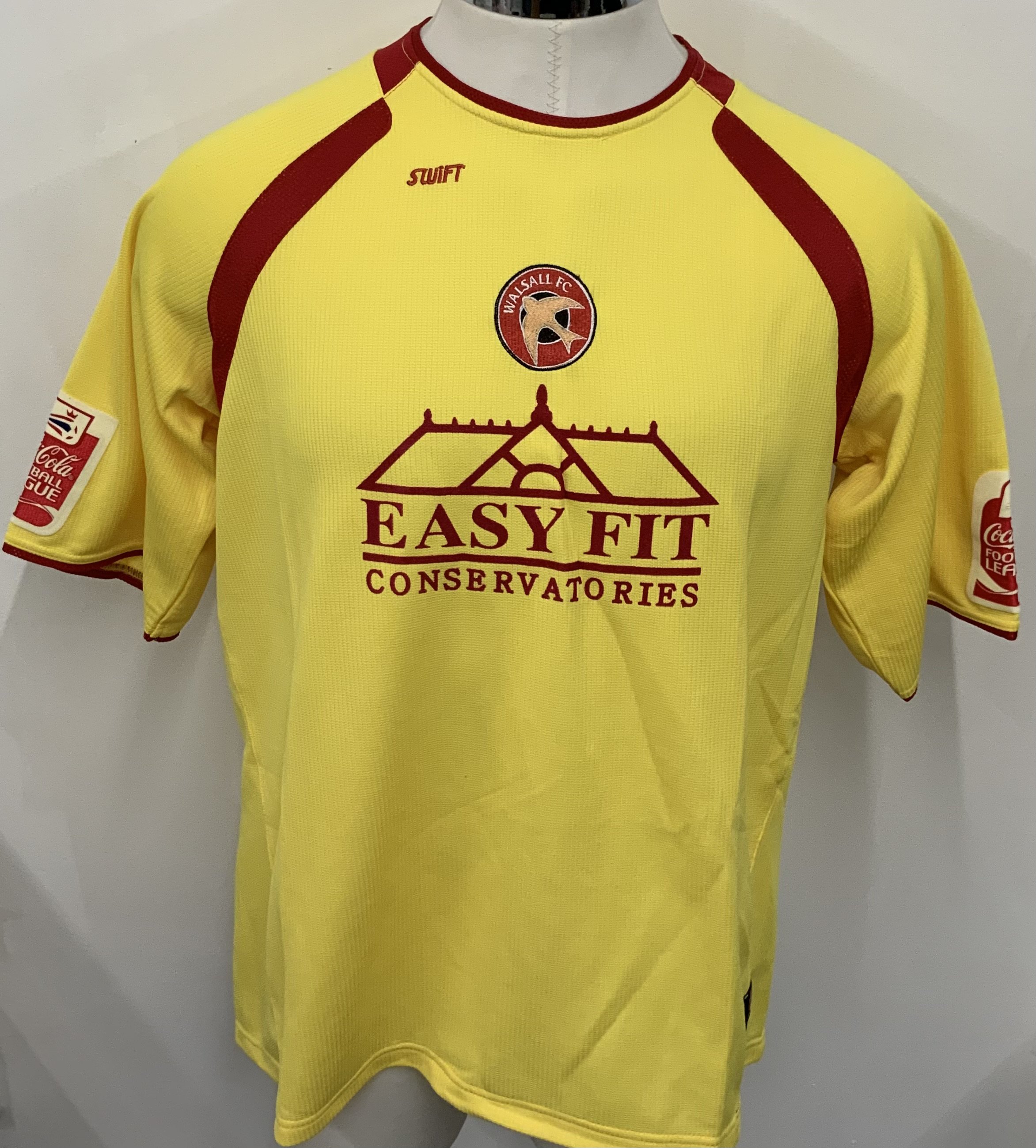 Walsall 2008 - 2009 Match Worn Football Shirt: Yellow short sleeve Easy Fit sponsored shirt with Coca Cola Football League badging to arms. Number 15 Brown to rear.