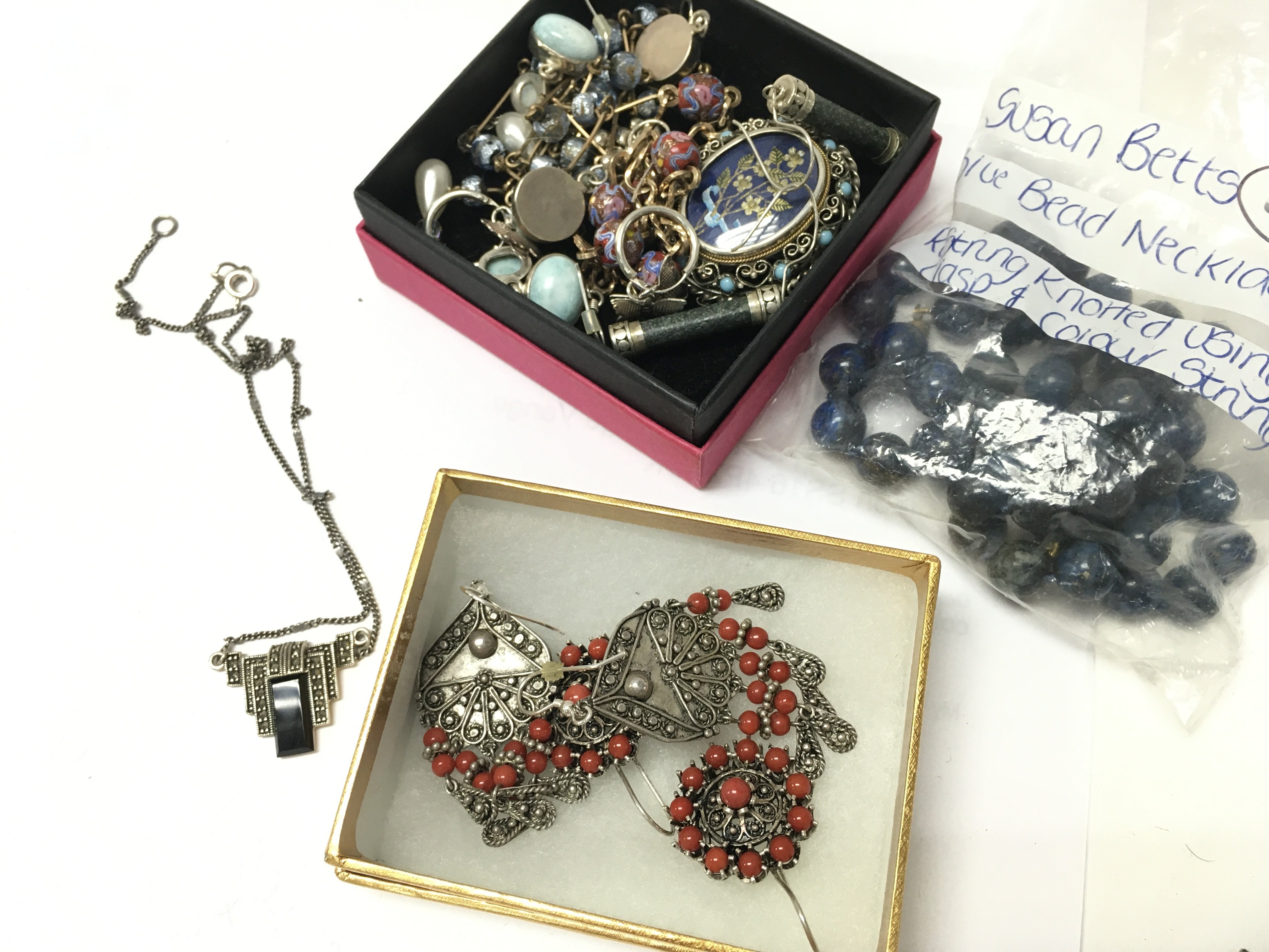 A Collection of costume jewellery including a bead necklace, silver earrings, silver necklace etc. postage category B. NO RESERVE