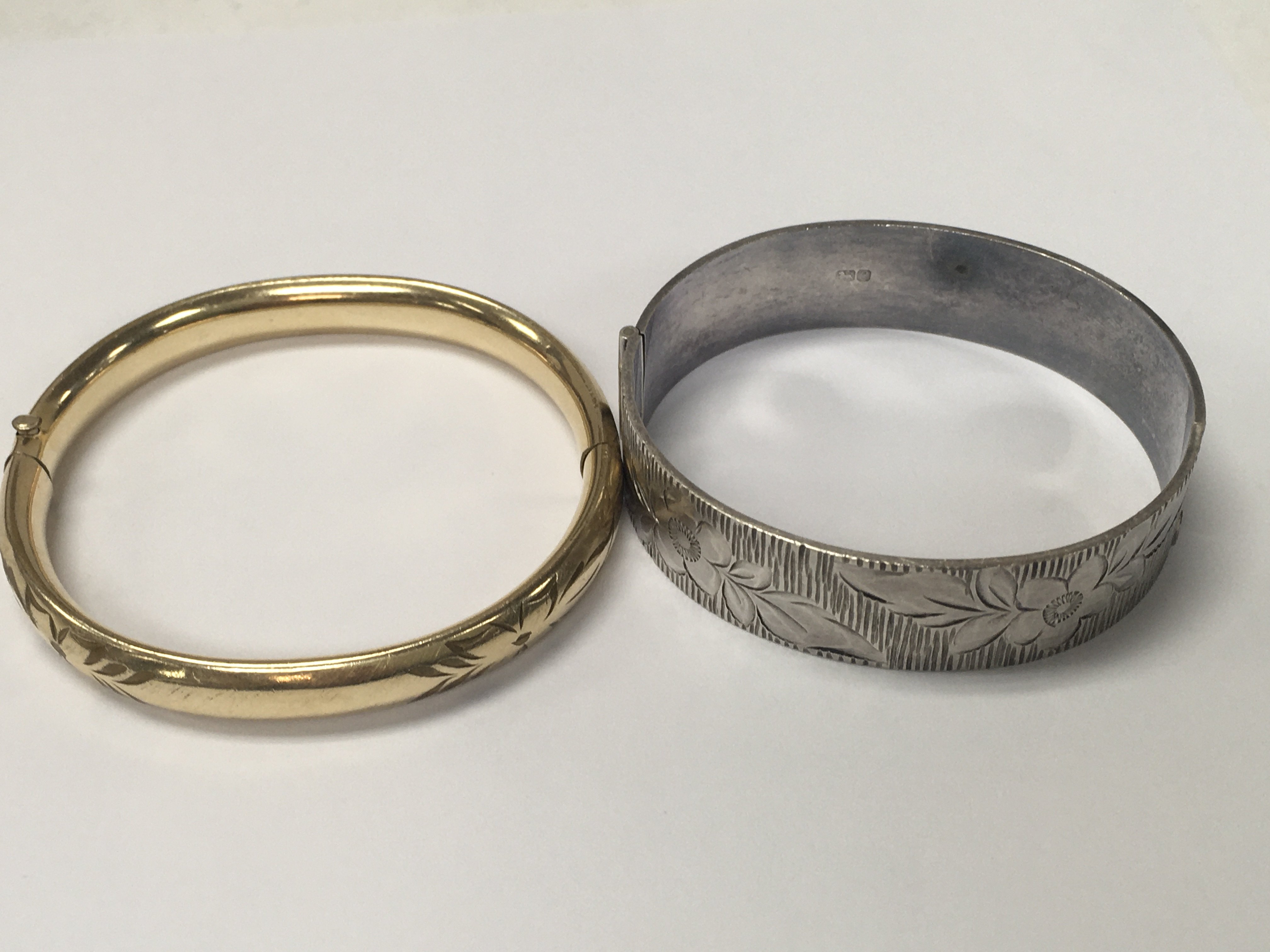 A silver bangle and gold plated bangle. NO RESERVE