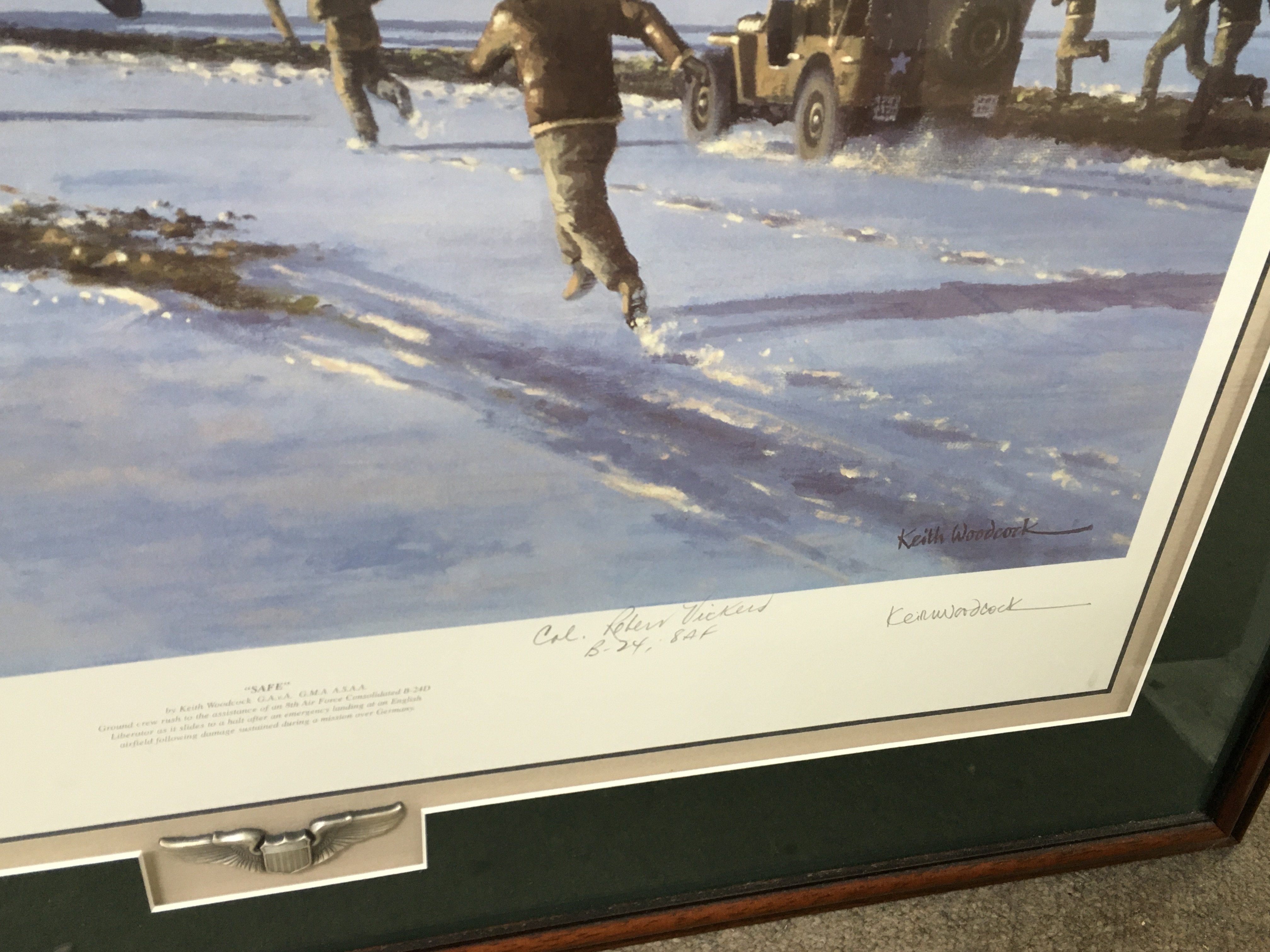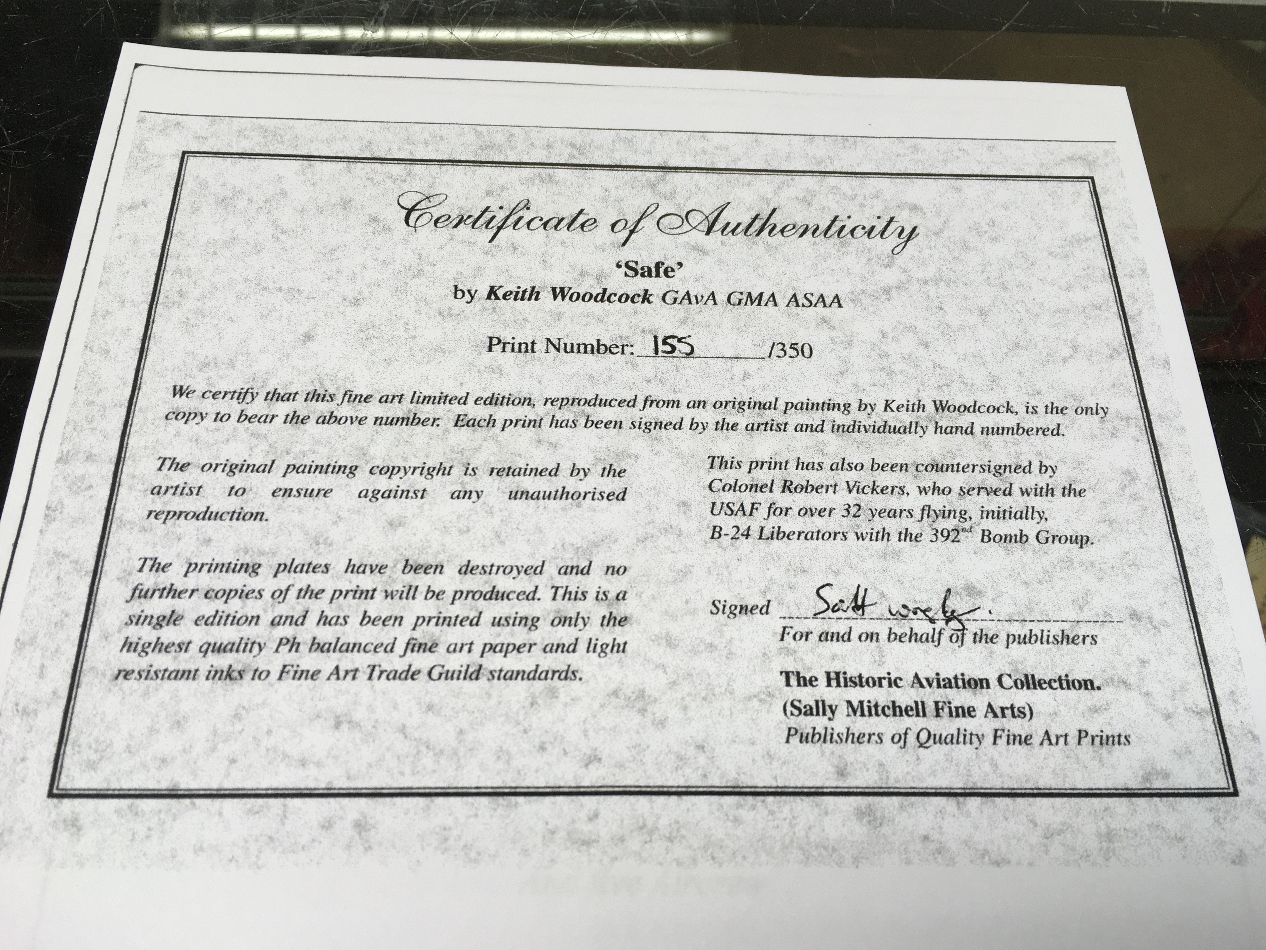 A signed limited edition print titled safe by Keith Woodcock and Colonel Robert Vickers. In a conservation frame with COA. 83 by 61cm Postage D