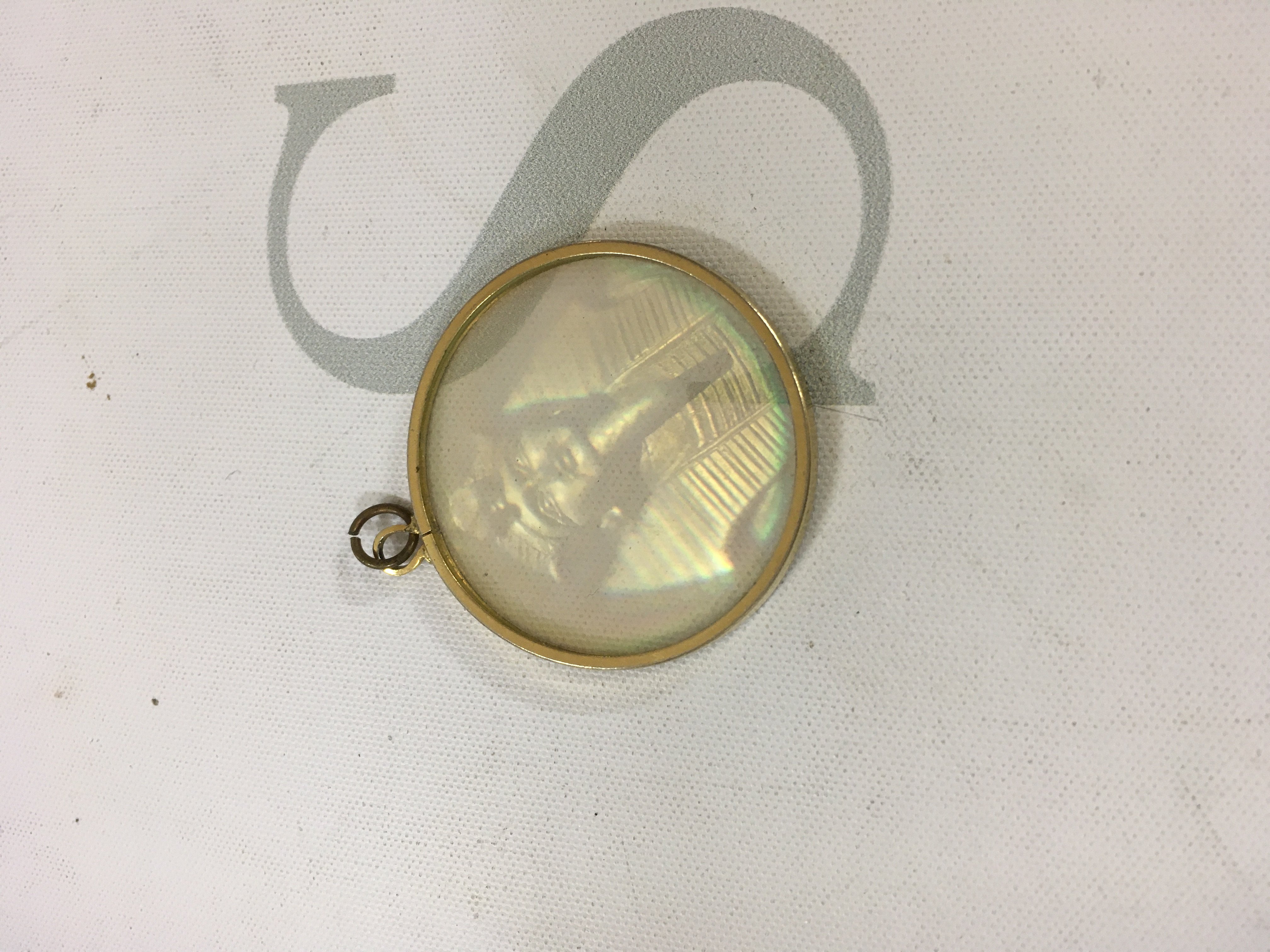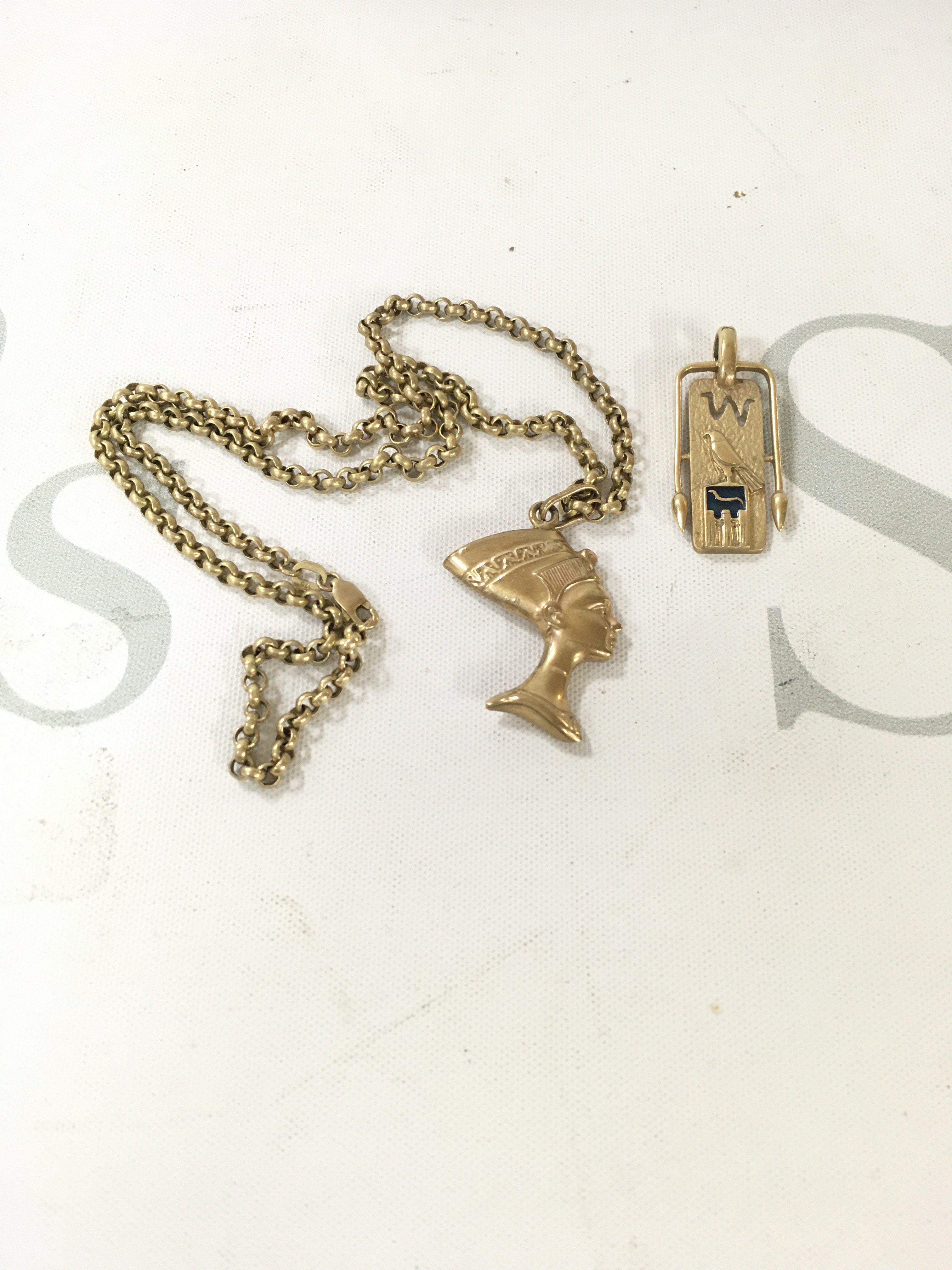 Two 9ct gold Egyptian pendants and a 9ct gold belcher chain with a yellow metal hologram pendant. Approx weight 10.3 grams