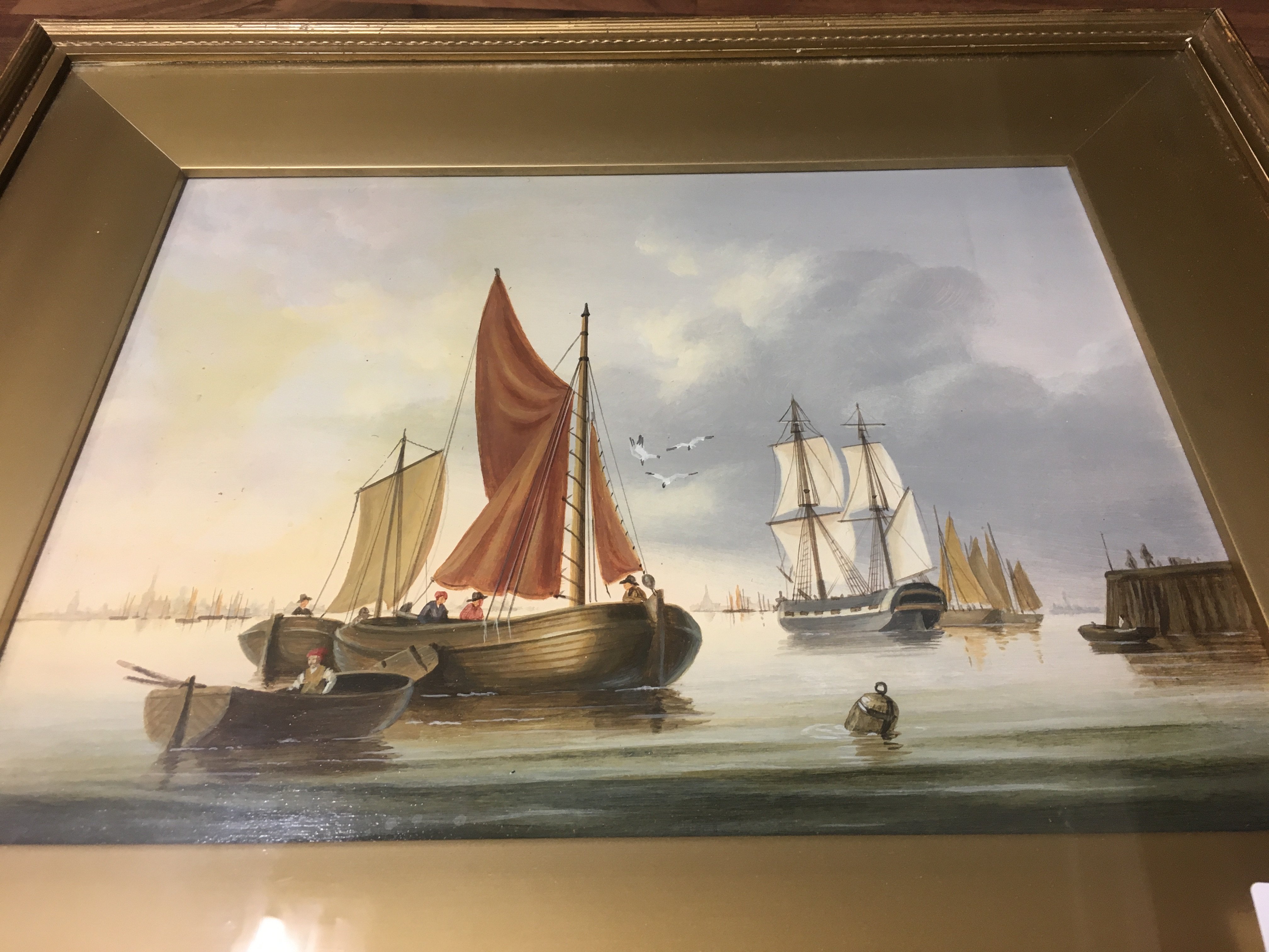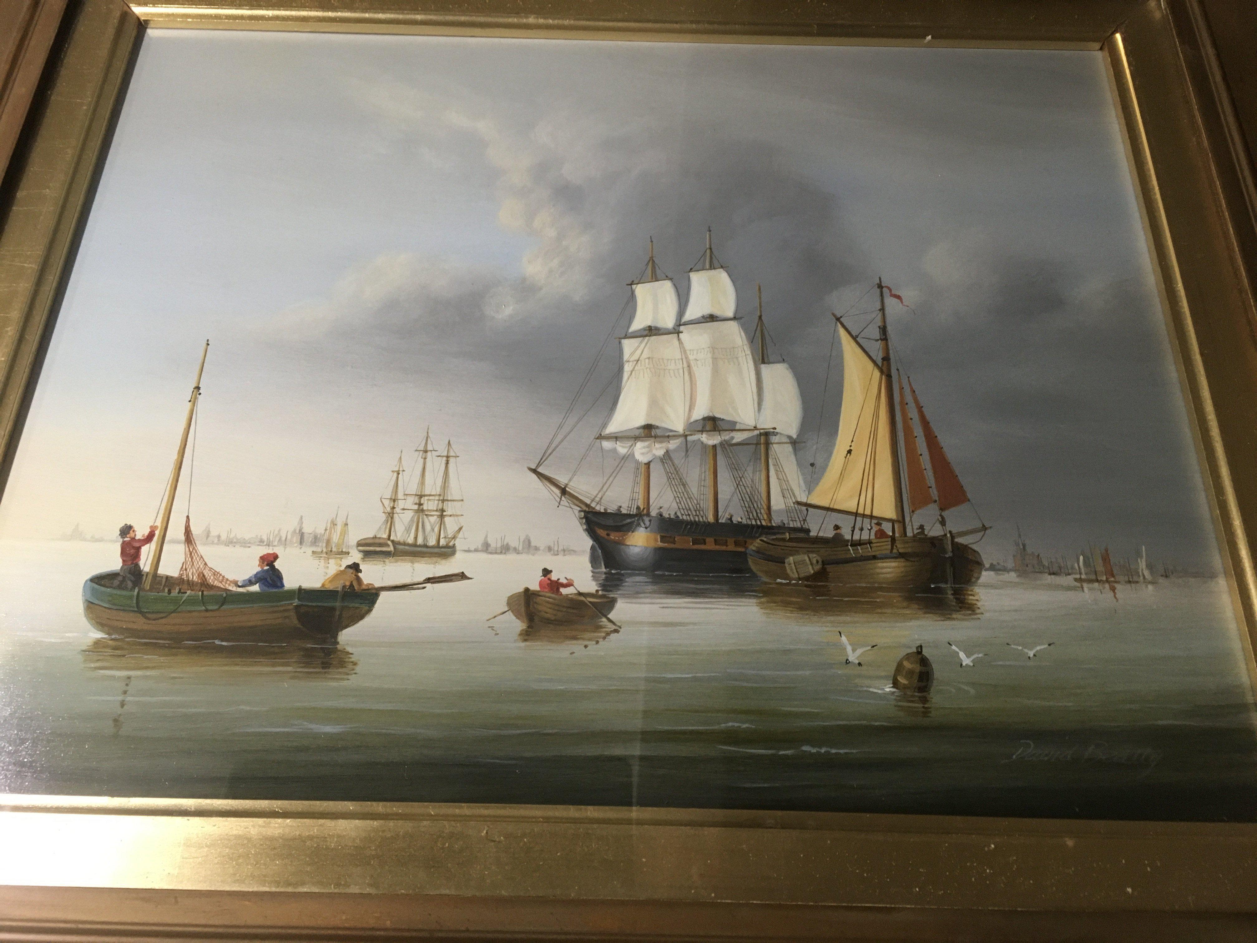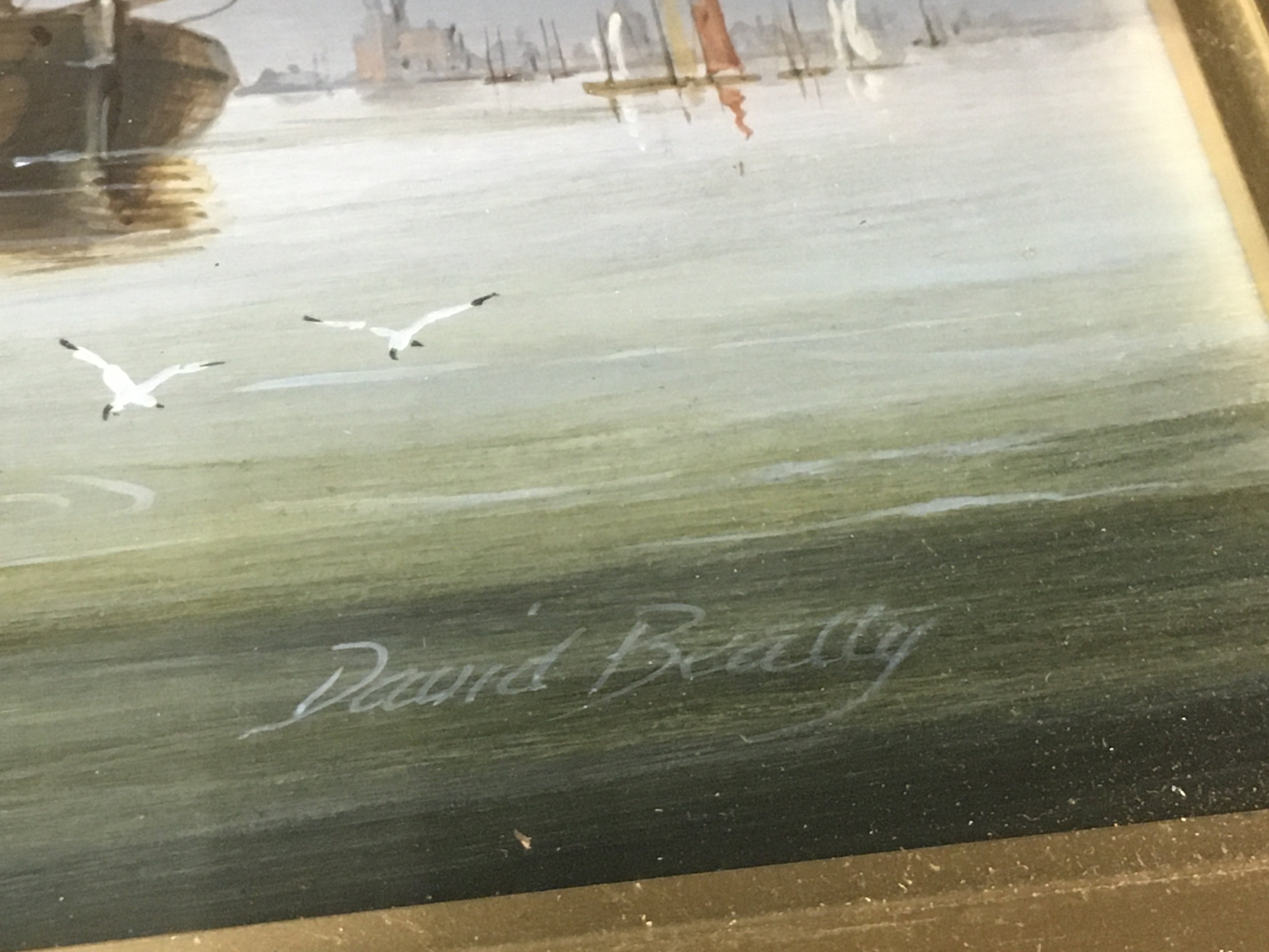 Two Gilt framed Oils sea scapes one signed David Beatty . 38 x 28 cm .