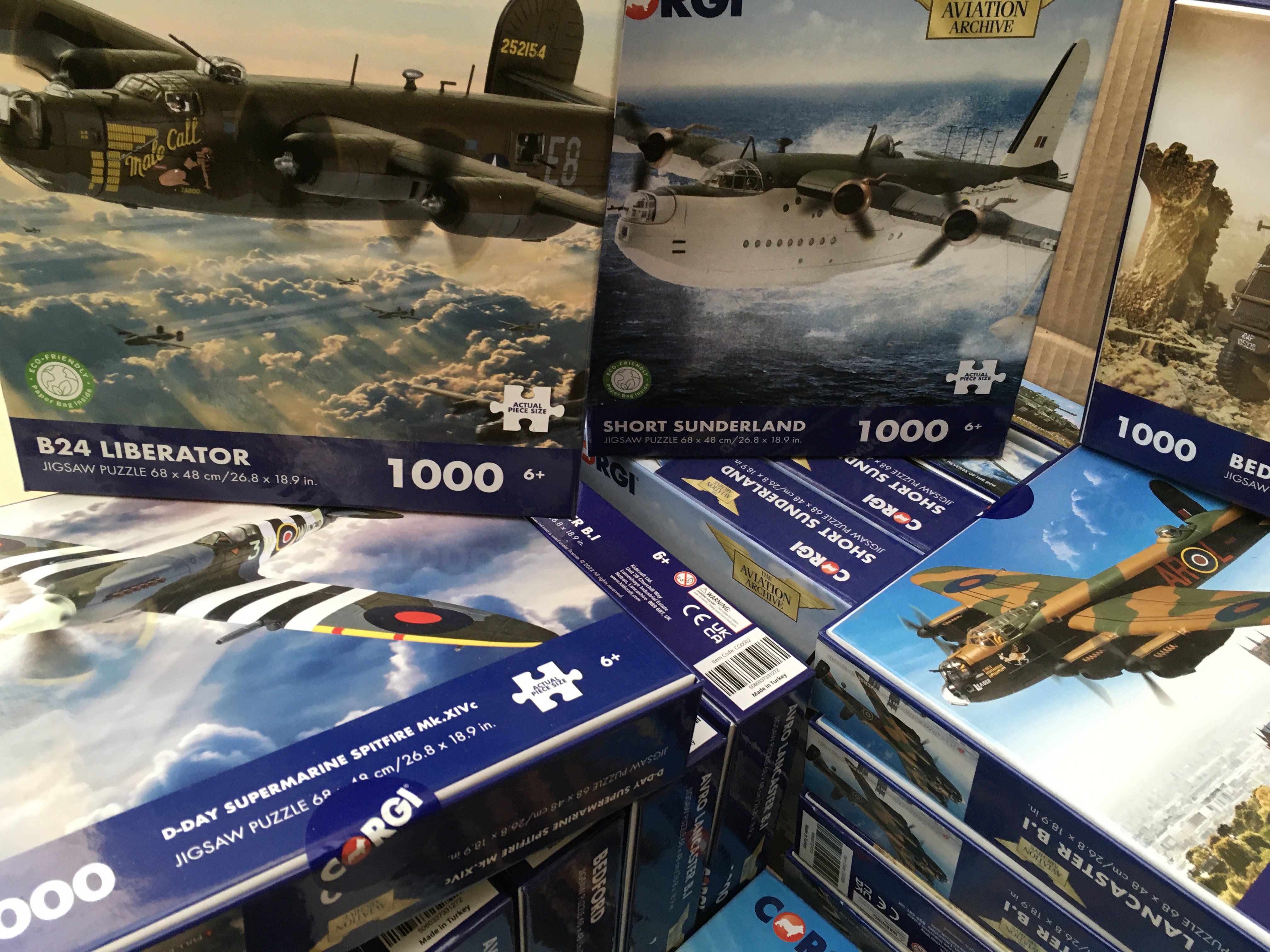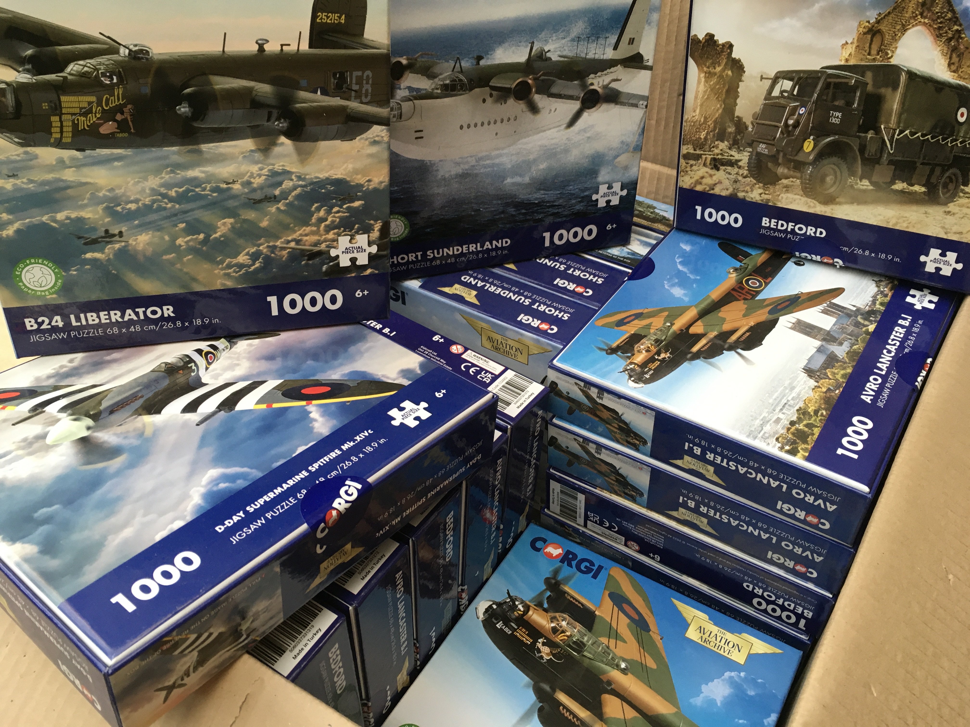 A collection in excess of 20 new unopened Corgi jigsaw 1000 piece puzzles from the aviation archive and Military Legends series. No reserve