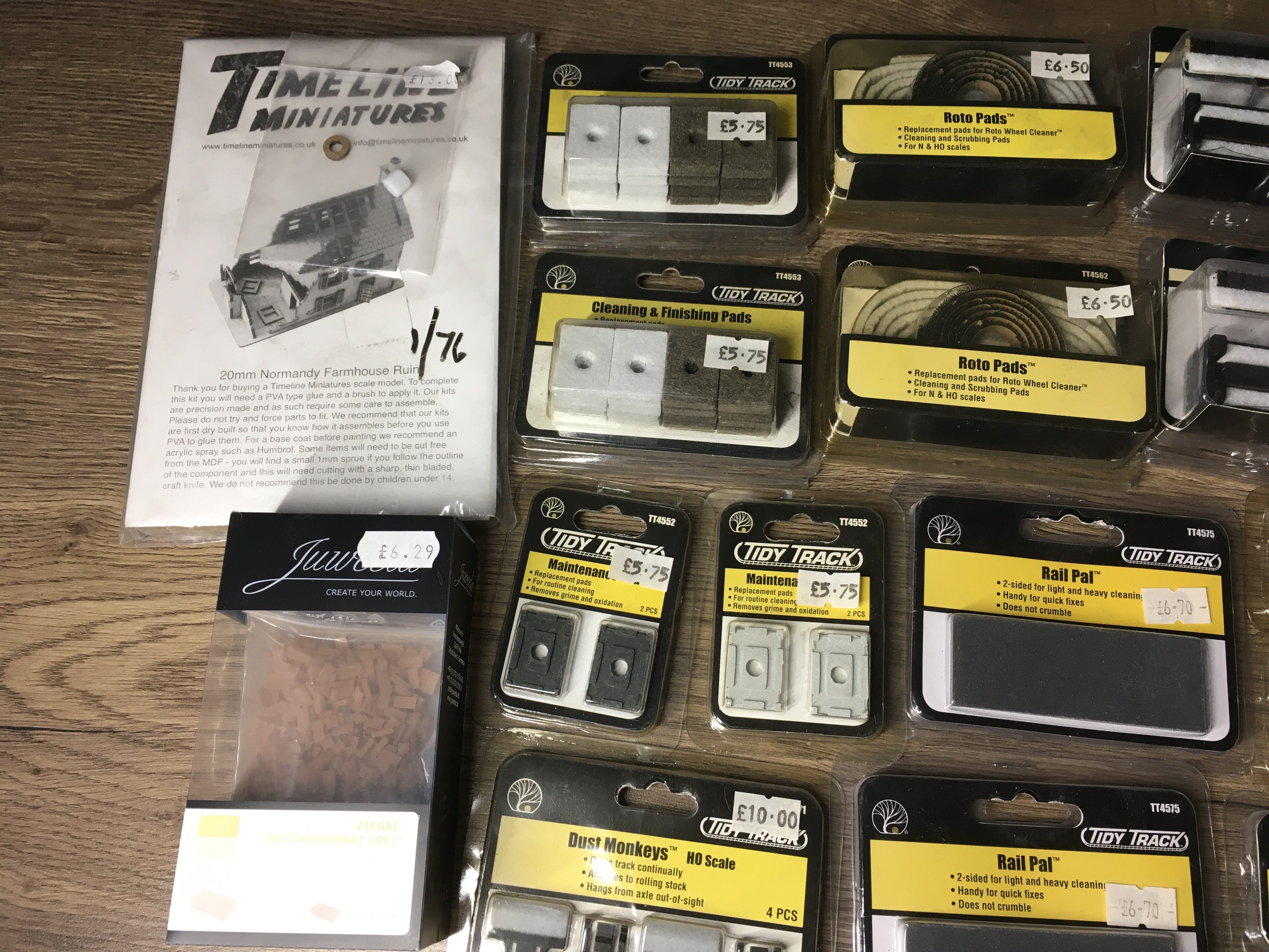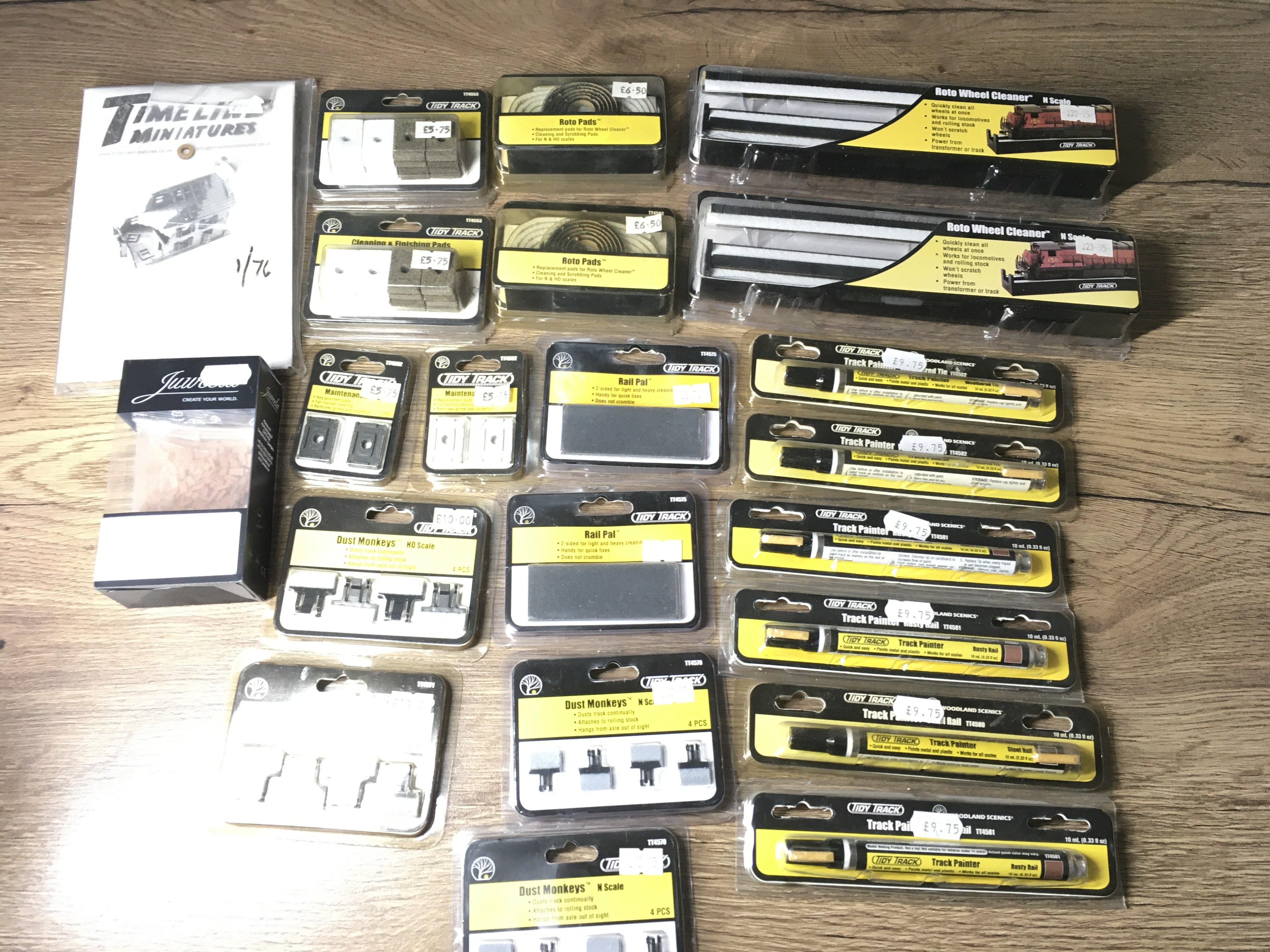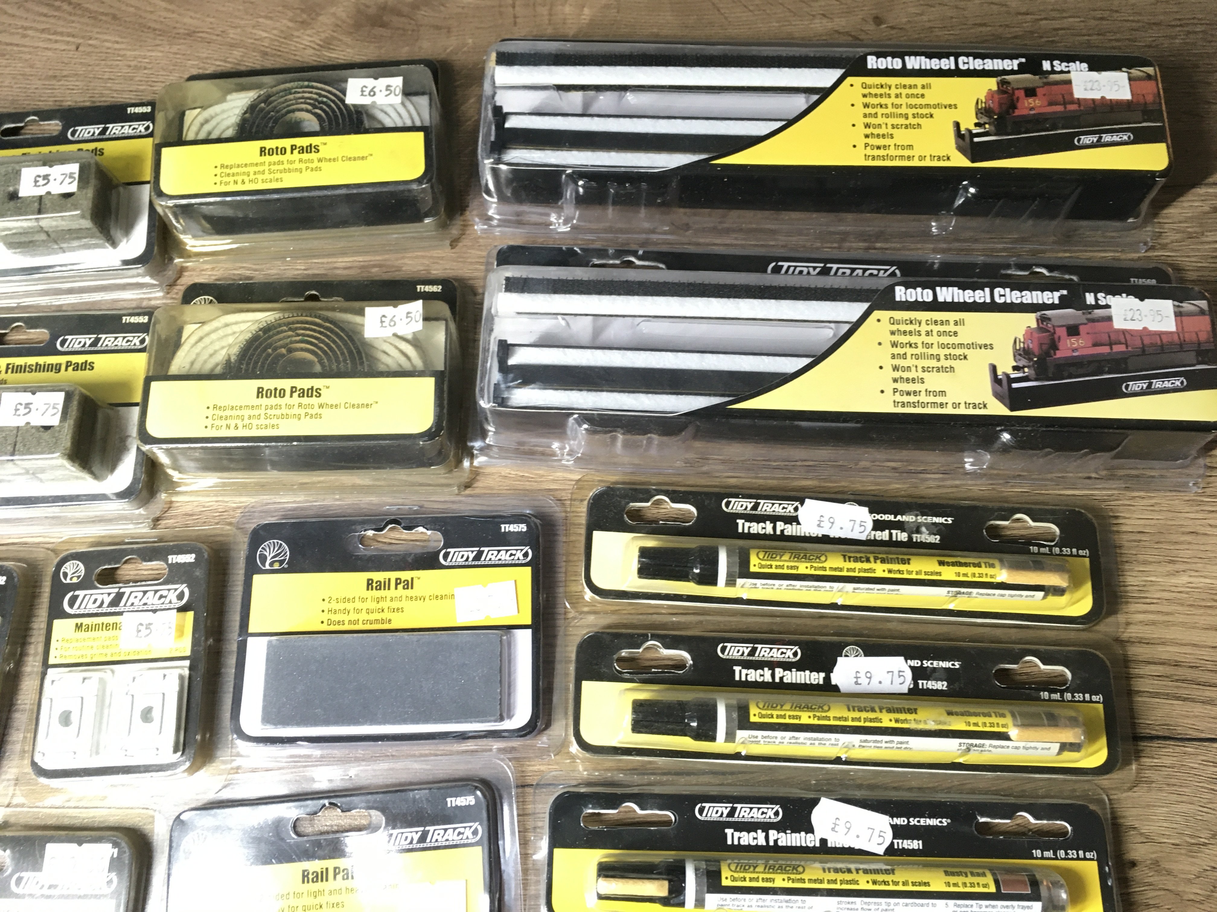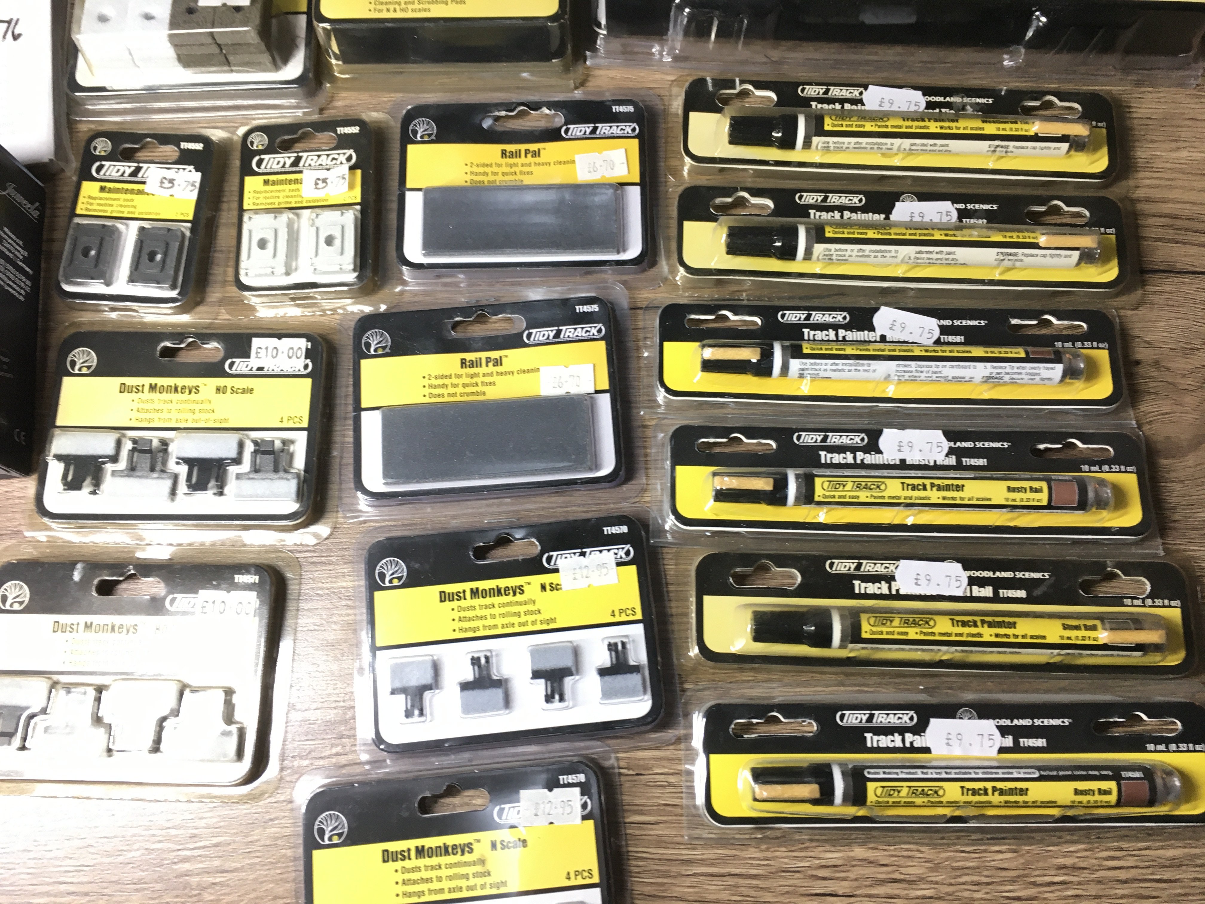 A collection in excess of 20 accessories for model railways by Woodland Scenics Tidy Track range includes Roto Wheel cleaner..Dust Monkey plus others. Both Ngauge and HO. No reserve