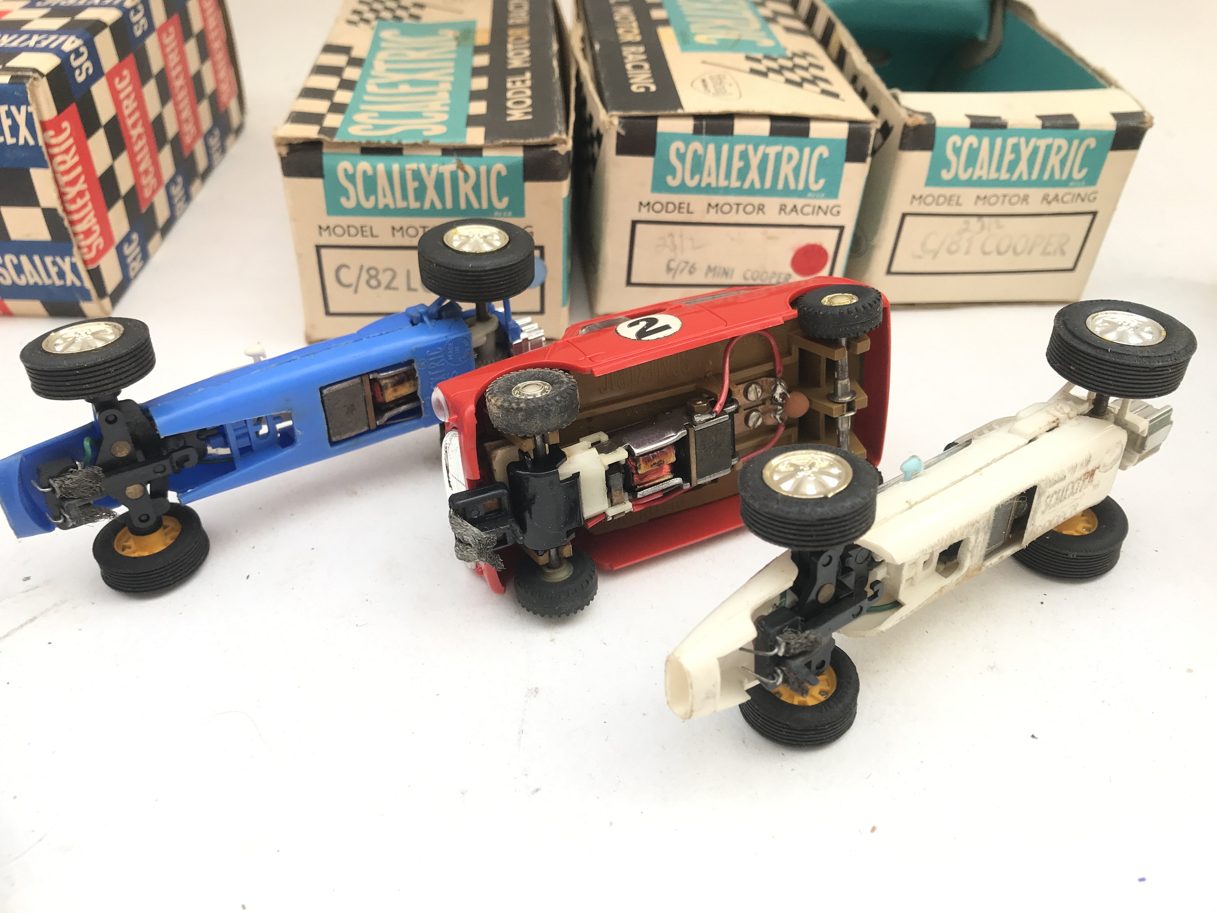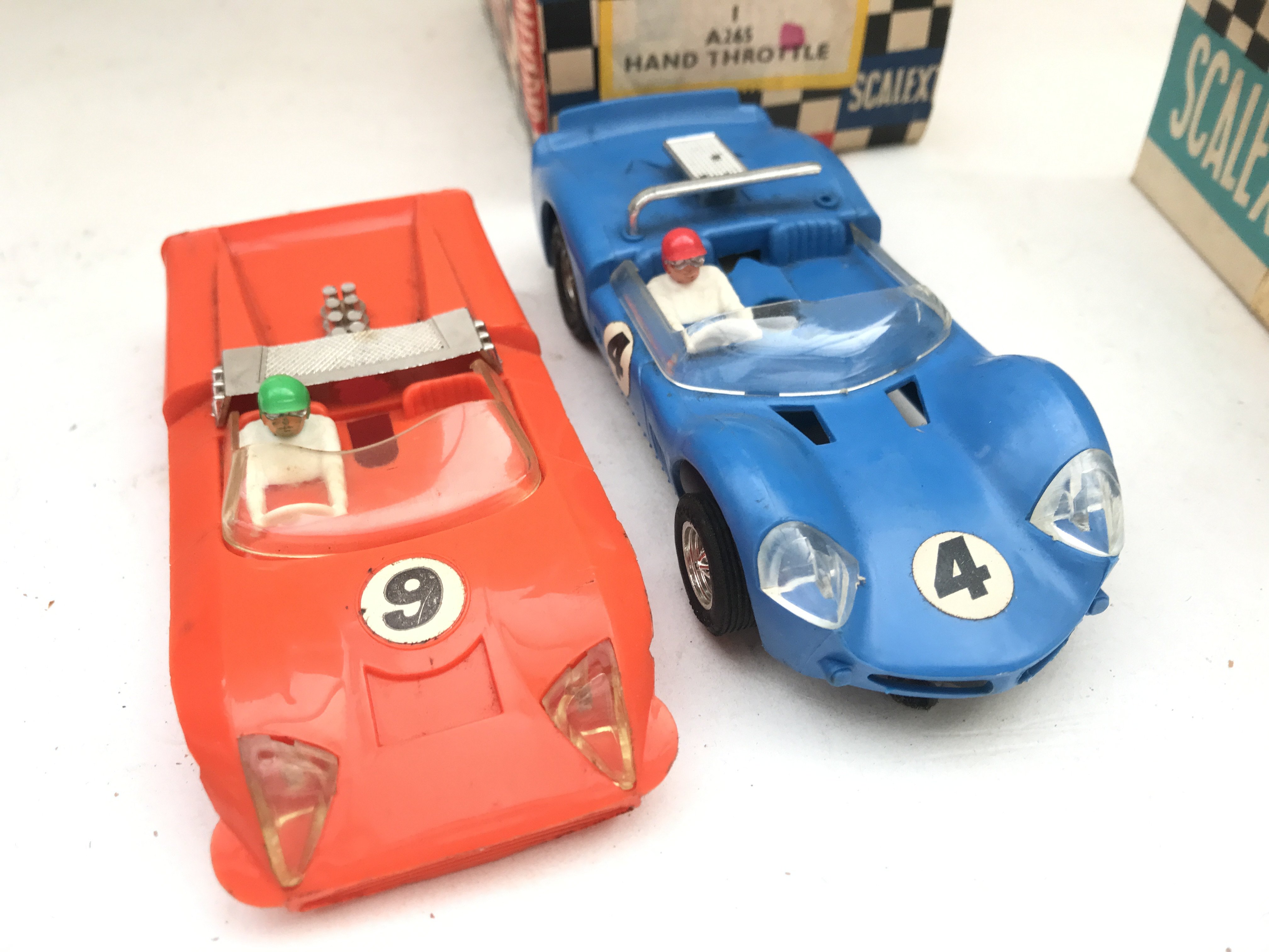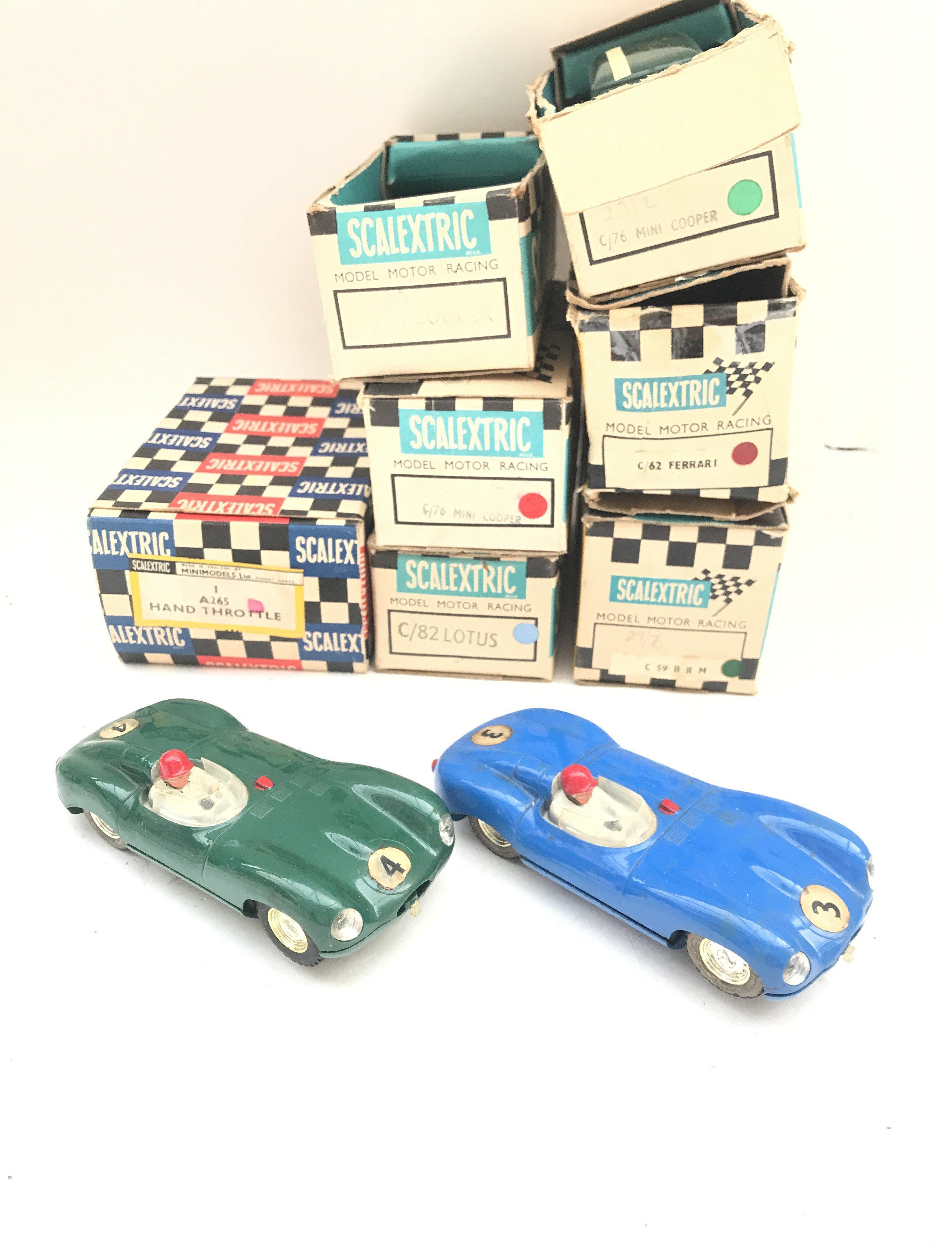 A Collection of Vimtage Scalextric Cars. Some Boxed. And Buildings.