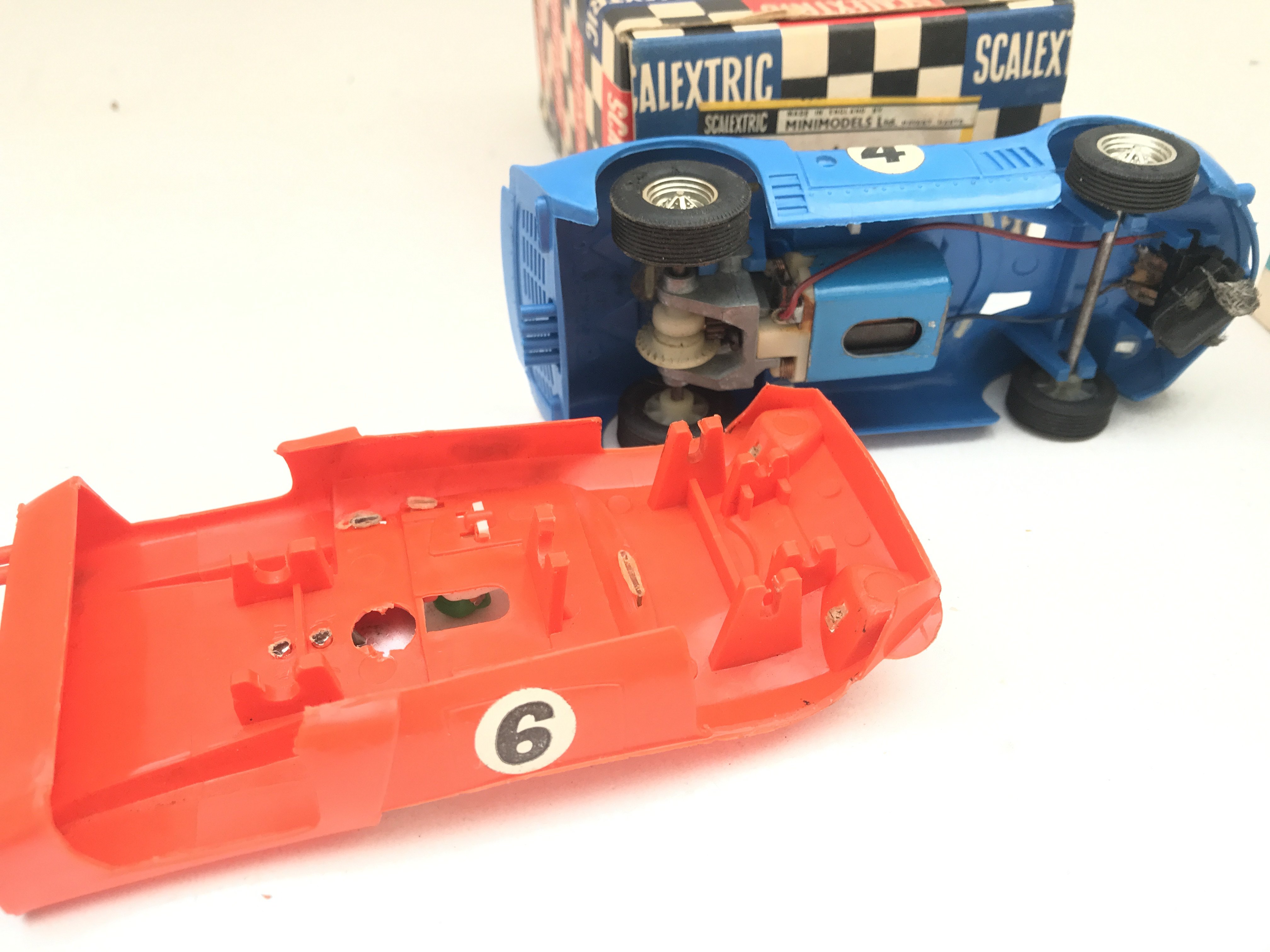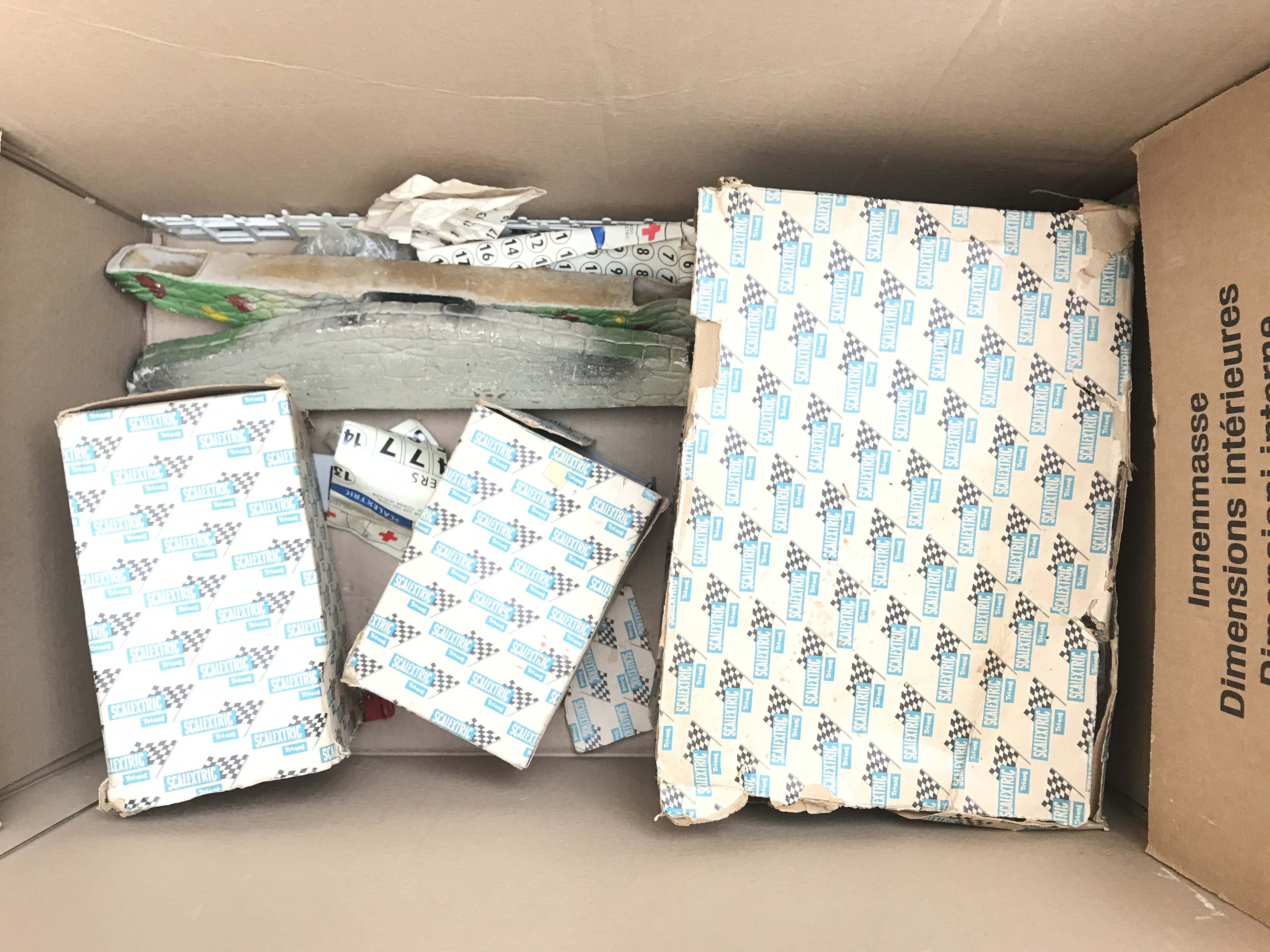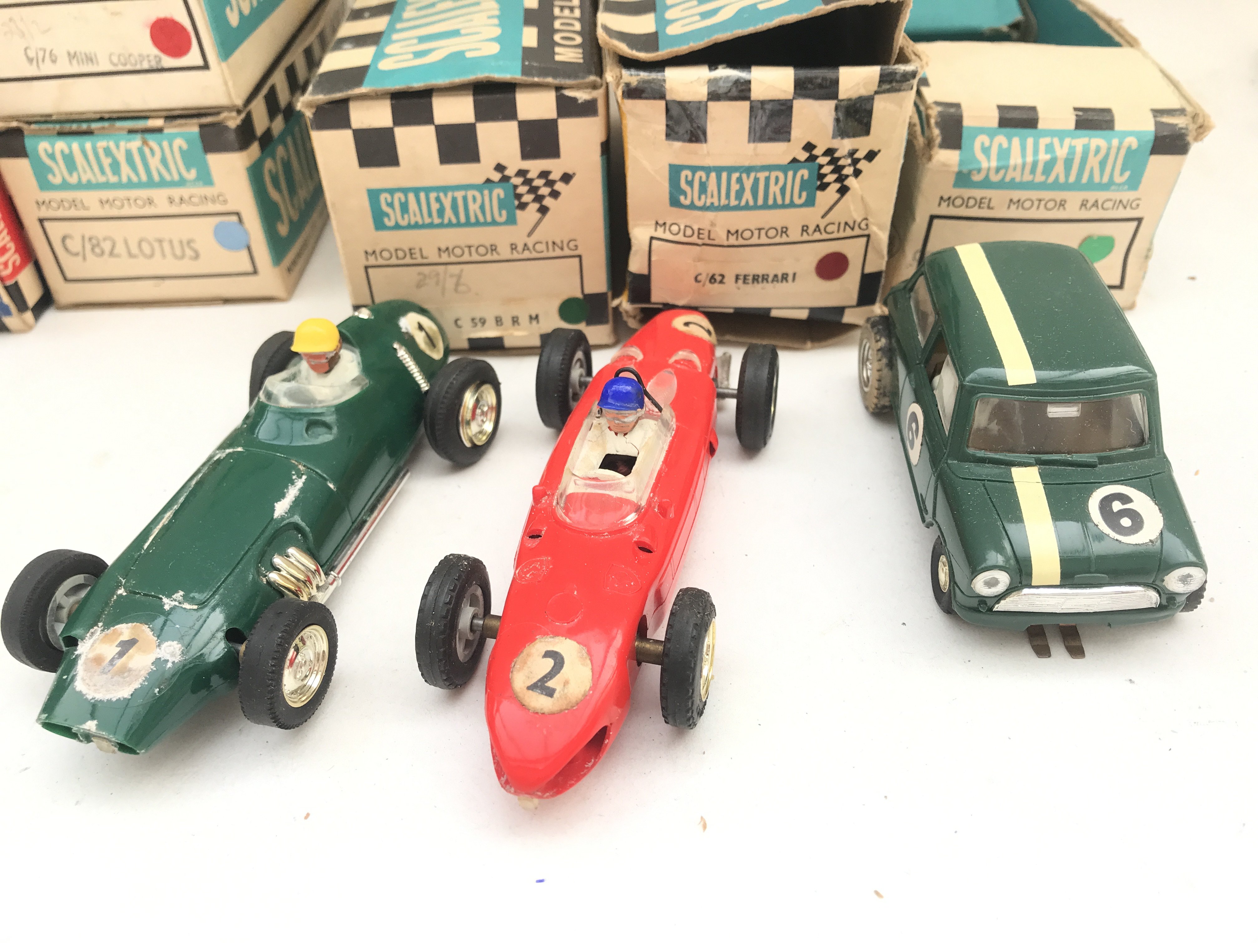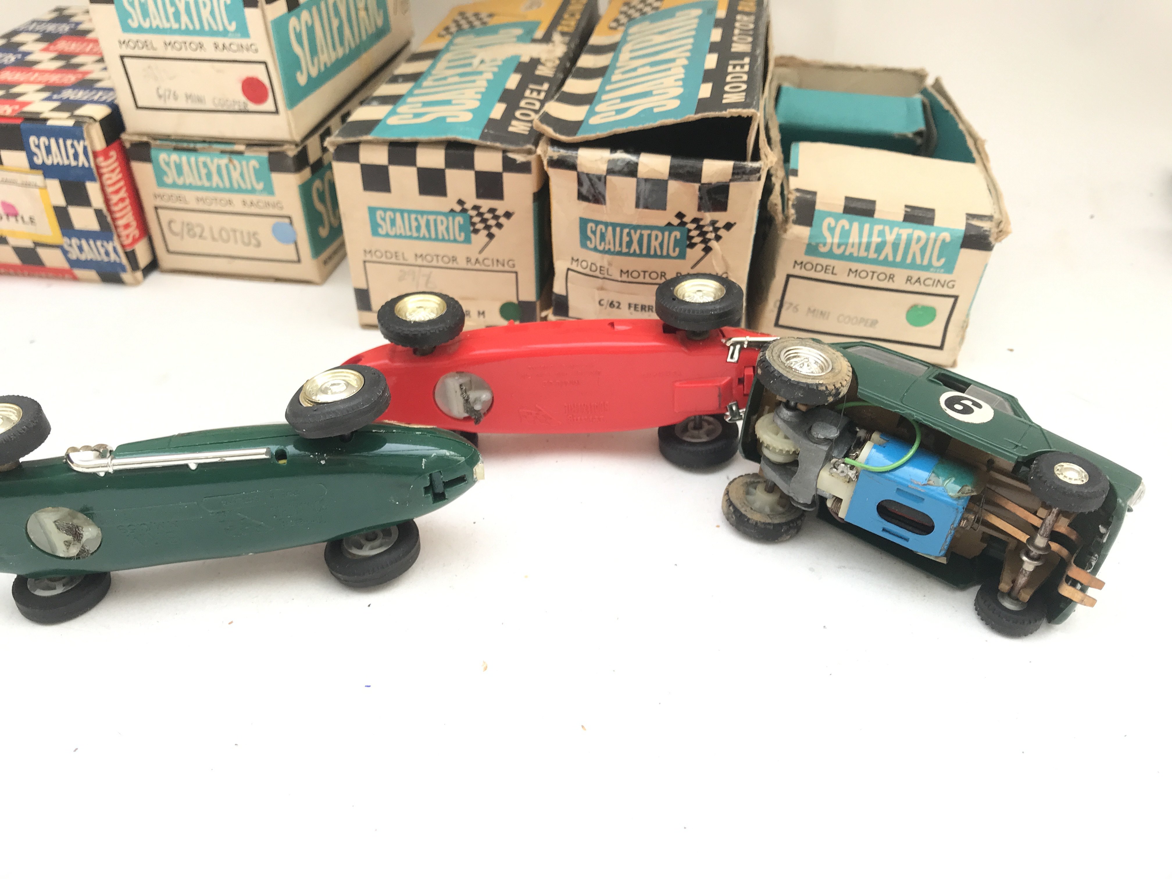 A Collection of Vimtage Scalextric Cars. Some Boxed. And Buildings.