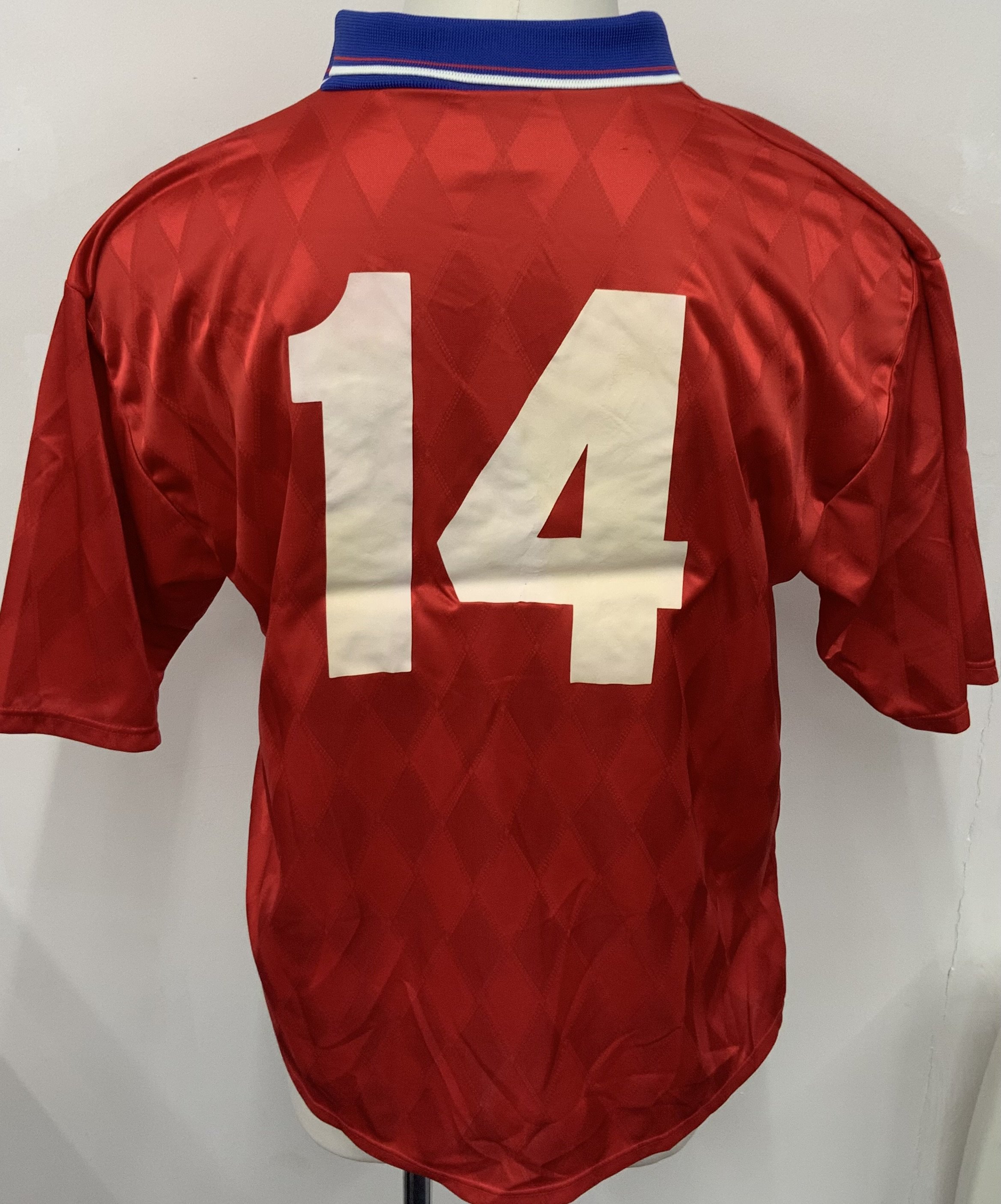 Brighton 1998 - 1999 Match Worn Football Shirt: Red Donatello sponsored number 14 short sleeve shirt.