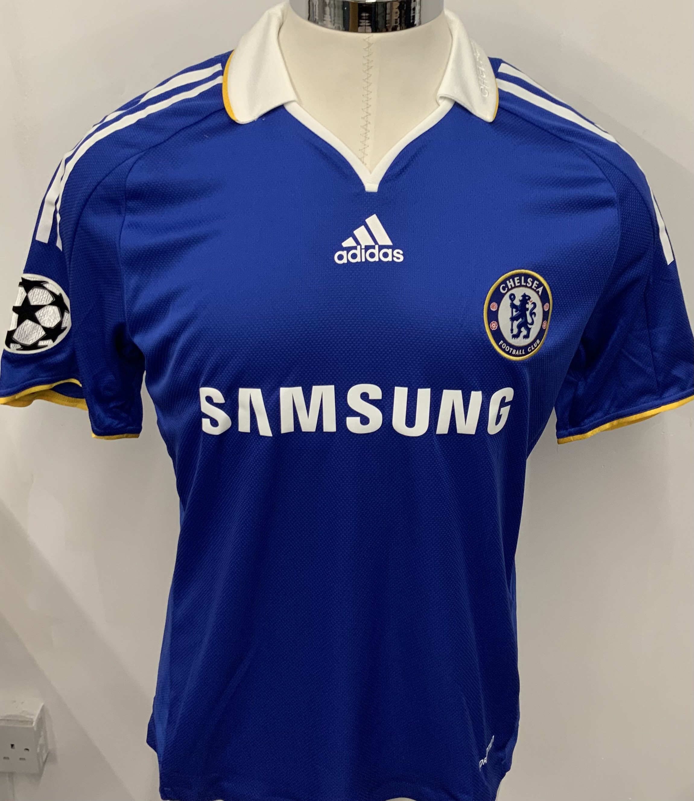 Chelsea 2008 - 2009 Match Issued Football Shirt: Blue short sleeve shirt. Number 41 Essien. Champions League semi final v Liverpool