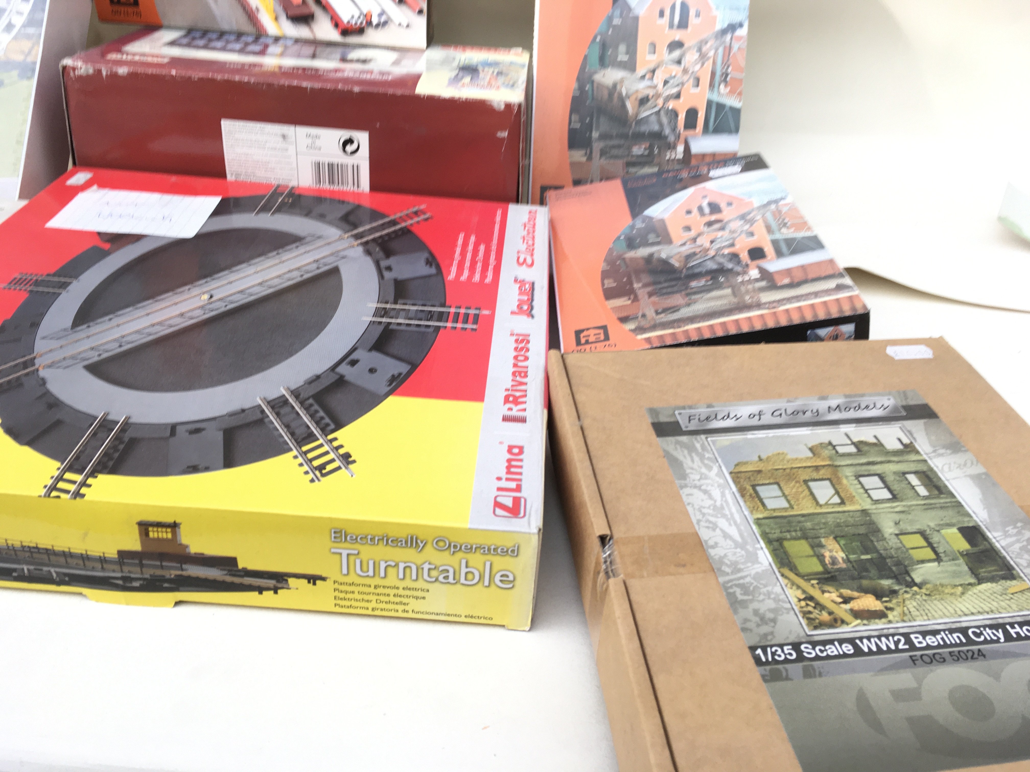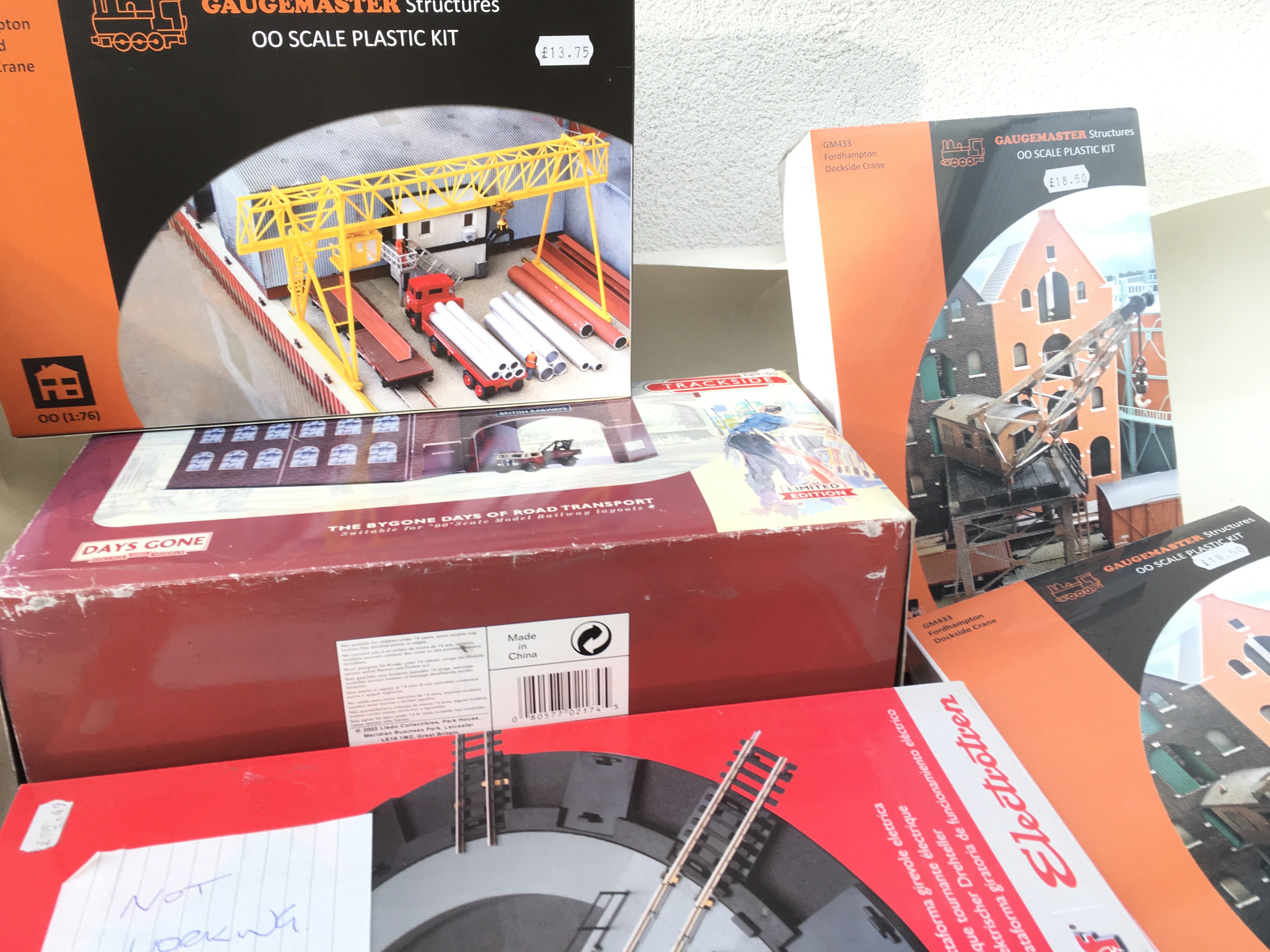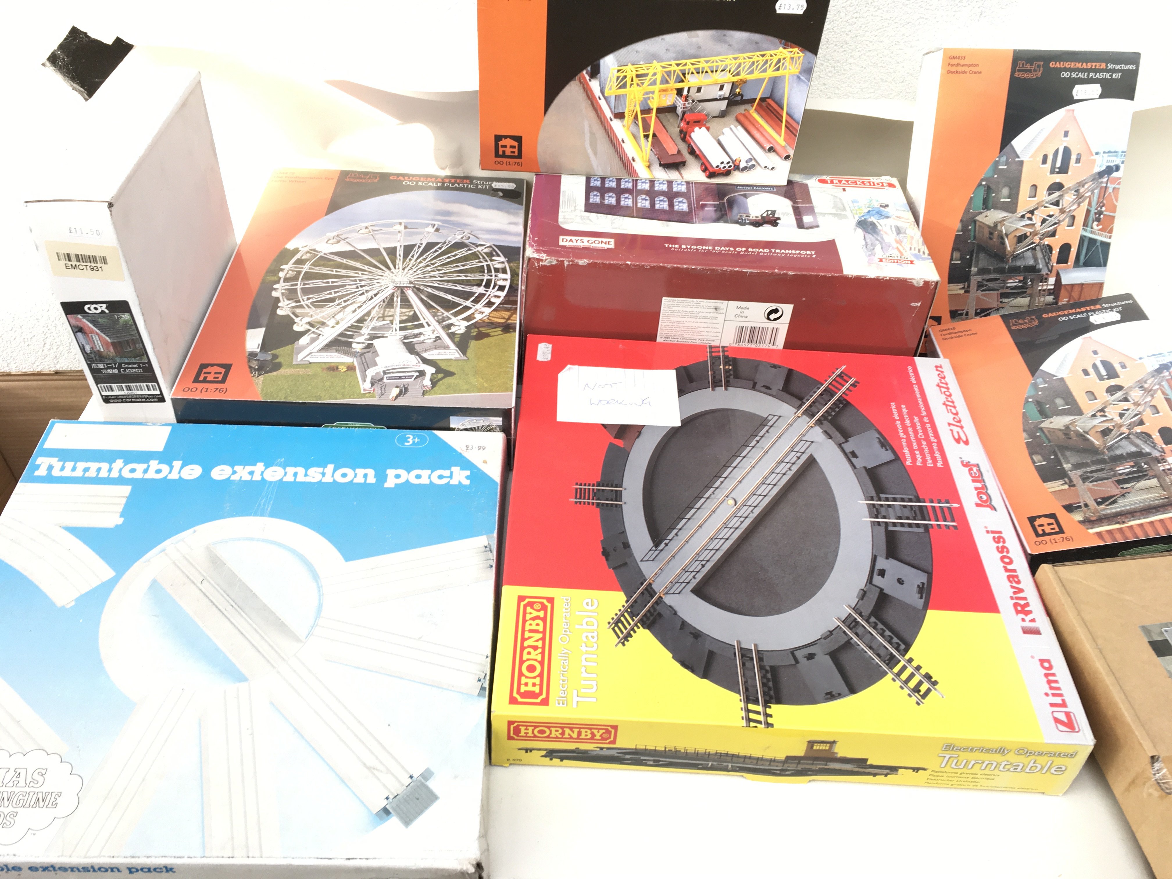 A collection of of boxed model railway accessories including track items and buildings. Manufacturers include Hornby..Gaugemaster and others mainly 00 gauge. Note Hornby turntable has a NOT WORKING note attached but has not been tested. No reserve