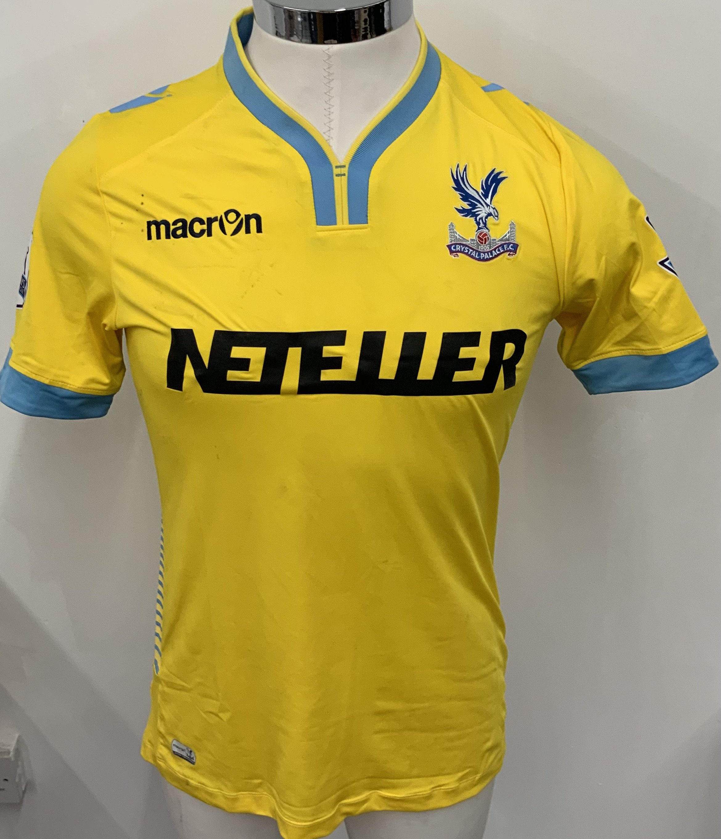 Crystal Palace 2014 - 2015 Match Worn Football Shirt: Yellow short sleeve shirt. Number 18 McArthur Premier League sleeve badging.