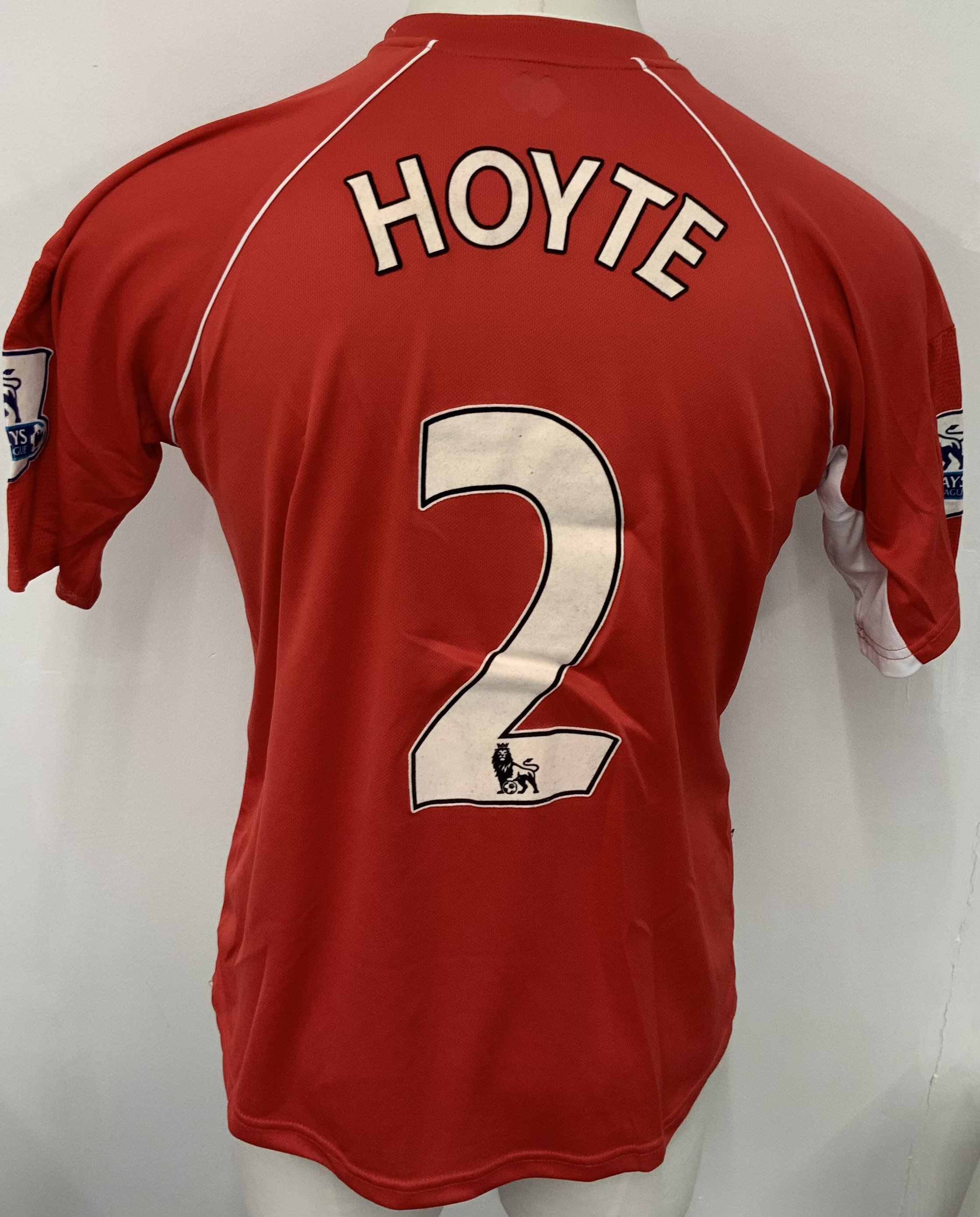 Middlesbrough 2008 - 2009 Match Worn Football Shirt: Red short sleeve shirt. Number 2 Hoyte. Premier League badging.