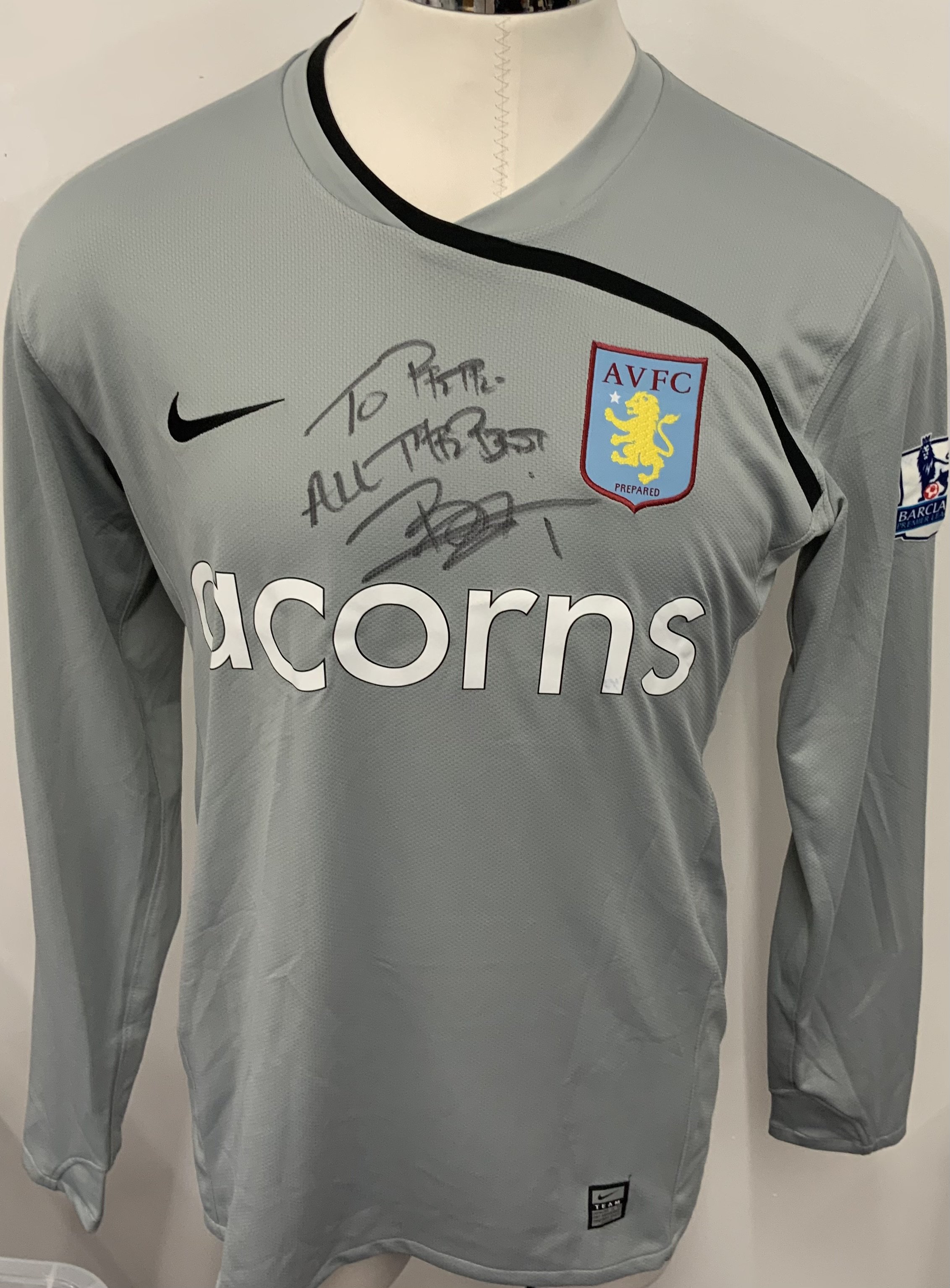 Aston Villa 2008 - 2009 Match Worn Goalkeepers Football Shirt: Grey long sleeve goalkeepers shirt. Number 1 Freidel. Premier League badging. Signed with dedication.