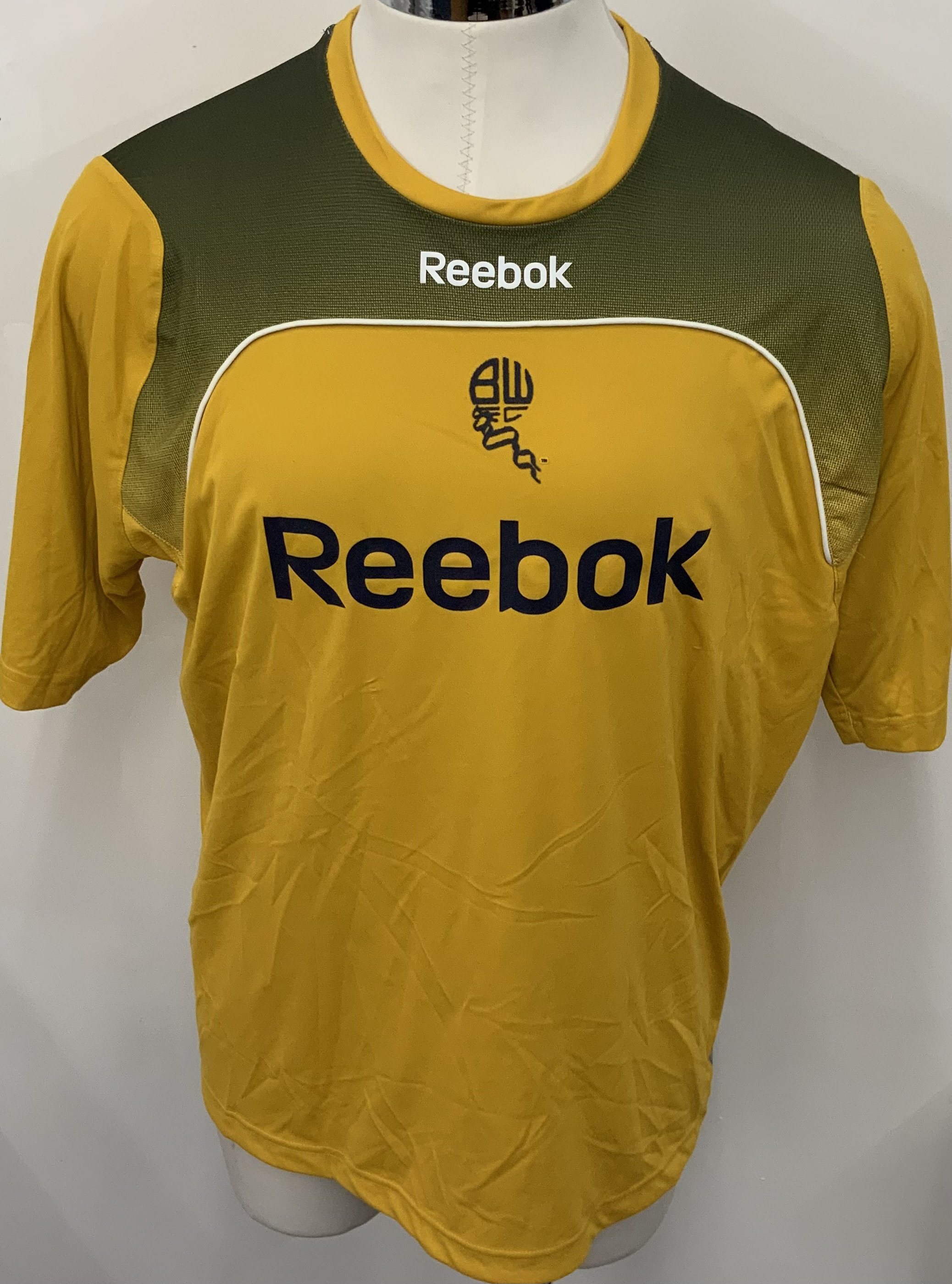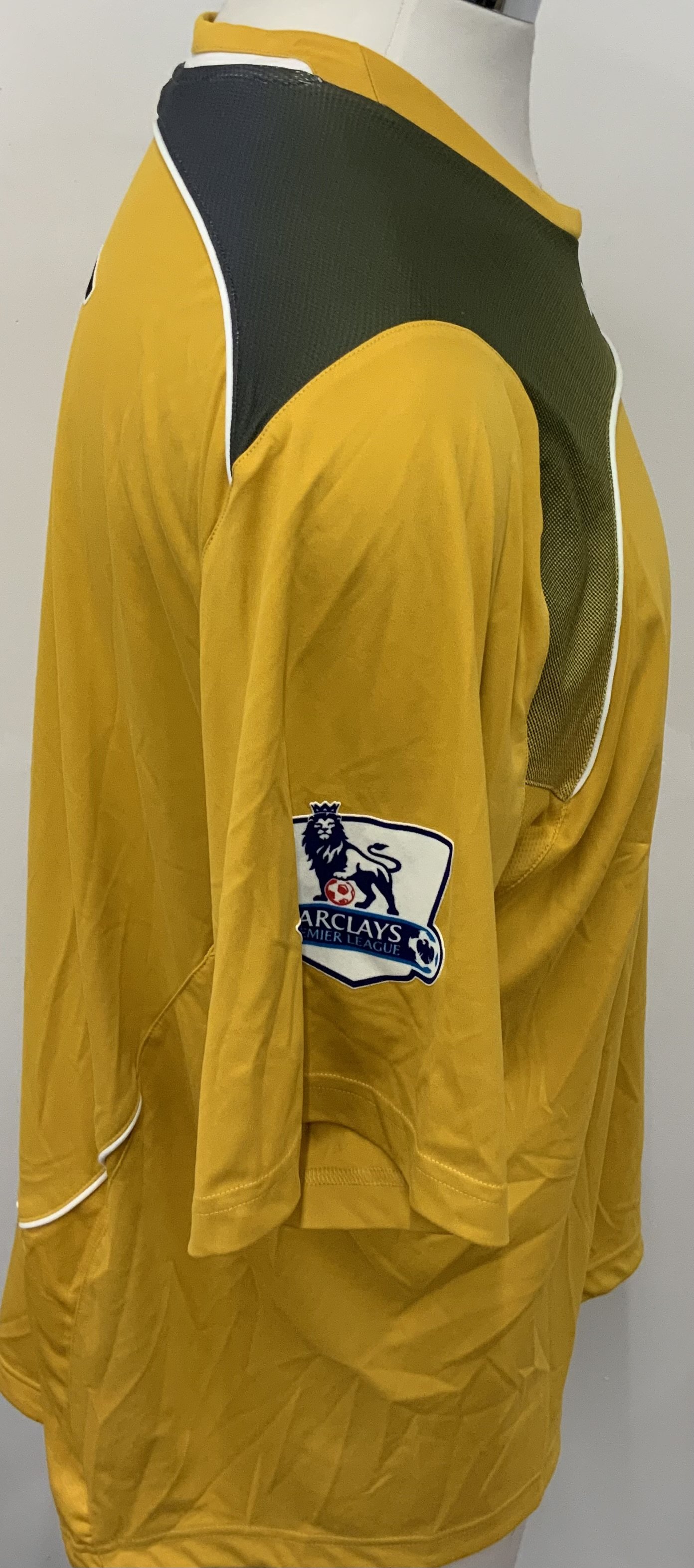 Bolton Wanderers 2008 - 2009 Match Worn Football Shirt: Mustard short sleeve shirt. Number 2 Hunt. Premier League badging.