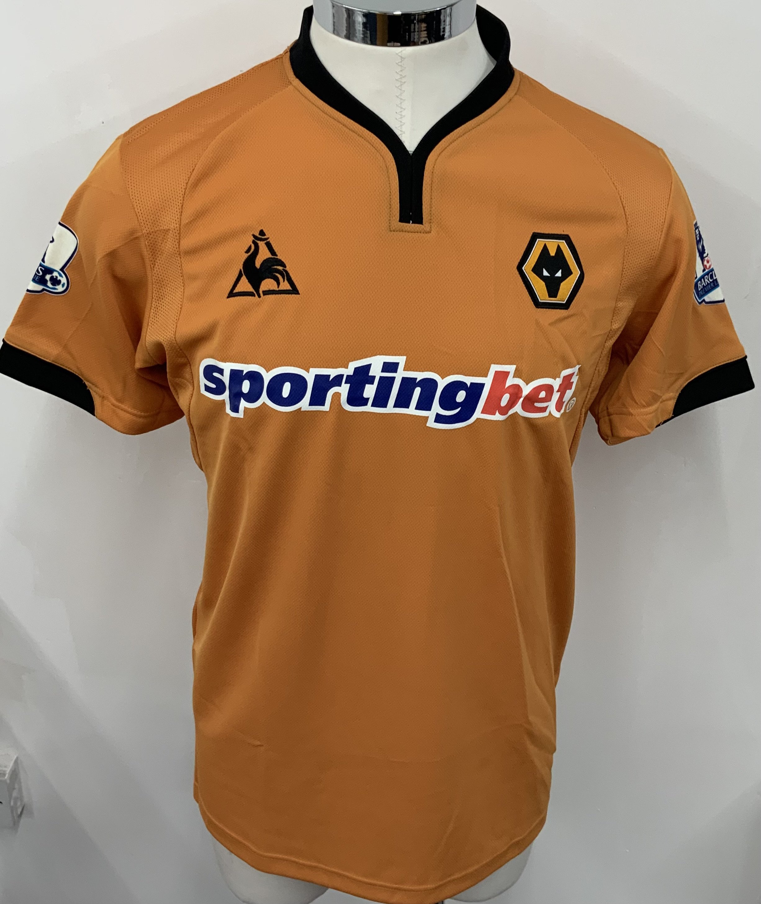 Wolves 2009 - 2010 Match Worn Football Shirt: Gold short sleeve shirt. Number 21 Jones to rear. Premier League badging.