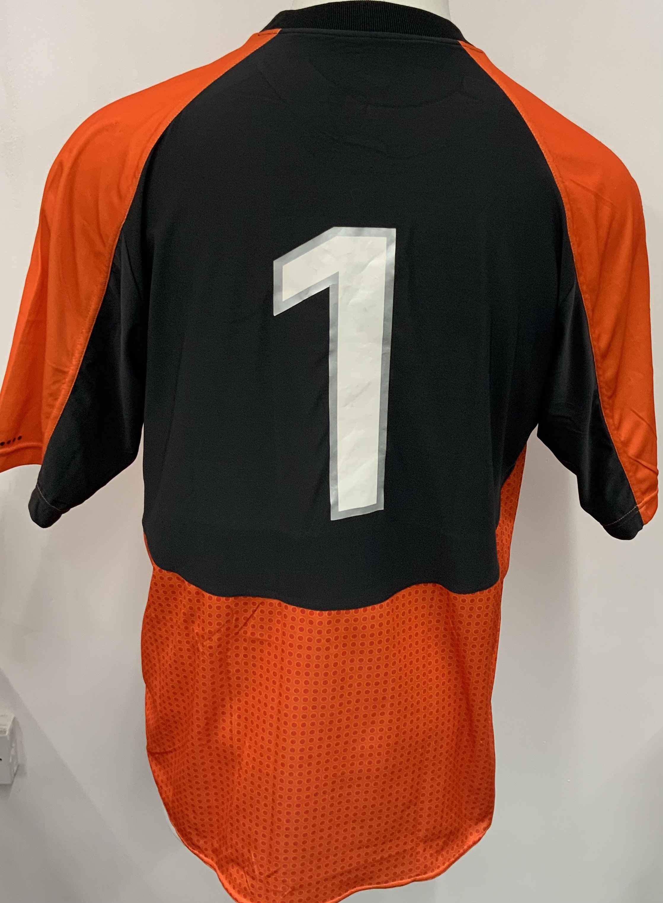 Nigeria 2006 Match Worn Football Shirt: Orange short sleeve goalkeepers shirt. Number 1. Signed by the goalkeeper Bankole.