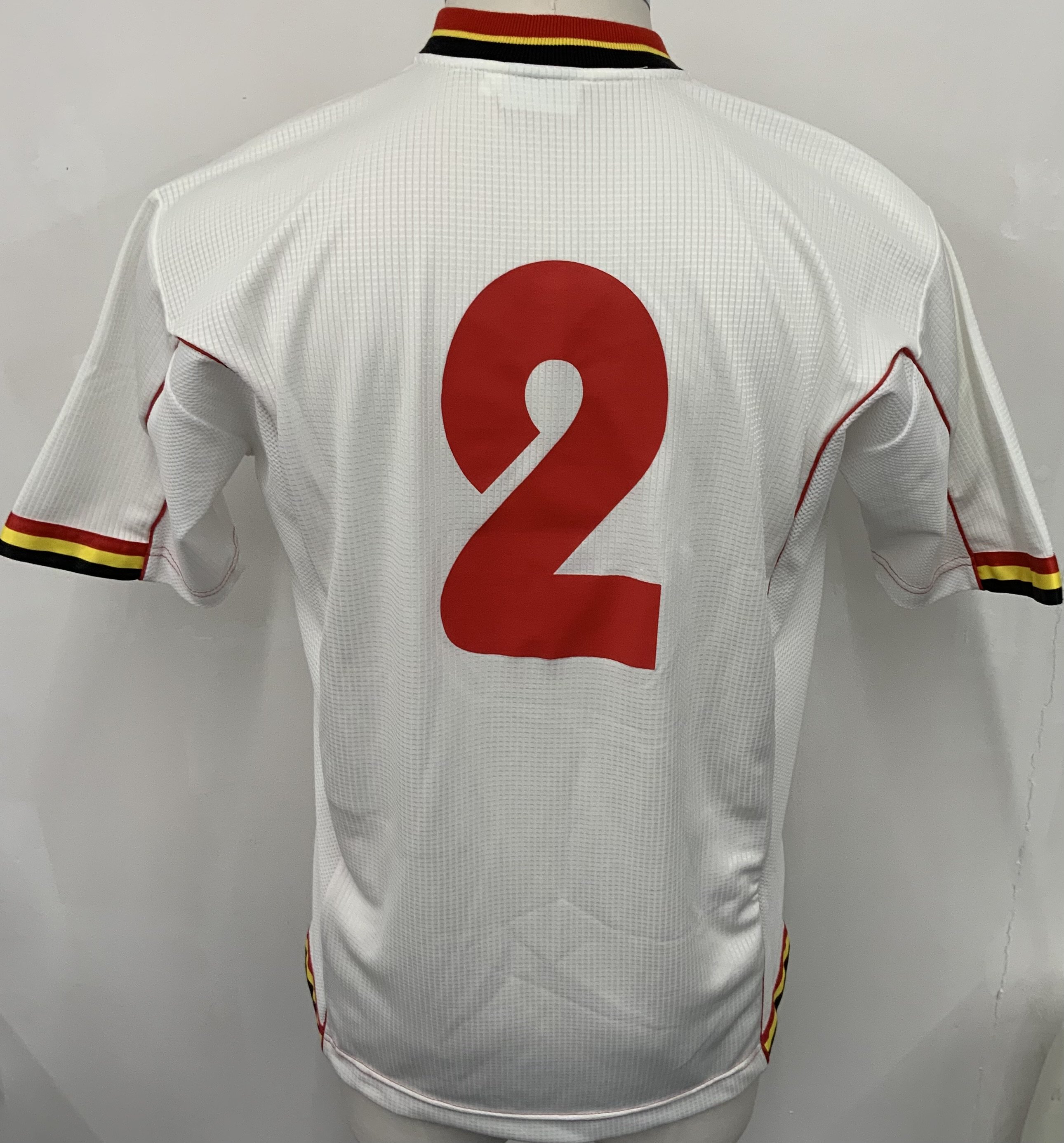 Belgium 2000 Match Worn Football Shirt: White short sleeve shirt. Number 2. Worn during World Cup Qualifiers.